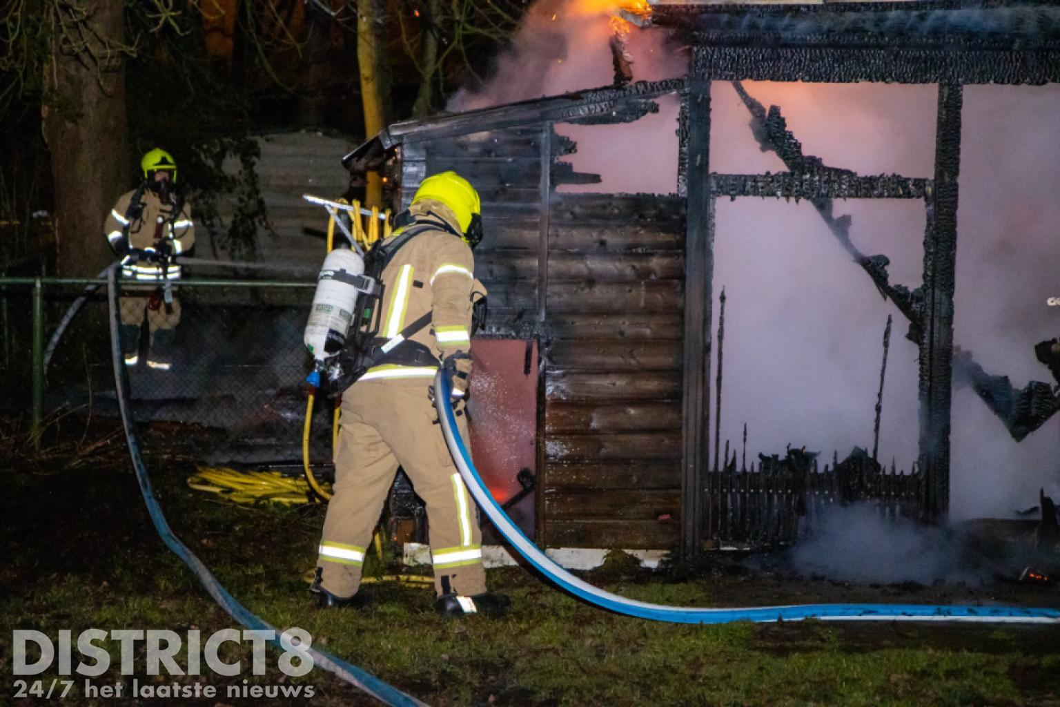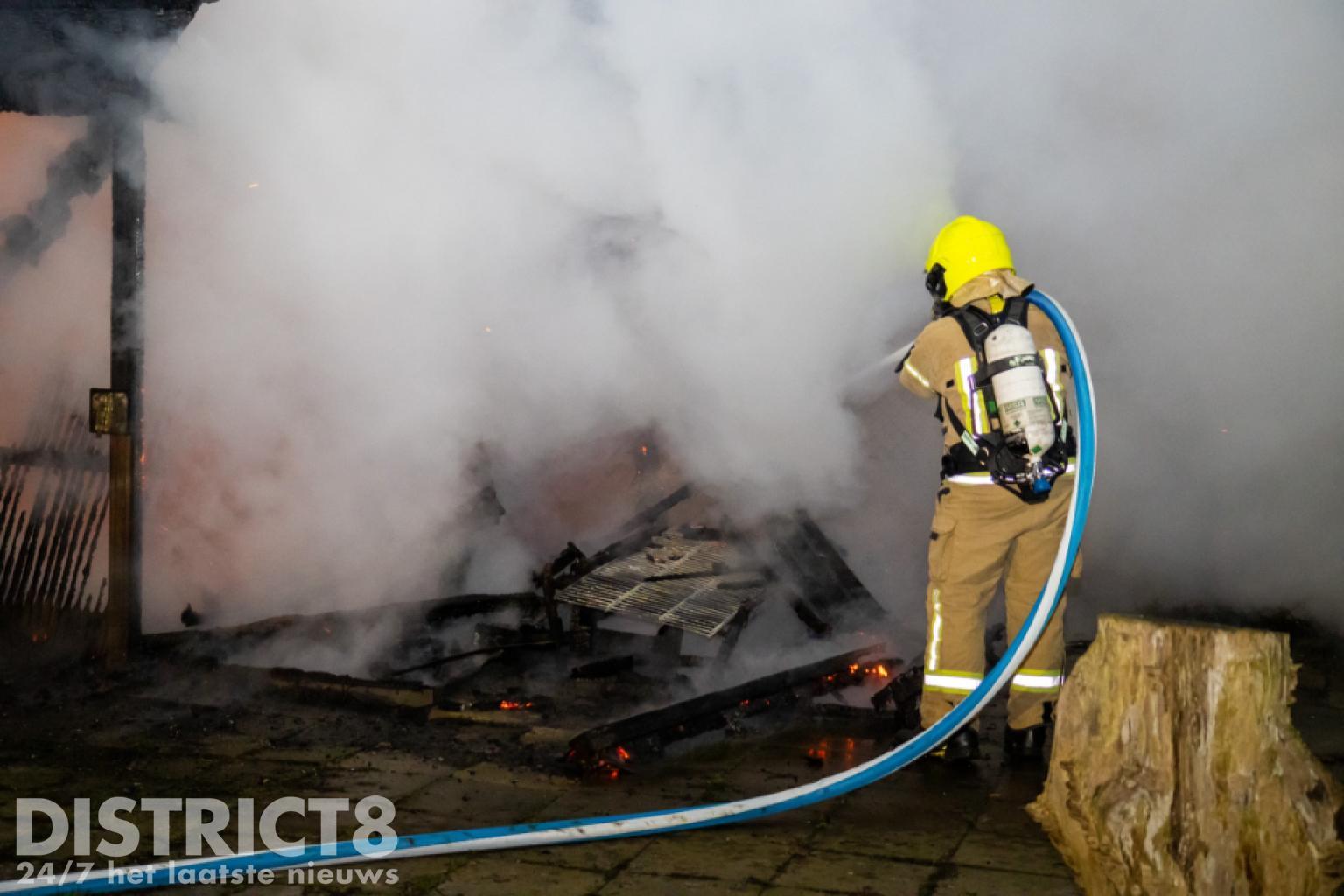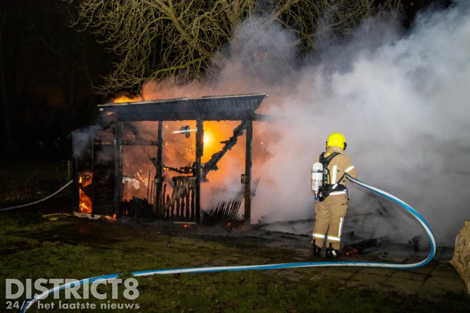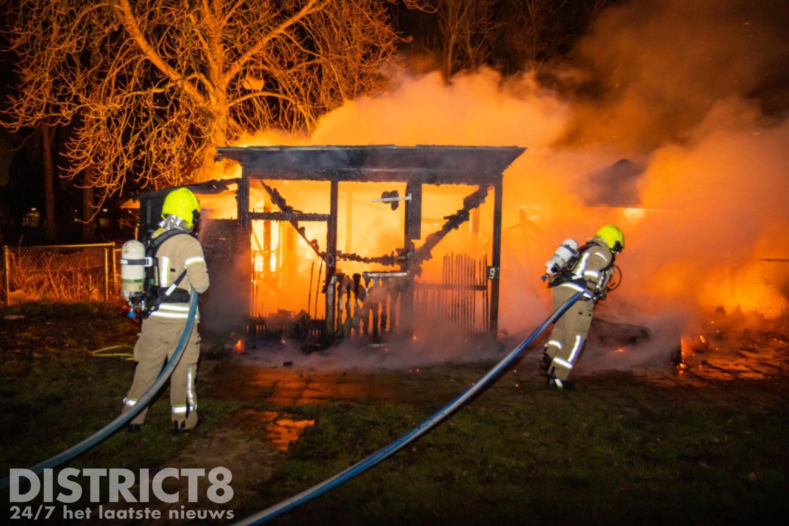 Bij aankomst stond het tuinhuisje al volledig in brand. Ondanks de inzet van de brandweer brandde het tuinhuisje volledig af.