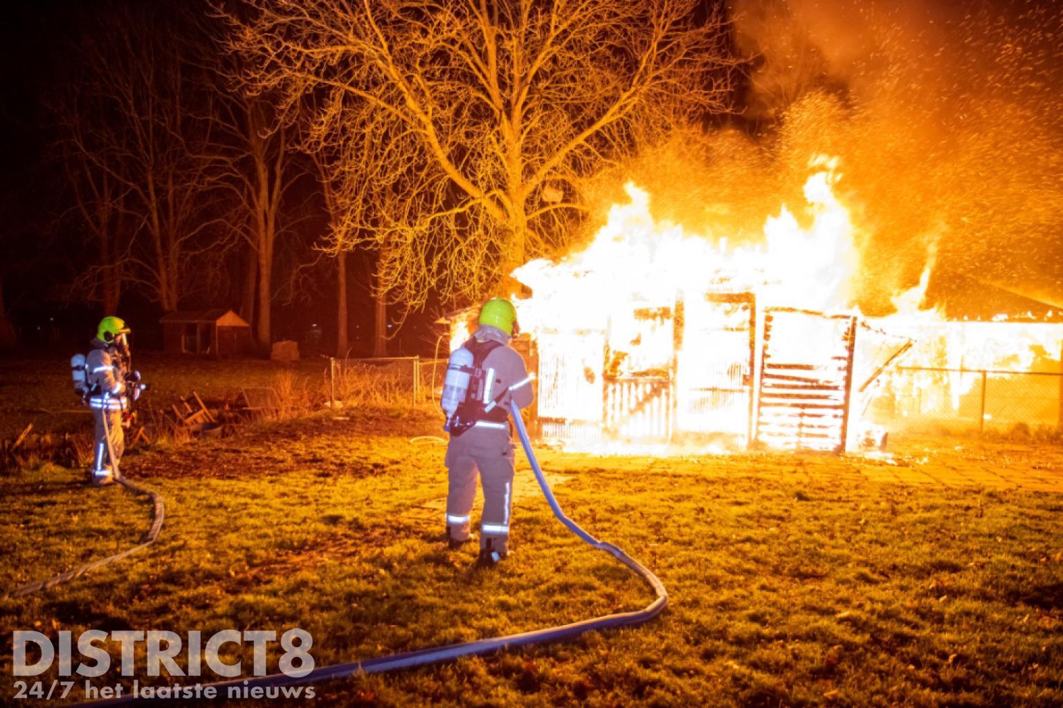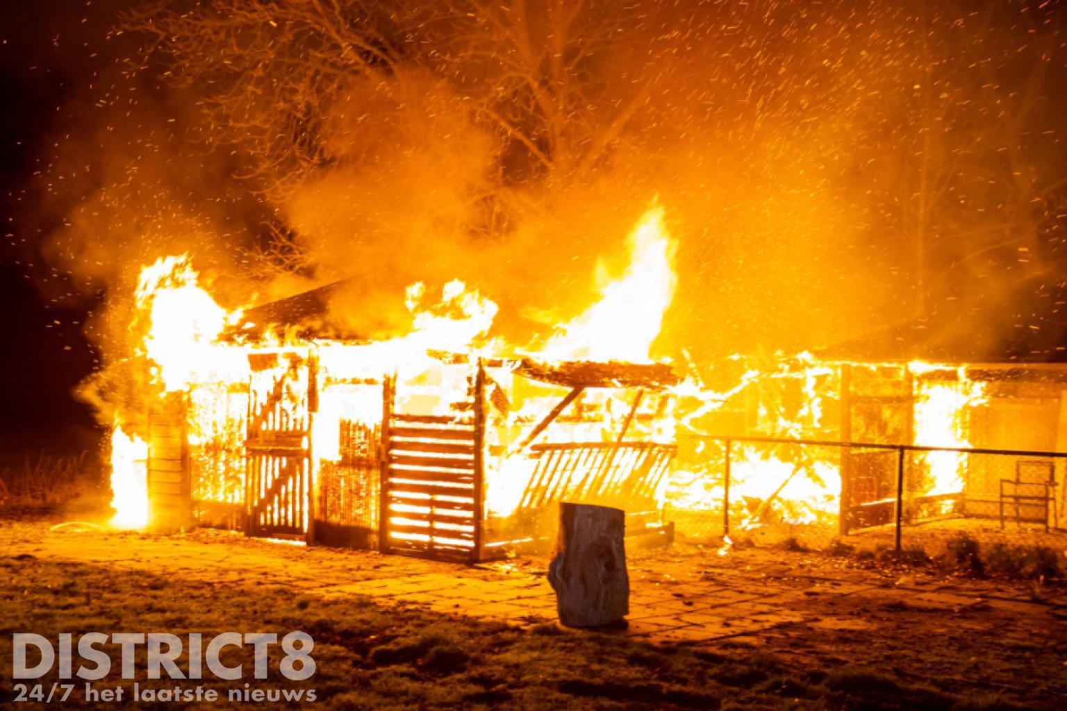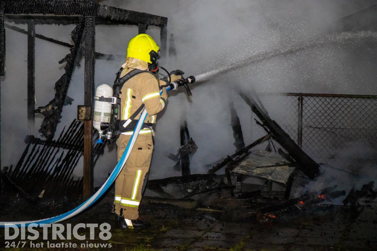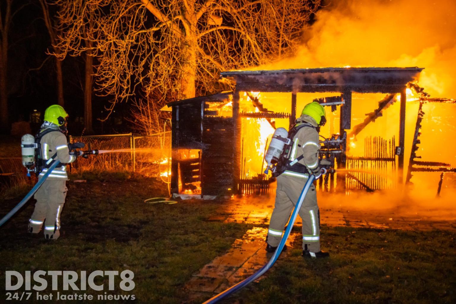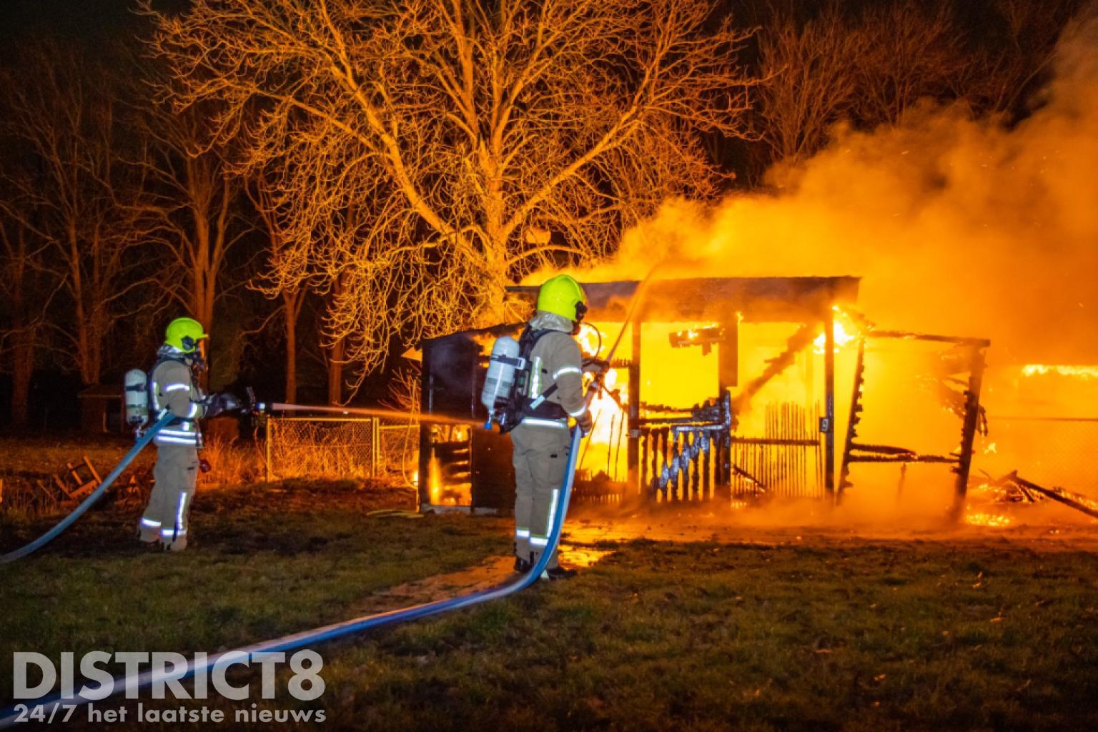 Bij aankomst stond het tuinhuisje al volledig in brand. Ondanks de inzet van de brandweer brandde het tuinhuisje volledig af.