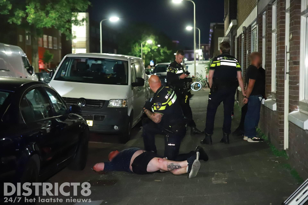 Op straat lag een gewonde man. Naast een ambulance werd ook het Mobiel Medisch Team gealarmeerd. Toen de politie arriveerde konden zij al snel twee mannen aanhouden. Hierbij heeft de politie op één verdachte een taser gericht.