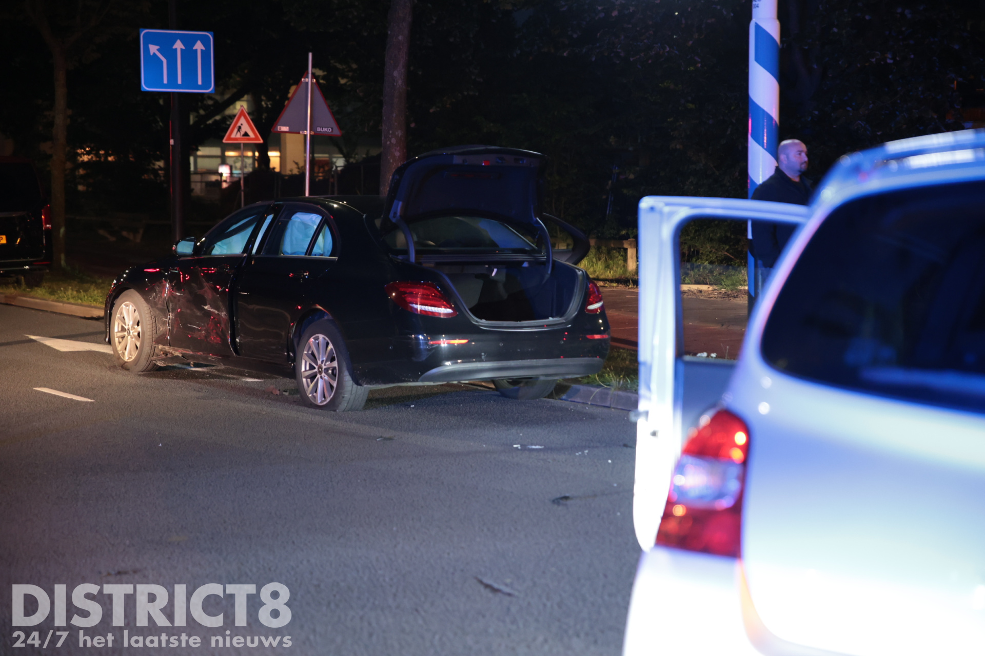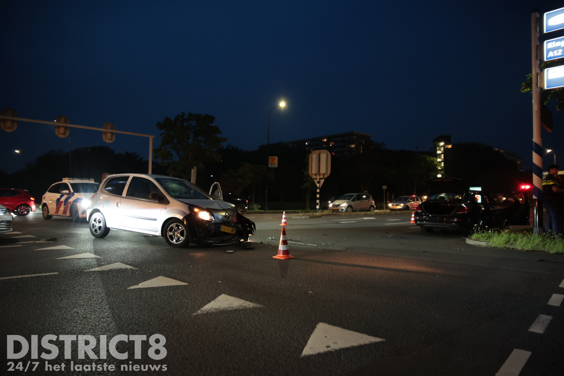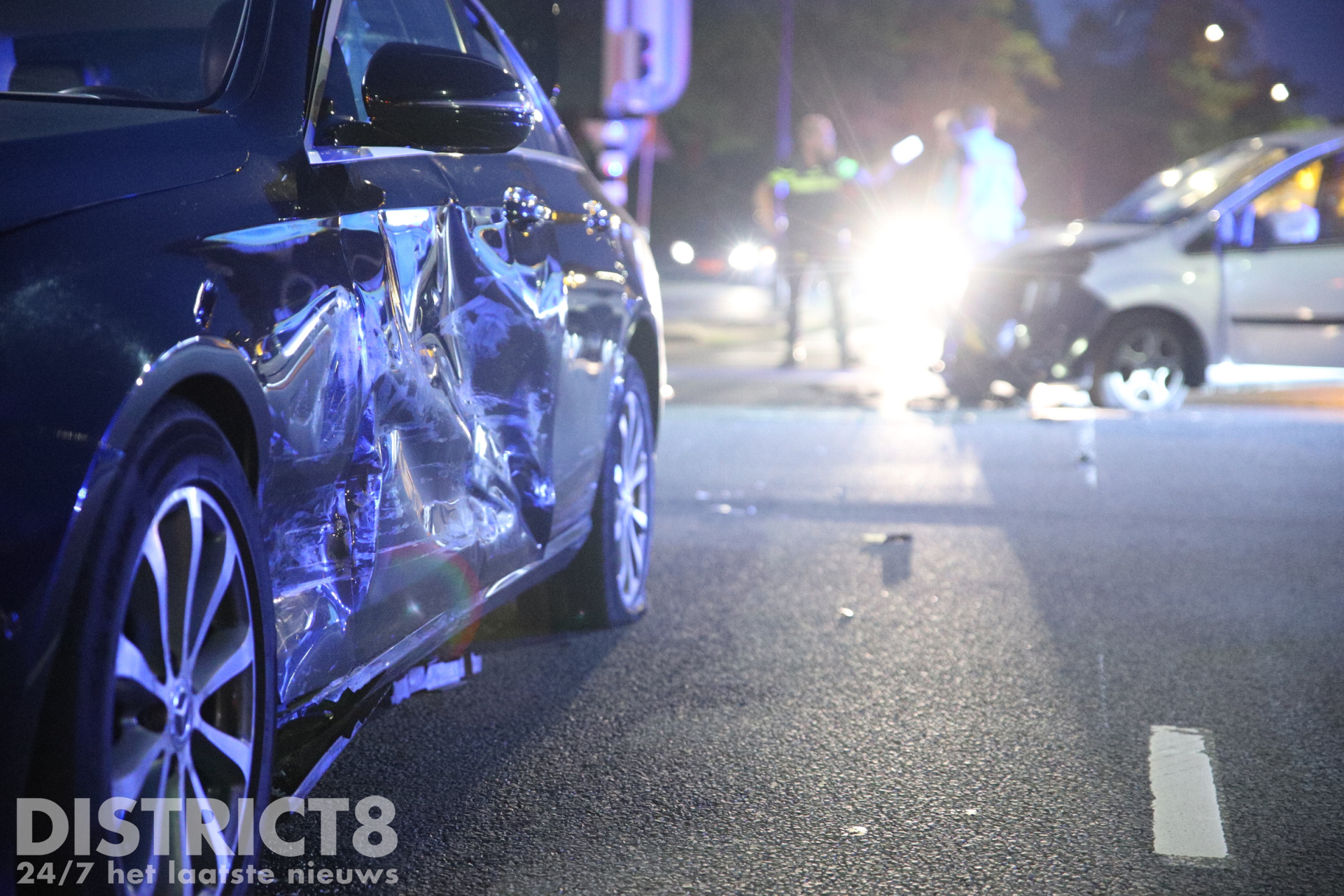Twee autos kwamen door nog onbekende oorzaak met elkaar in botsing. Het lijkt erop dat een bestuurder door rood is gereden.