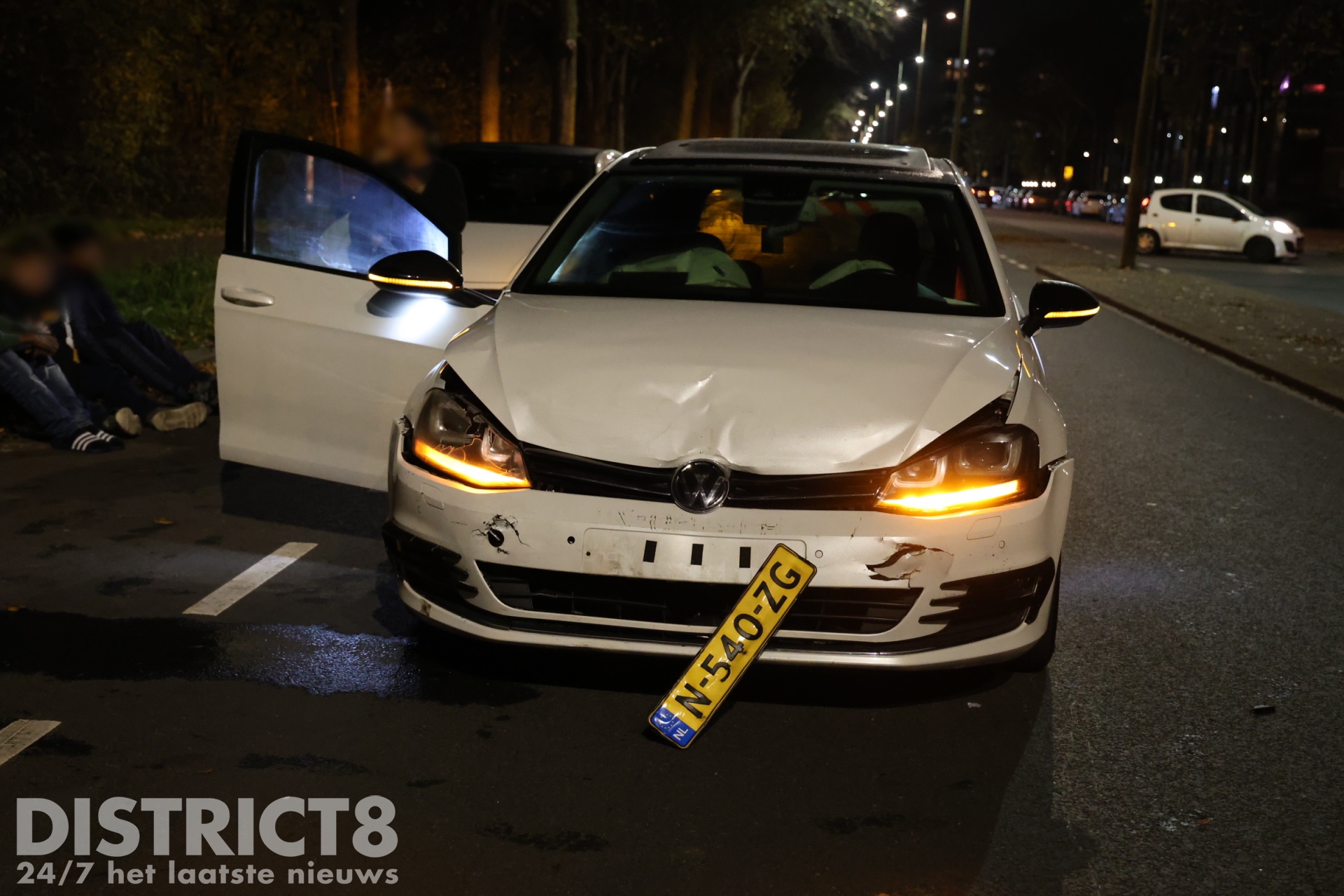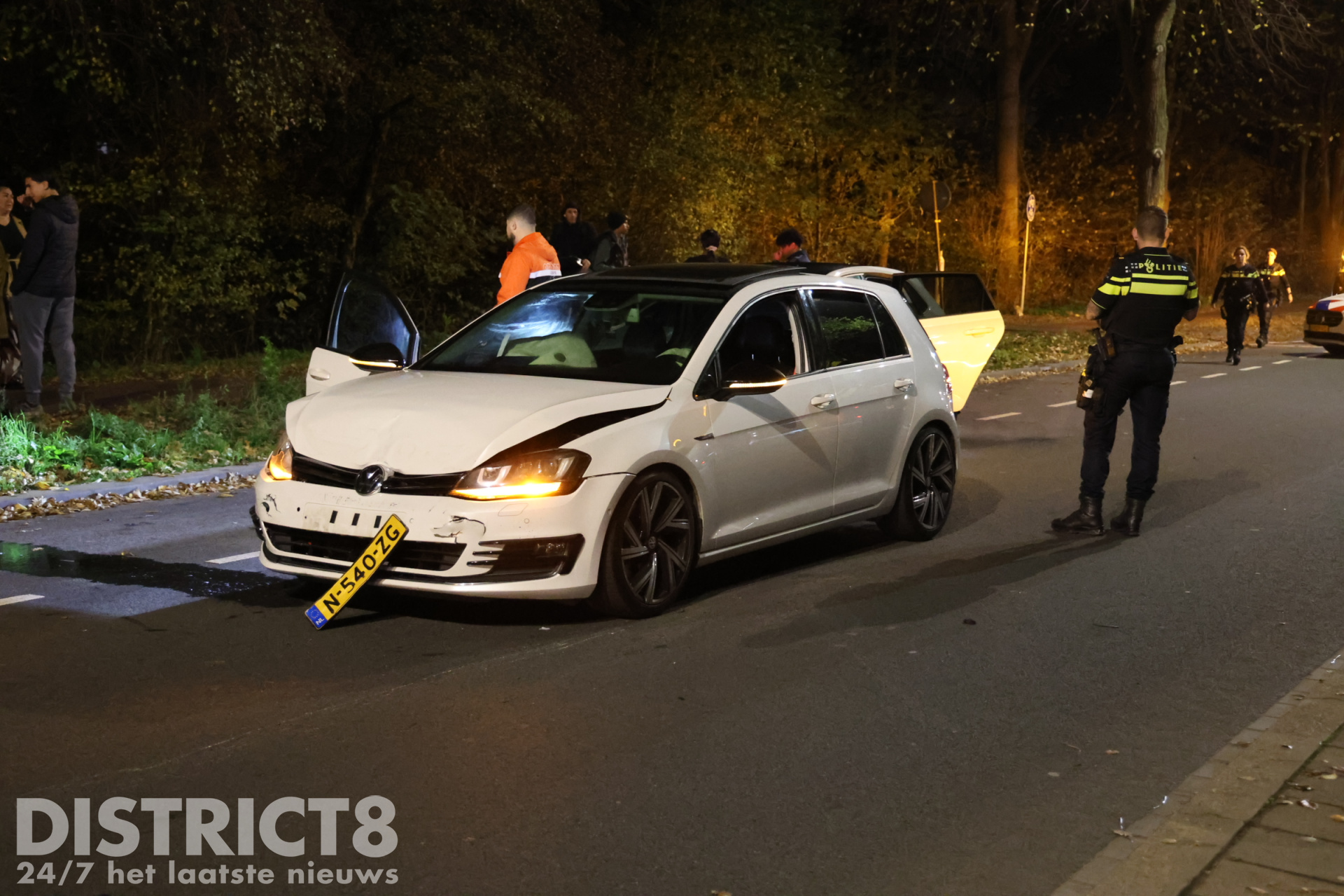 Volgens omstanders reed de witte Volkswagen te hard over de Erasmusweg en zou de bestuurder tegelijkertijd aan het racen zijn met een andere automobilist.