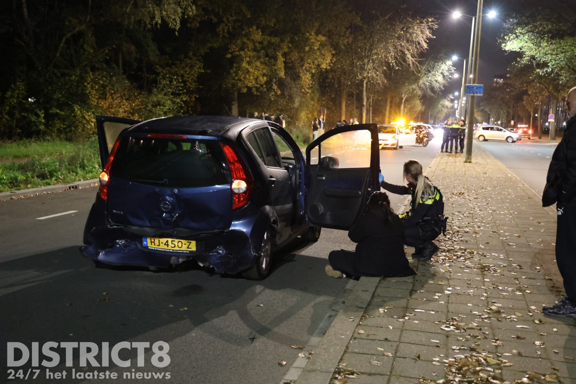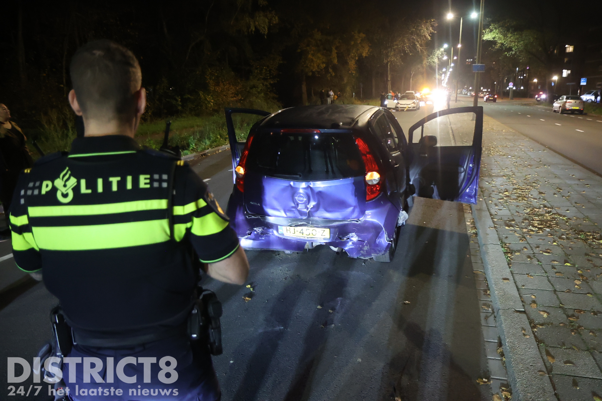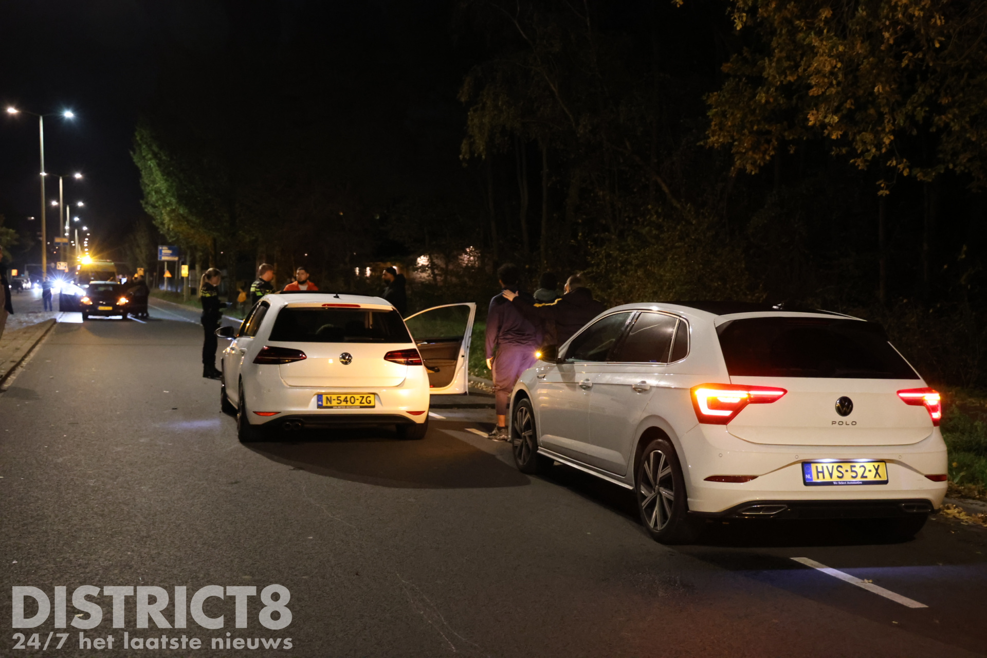 Rond 19.15 uur sloeg een automobilist vanaf de Steenhouwersgaarde af naar de Erasmusweg, waarbij een witte Volkswagen hard achterop het andere voertuig botste.