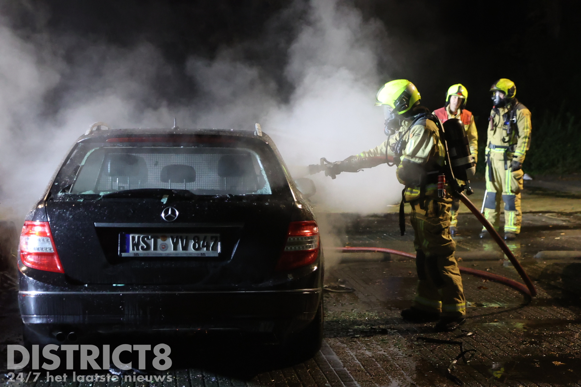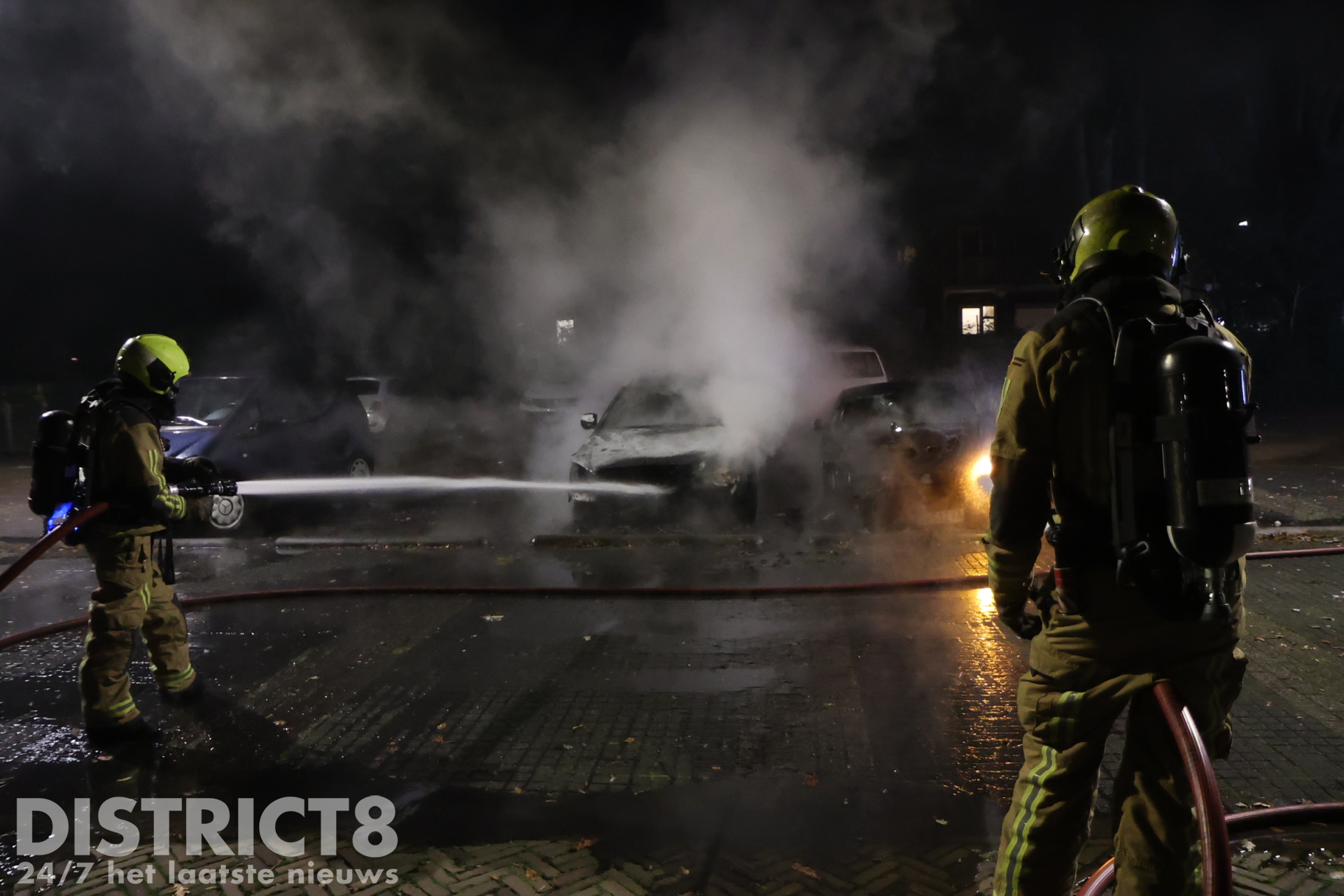 De brand begon in een van de geparkeerde auto’s en is vermoedelijk aangestoken. De brand sloeg vervolgens over naar een andere geparkeerde auto. Beide auto’s raakte door de brand total loss.