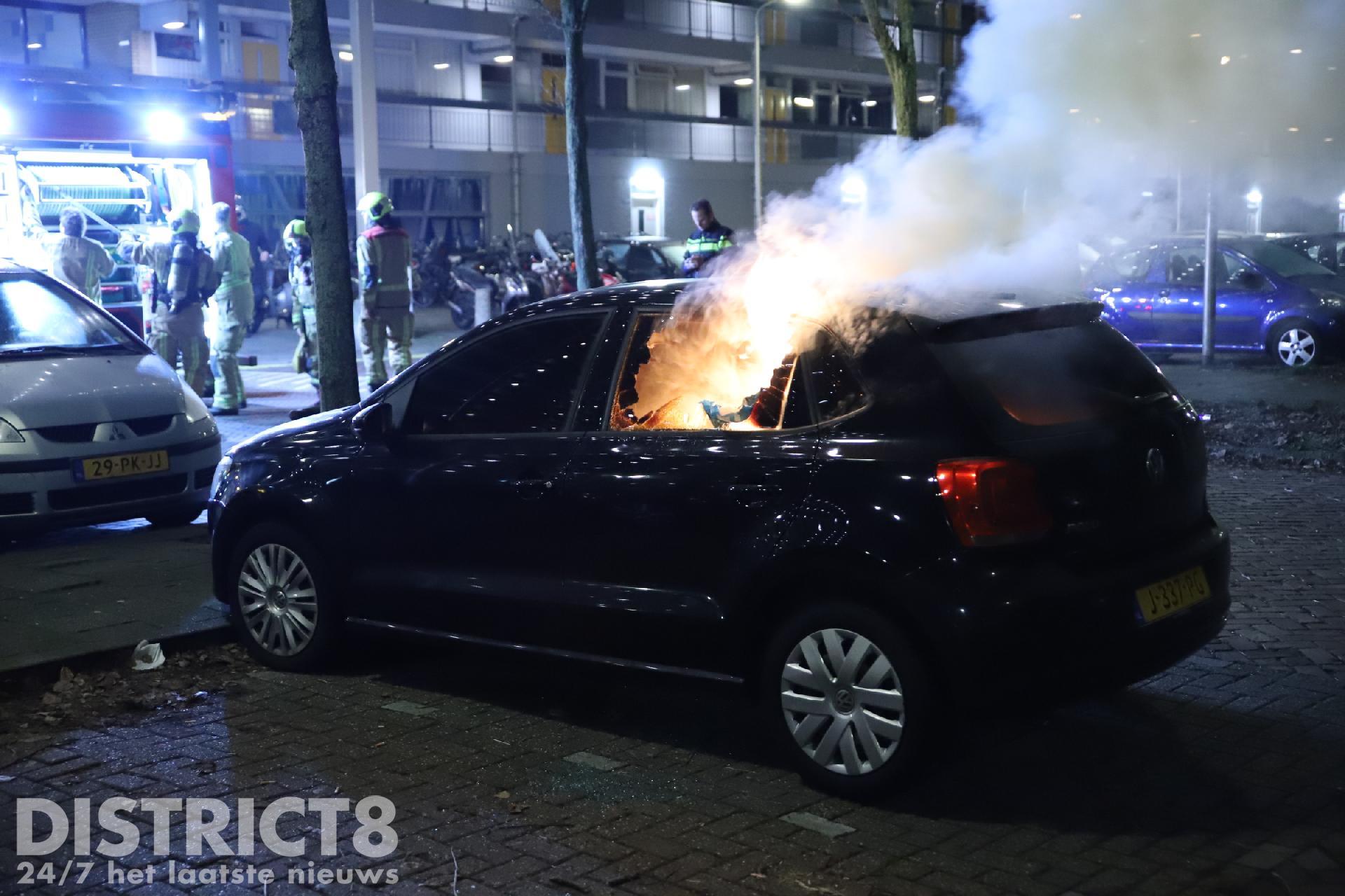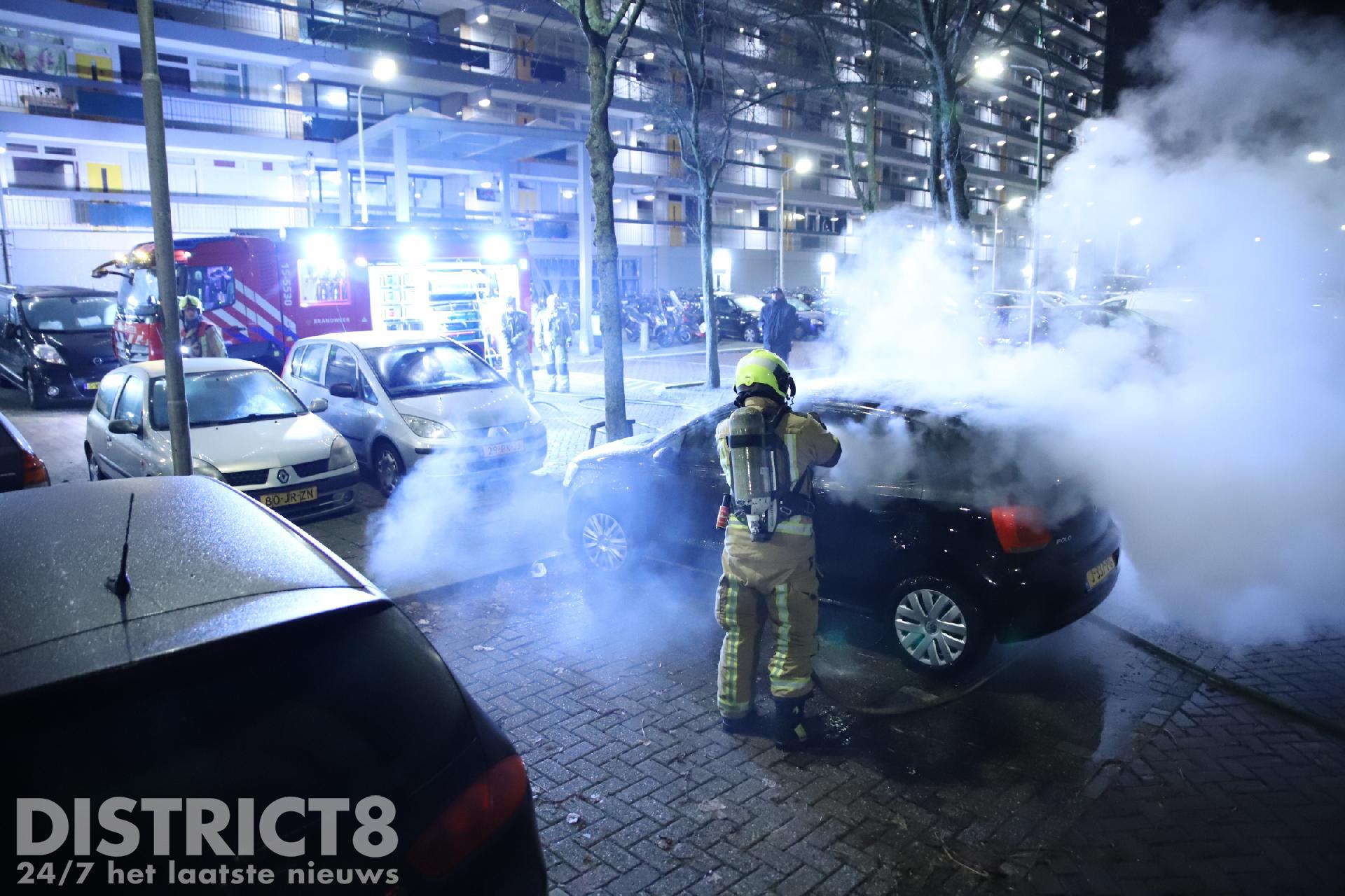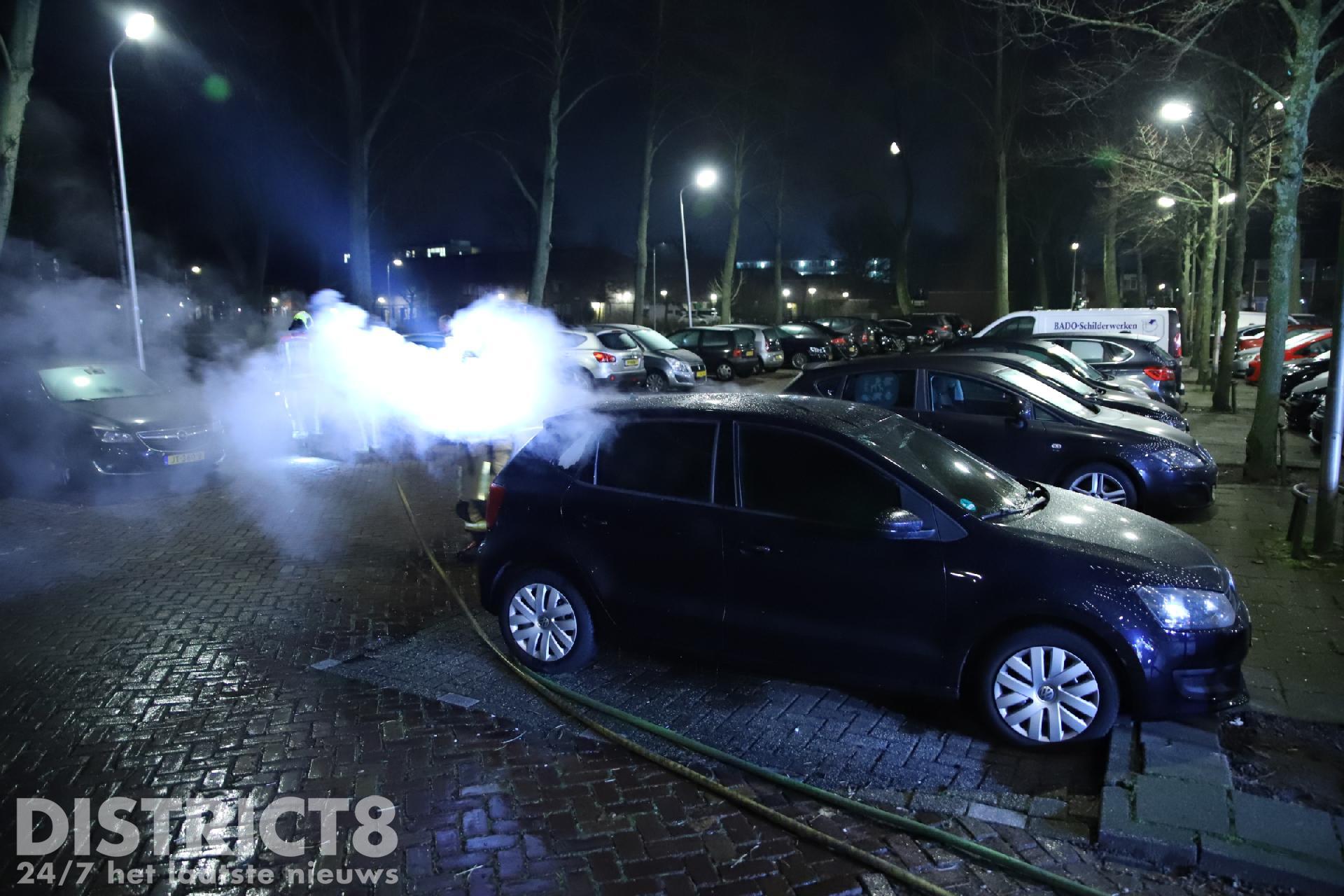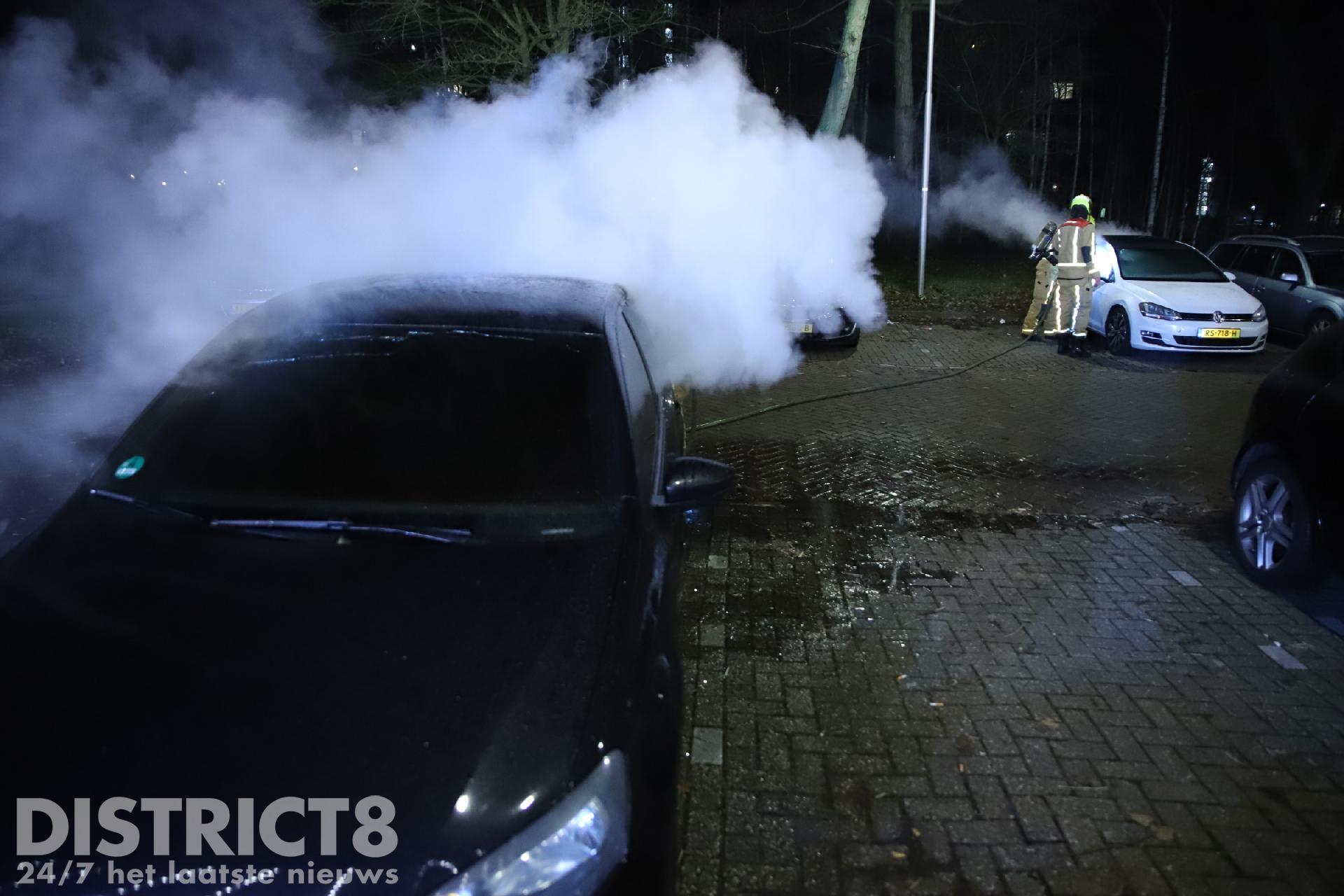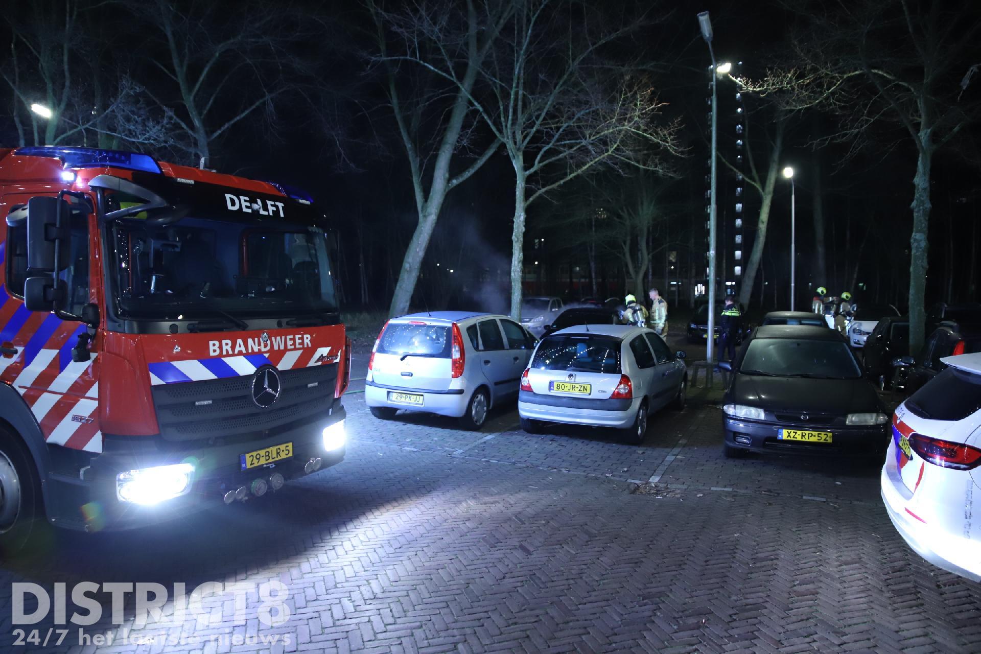 Delft – Bewoners van de Cesar Franckstraat in Delft keken dinsdagochtend raar op toen zei omstreeks 04:40 naar buiten keken. Op de parkeerplaats voor de flat kwam uit twee autos rook en vlammen. Direct belde de getuige 112, hierop werd de brandweer van Delft met spoed ter plaatse gestuurd.