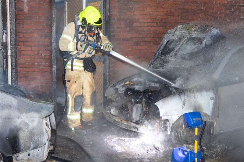 De brand sloeg over naar een 2e auto en de naastgelegen woningen. De brandweer schaalde al snel op naar Middelbrand en zette twee tankautospuiten in. Zij wisten te voorkomen dat de brand verder verspreidde in de woningen. Alleen de achteringangen zijn beschadigd.