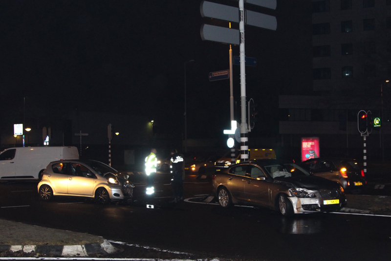 Schiedam – Op de oprit naar de A20 richting Vlaardingen kwamen donderdagavond op de ‘s-Gravelandseweg twee auto’s met elkaar in botsing.