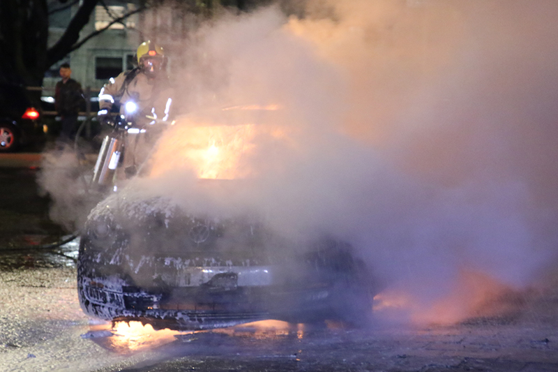 De brandweer kwam met spoed ter plaatse, maar bij aankomst stond het voertuig al volledig in brand. Aangezien de benzinetank van het voertuig blijft lekken blijft het voertuig ontbranden, hierdoor krijgt de brandweer de brand moeilijk onder controle. Uiteindelijk heeft de brandweer met een grote hoeveelheid schuim de brand onder controle kunnen krijgen.