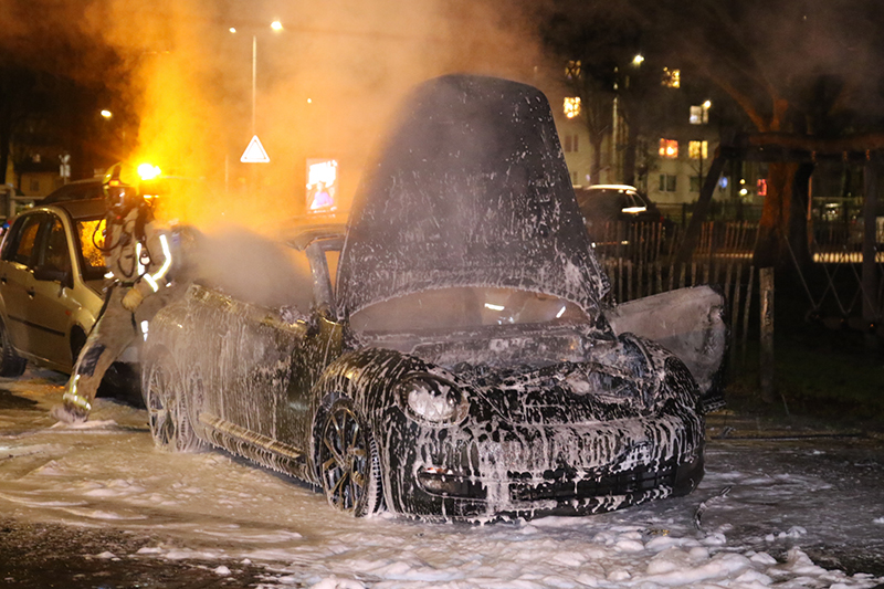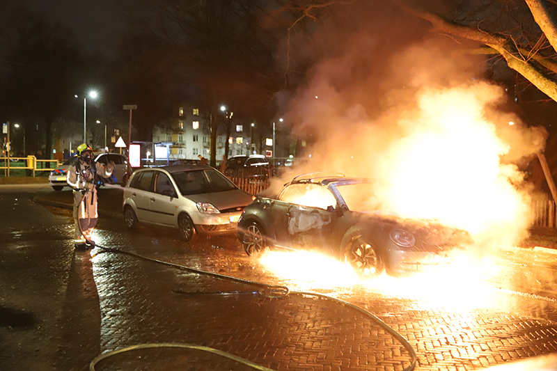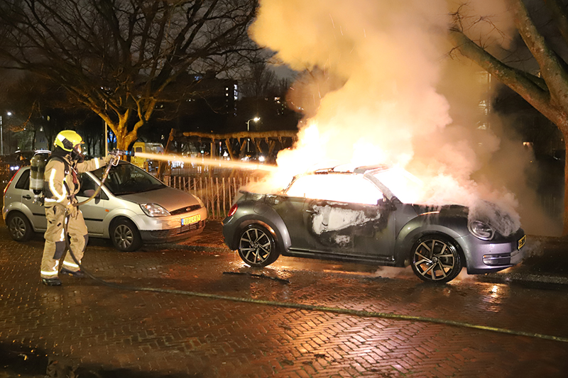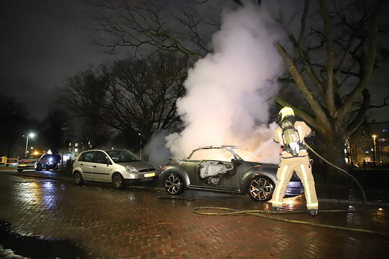 In dezelfde straat is een aantal minuten later nog een geparkeerde auto in vlammen op gegaan.