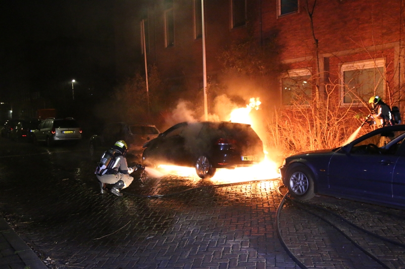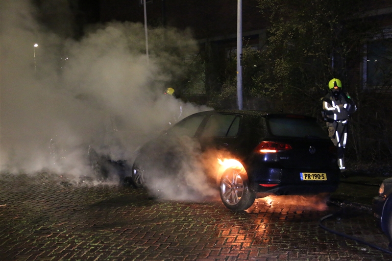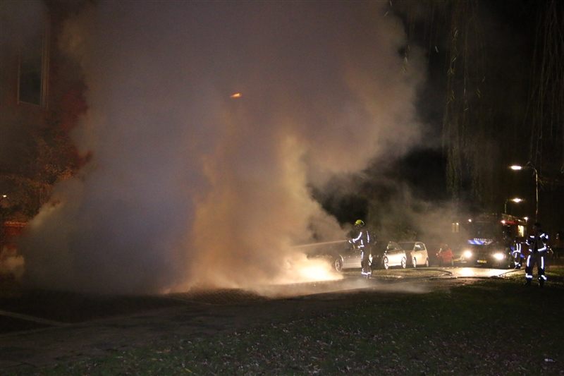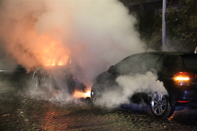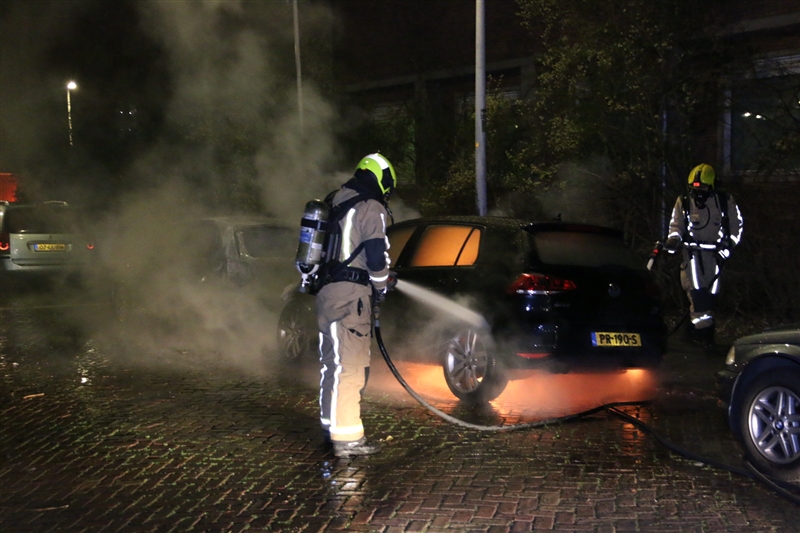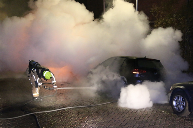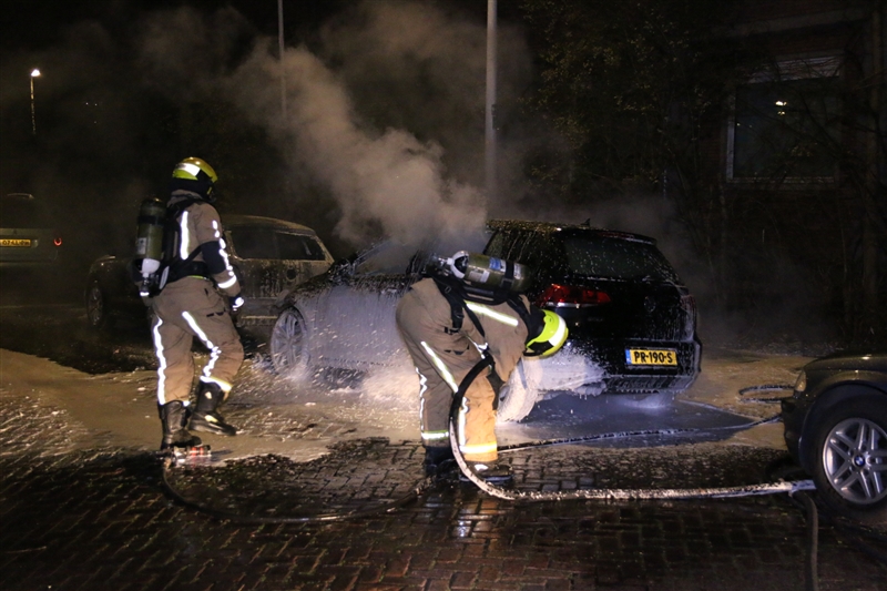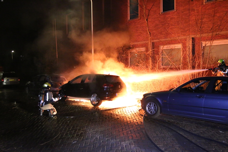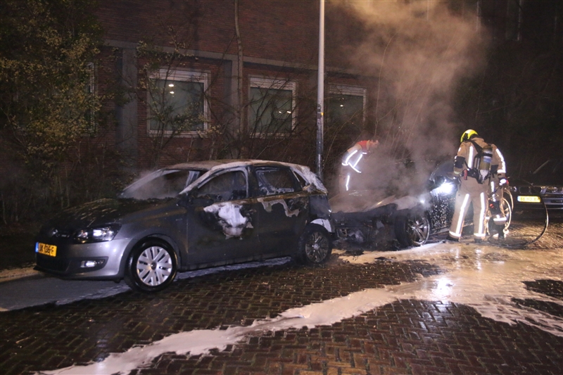 Ter plaatse bleken twee geparkeerde Volkswagens al volledig in brand te staan. De brandweer begon direct met blussen en kon al vrij snel bij één van de twee auto’s de vlammen doven. De tweede auto werd echter bemoeilijkt doordat de brandstoftank in de auto was gaan lekken. Door de brandstof wakkerde het vuur telkens aan met flinke vlammen die uit het voertuig sloegen. De brandweer zette haar zogeheten One-Seven blusschuim in. Uiteindelijk kon ook het tweede voertuig worden geblust.