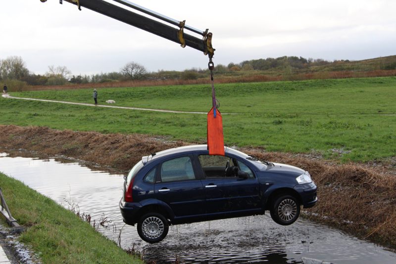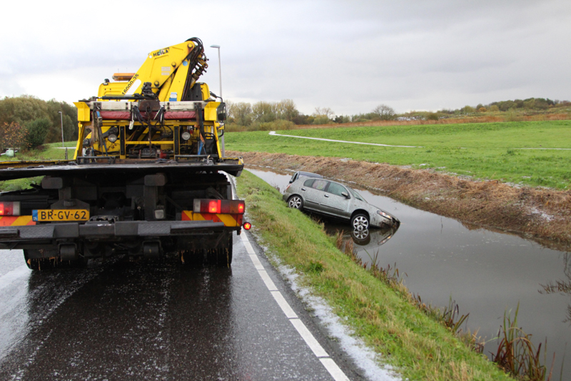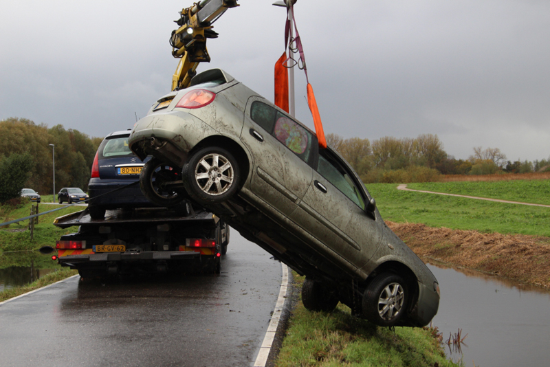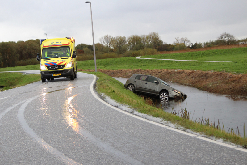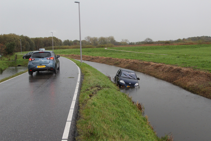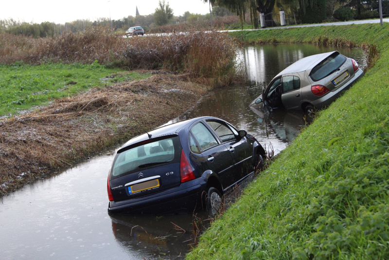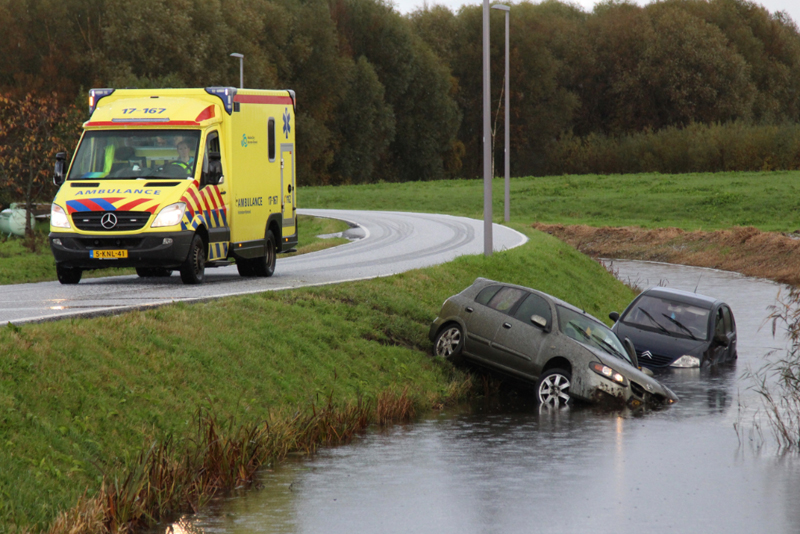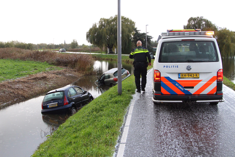 Schiedam – Op de Kandelaarweg zijn woensdagmorgen twee auto’s te water geraakt door vermoedelijk gladheid.