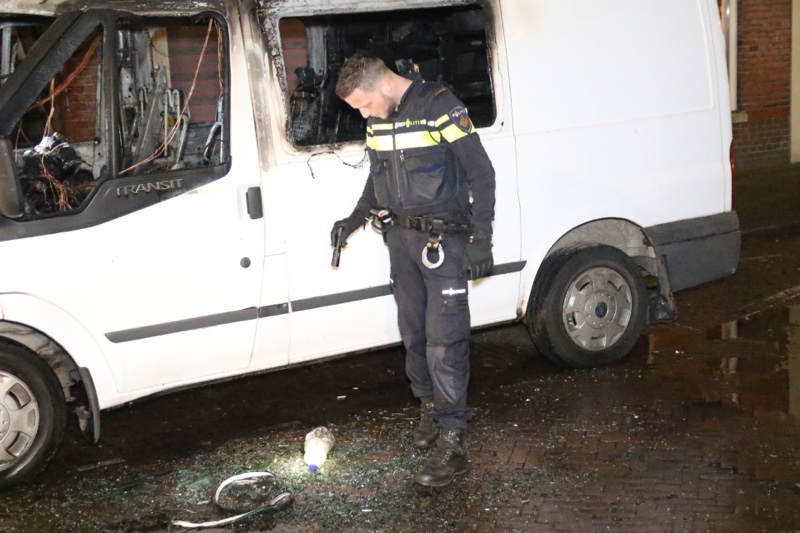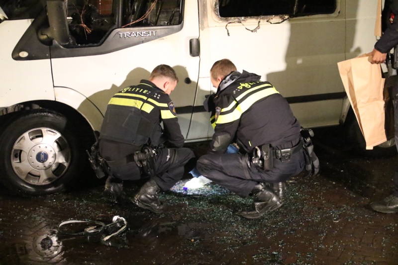 Bij de auto’s is een plastic fles aangetroffen. De politie heeft deze in beslag genomen.