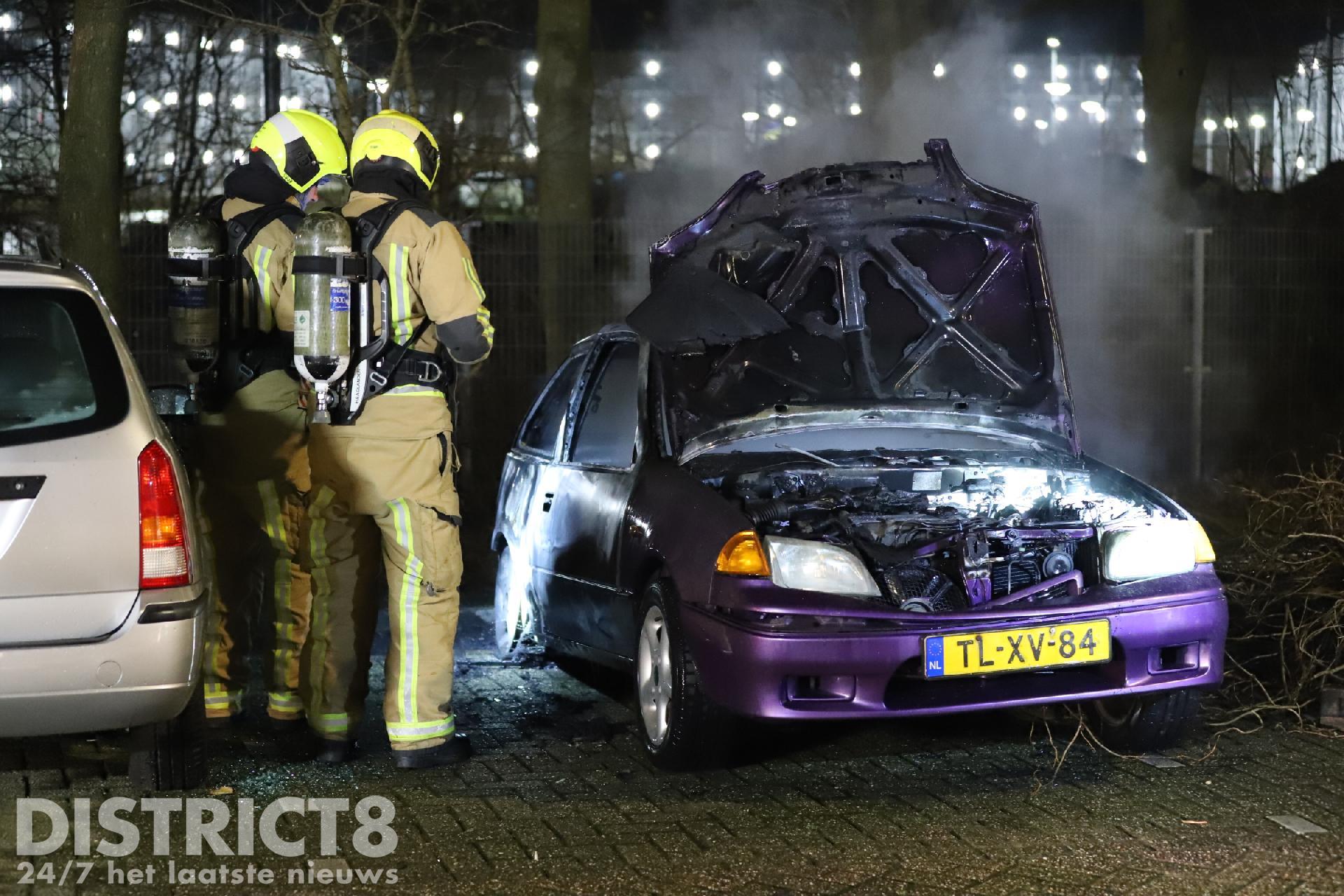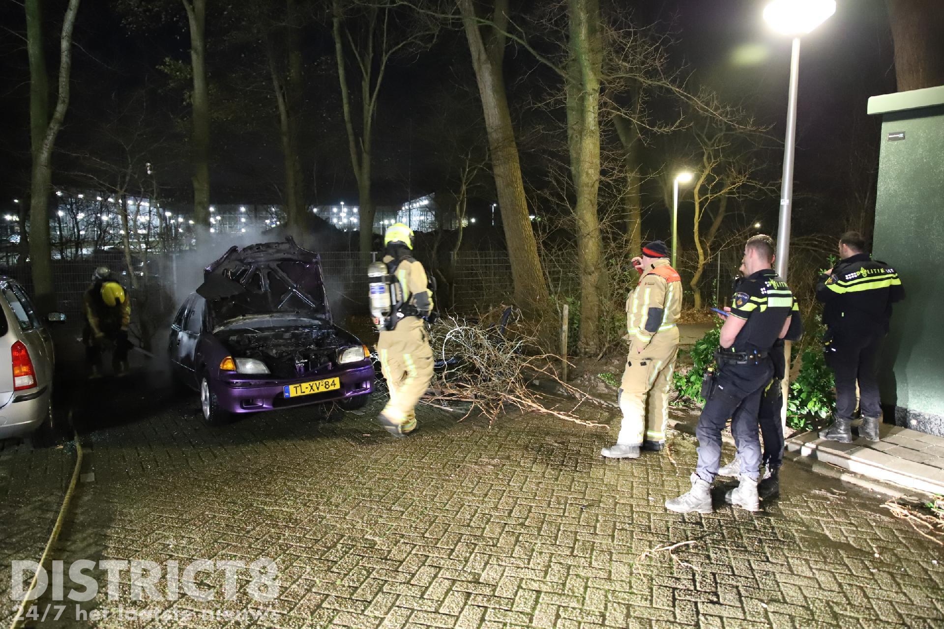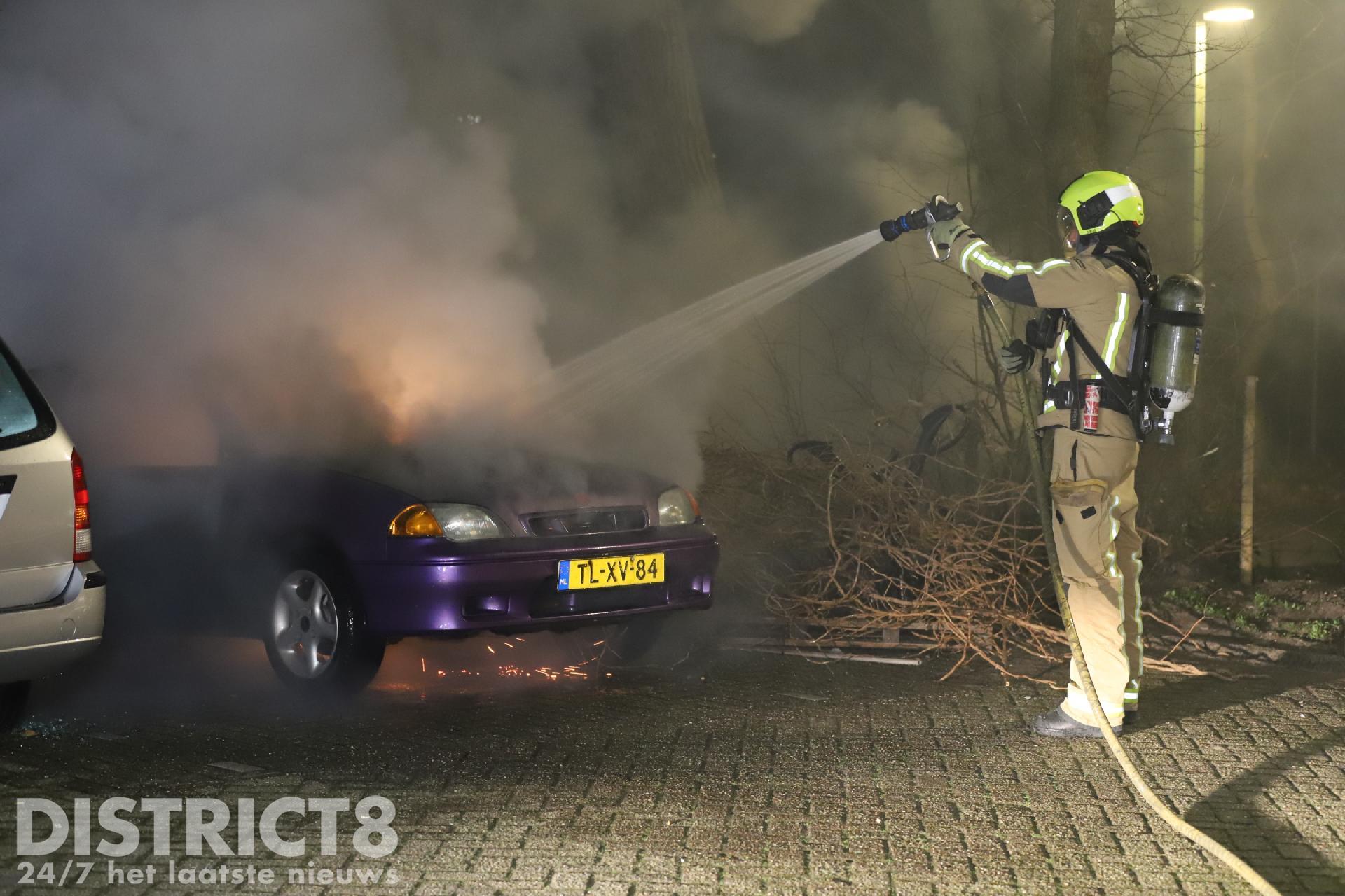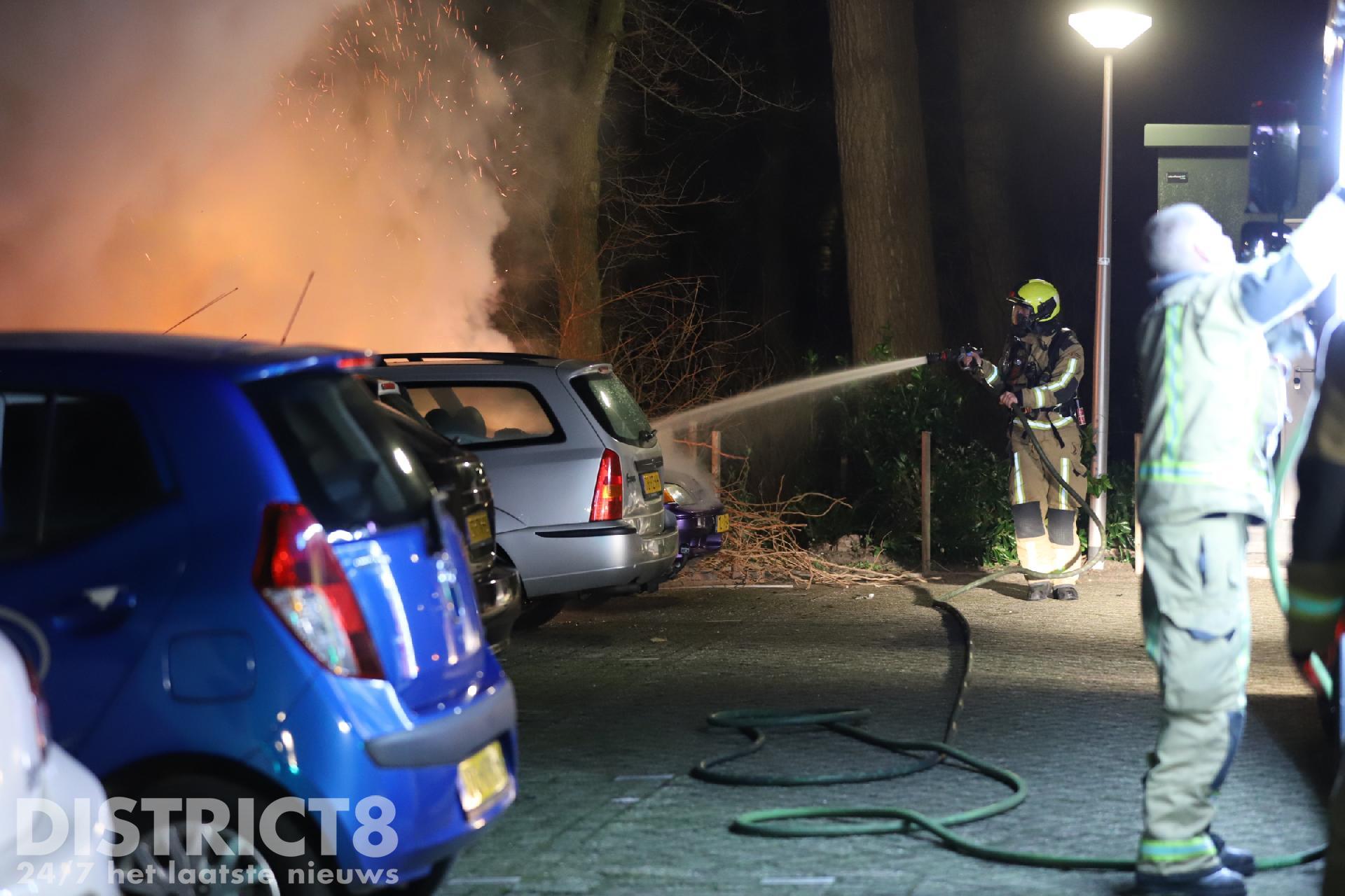 Toen de brandweer met spoed arriveerde stond de auto al volledig in brand. De auto ernaast werd ook flink aangestraald. De brandweer kon voorkomen dat deze tweede auto niet volledig in vlammen opging.