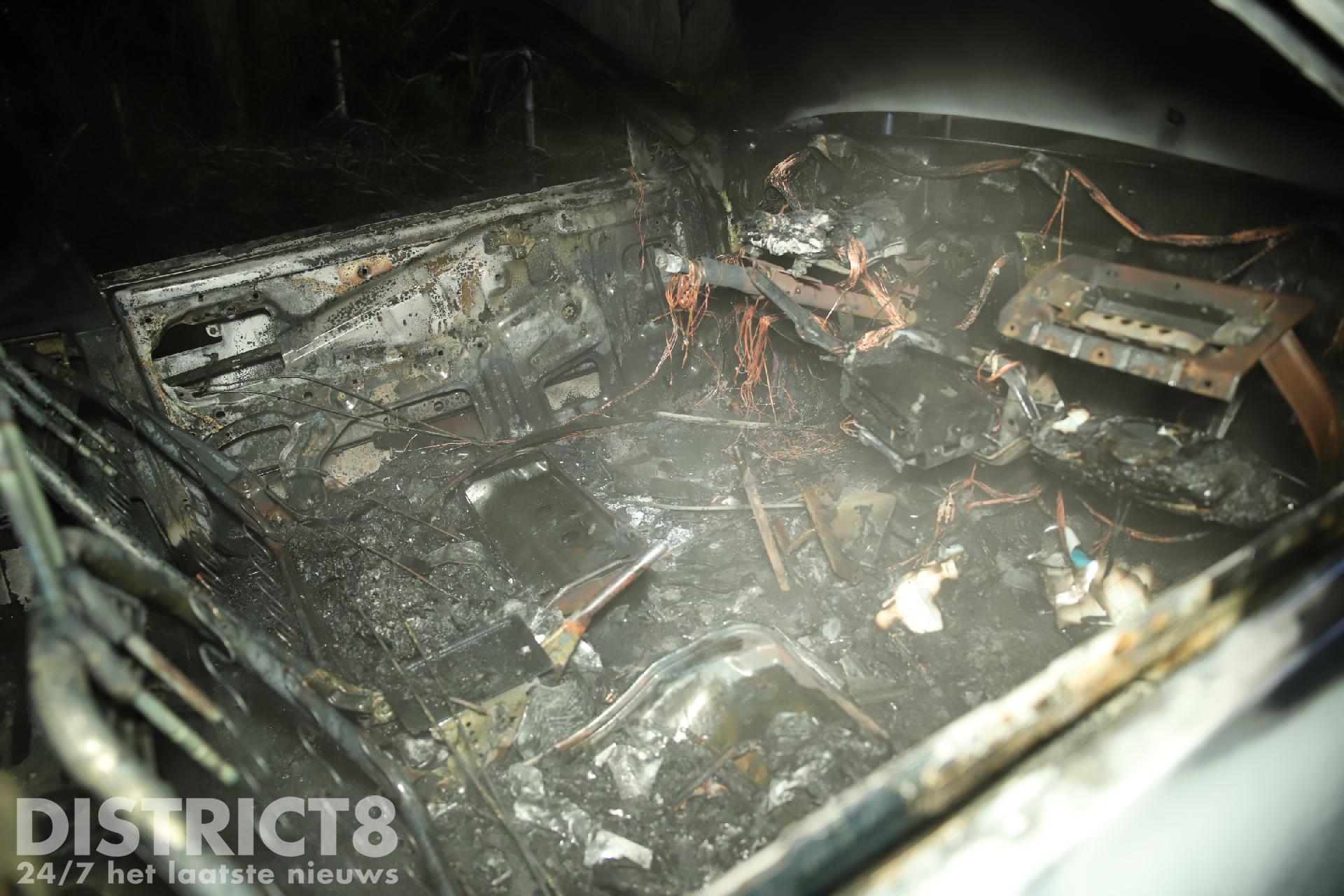 Het voertuig dat volledig uitbrandde is zeer waarschijnlijk in brand gestoken.