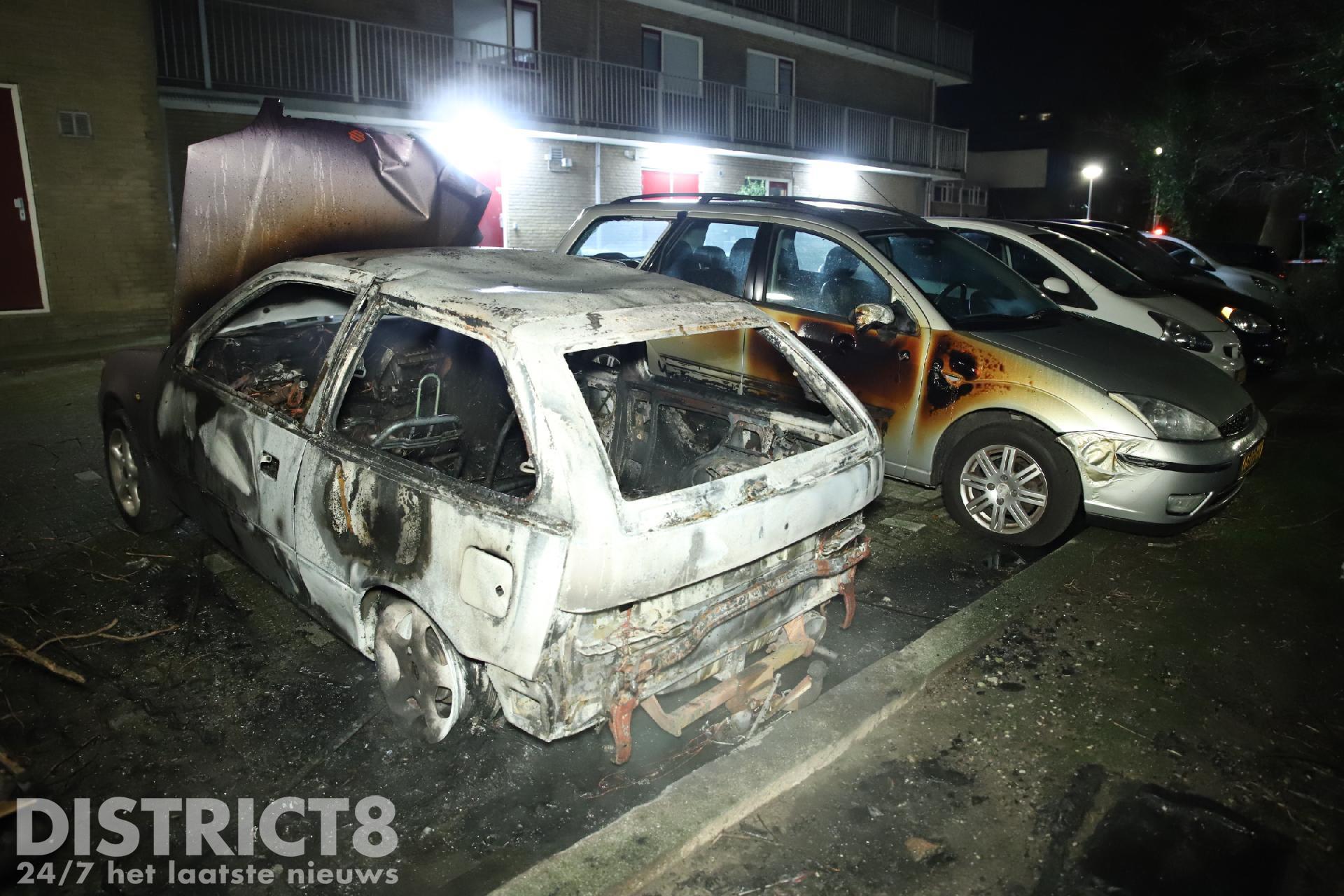 Delft – Op het parkeerterrein naast een flat aan de Mozartlaan in Delft, zijn in de nacht van maandag op dinsdag 12 december twee geparkeerde auto’s zwaar beschadigd geraakt door een brand. Het gaat hoogstwaarschijnlijk om brandstichting.