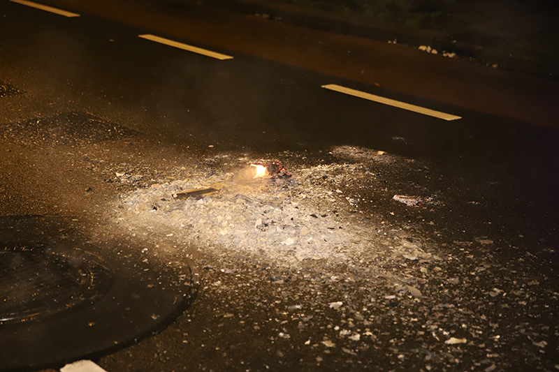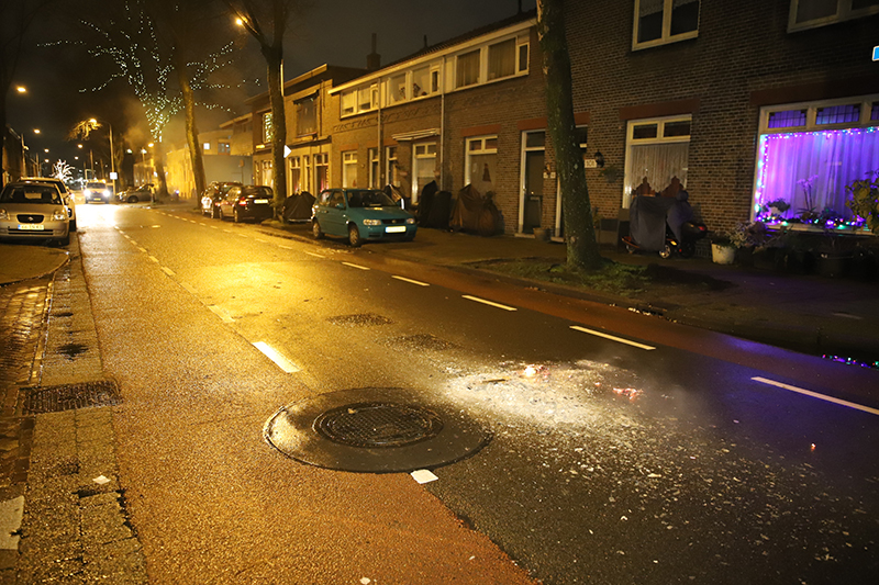 Het brandje midden op straat is uiteindelijk uitgebrand, de brandweer heeft dit nog kort gecontroleerd.