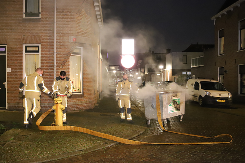 De brandweer is zonder spoed ter plaatse gekomen en heeft de rolcontainer naast een brandkraan gezet, deze is daarna open gezet om de container te vullen met water.