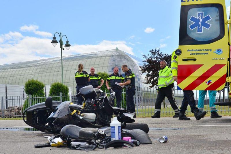 De bestuurder van de scooter maakte een wheelie en kwam daarbij in botsing met de motorrijder. Beide kwamen ten val. Eén van de slachtoffers raakte hierbij zwaargewond.