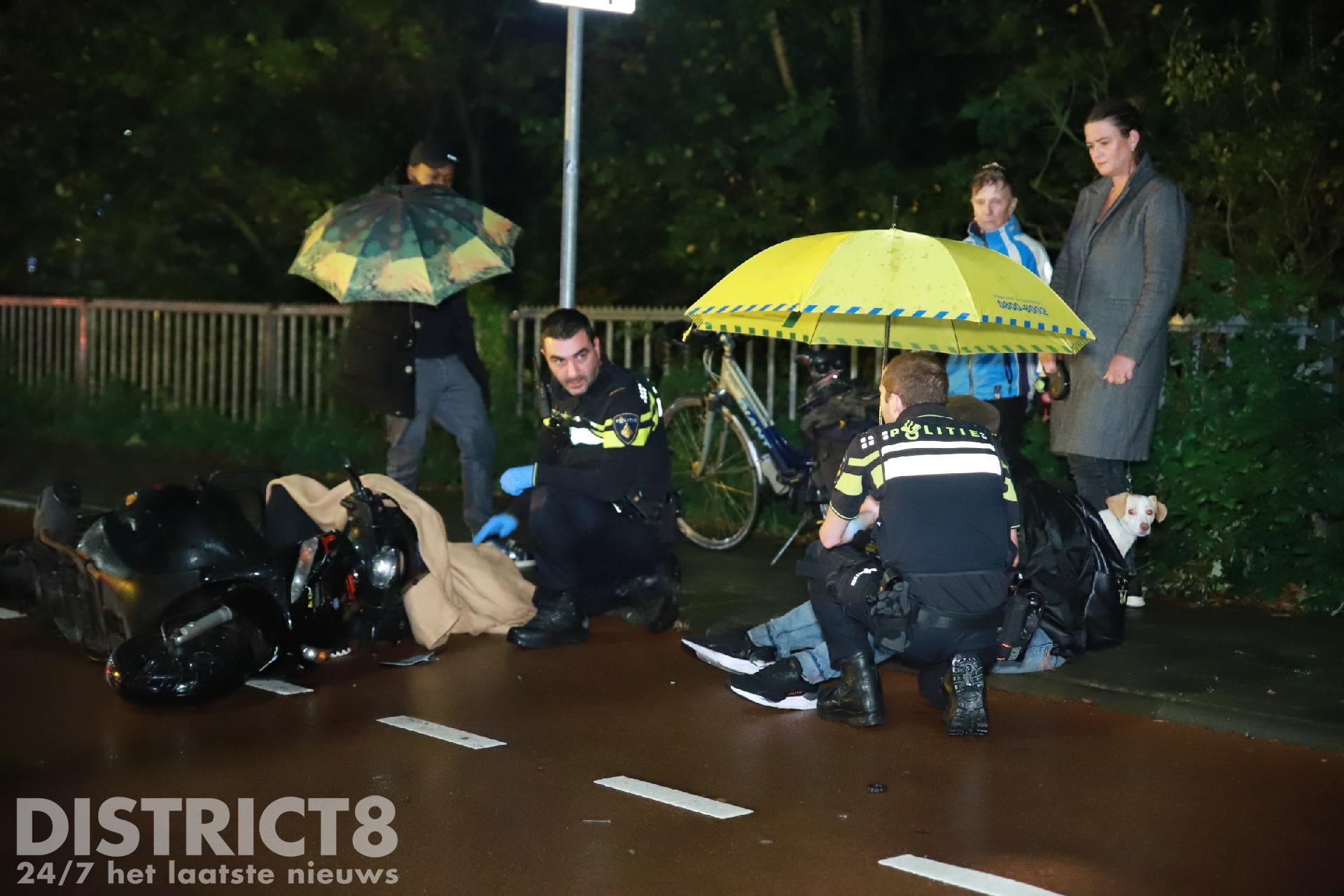 Zowel de bestuurder van de snorscooter als de fietser kwamen bij de aanrijding hard ten val, zij raakten beide gewond. De politie was als eerste ter plaatse, zij hadden de slachtoffers droog gehouden met paraplus.