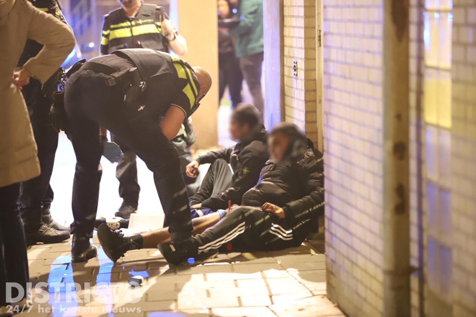 De twee slachtoffers lagen bebloed op straat. Zij werden ter plaatse door het ambulancepersoneel onderzocht. Eén slachtoffer is in zijn been geraakt.