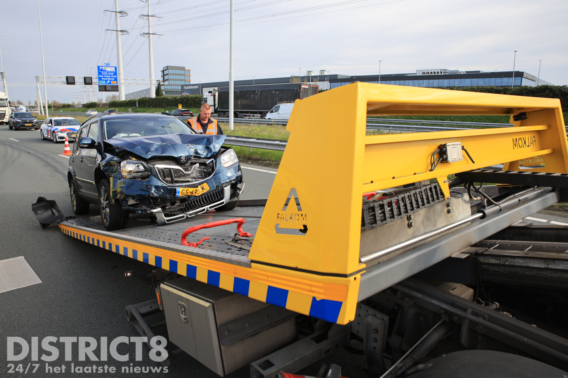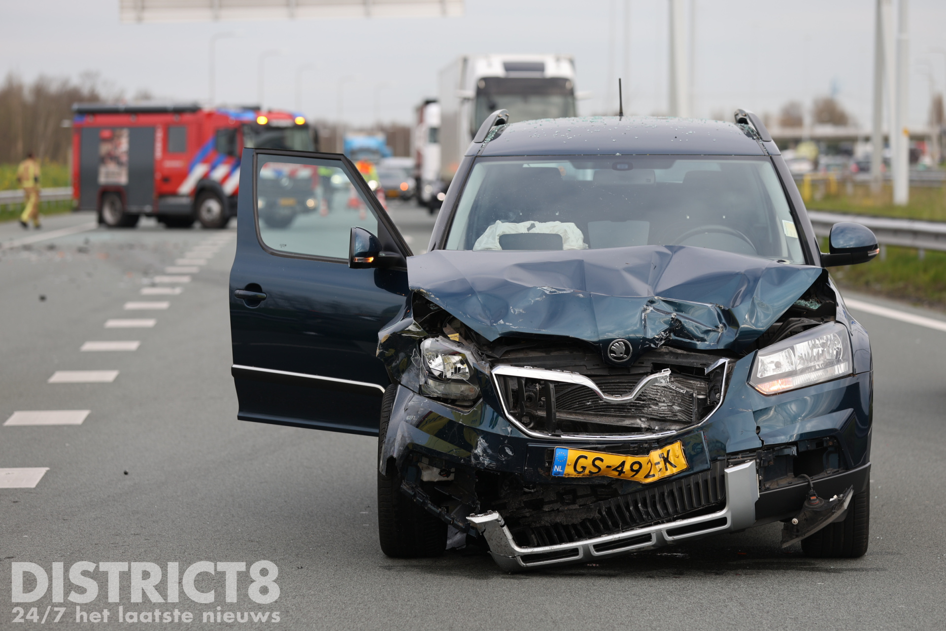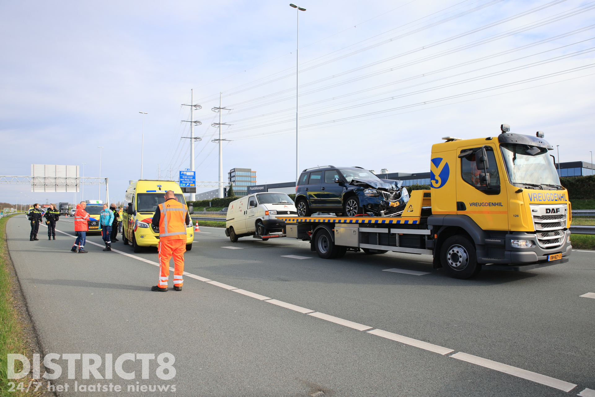 Twee bergers hebben de beschadigde voertuigen afgesleept, waarna het wegdek is gereinigd en de snelweg weer volledig werd vrijgegeven.