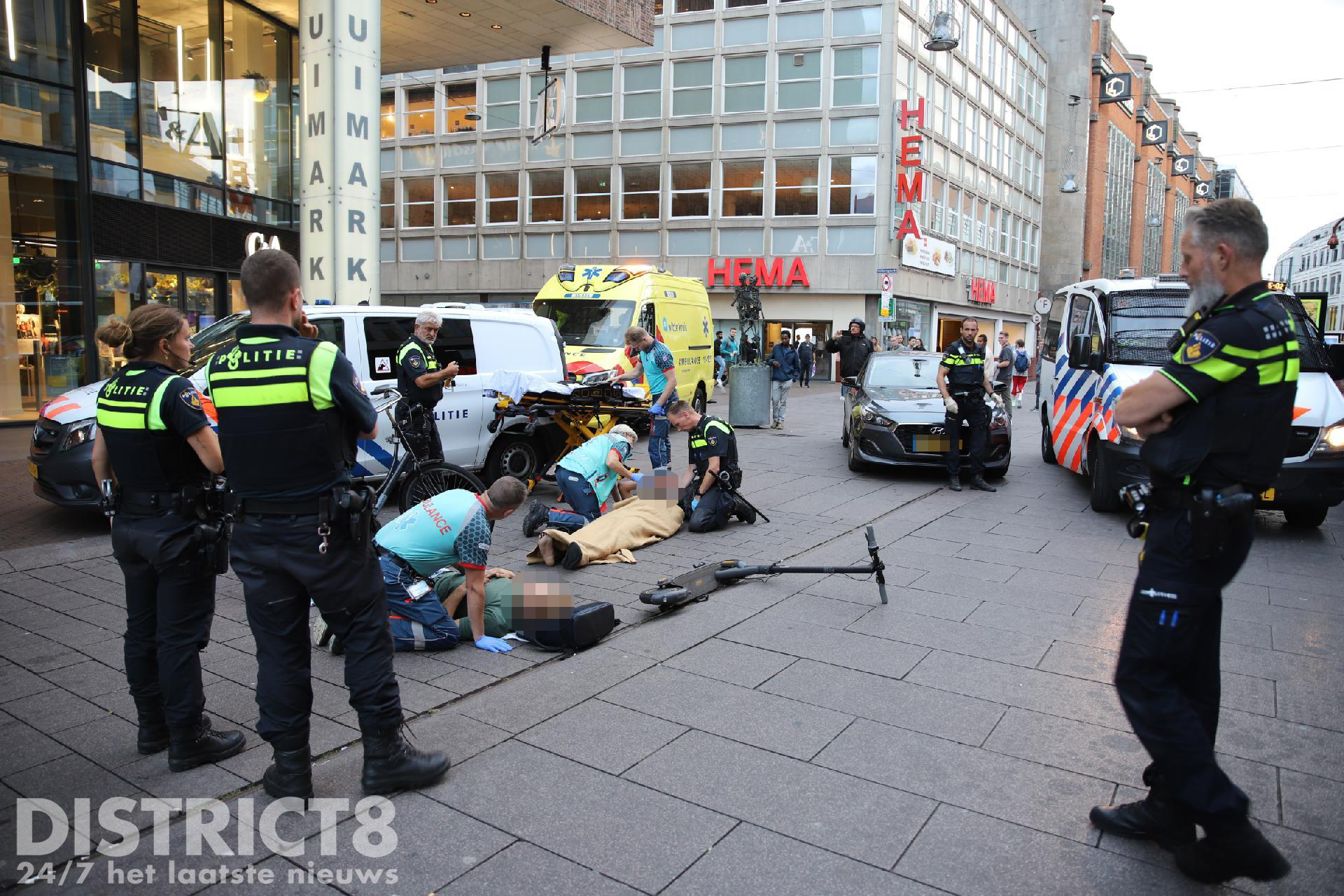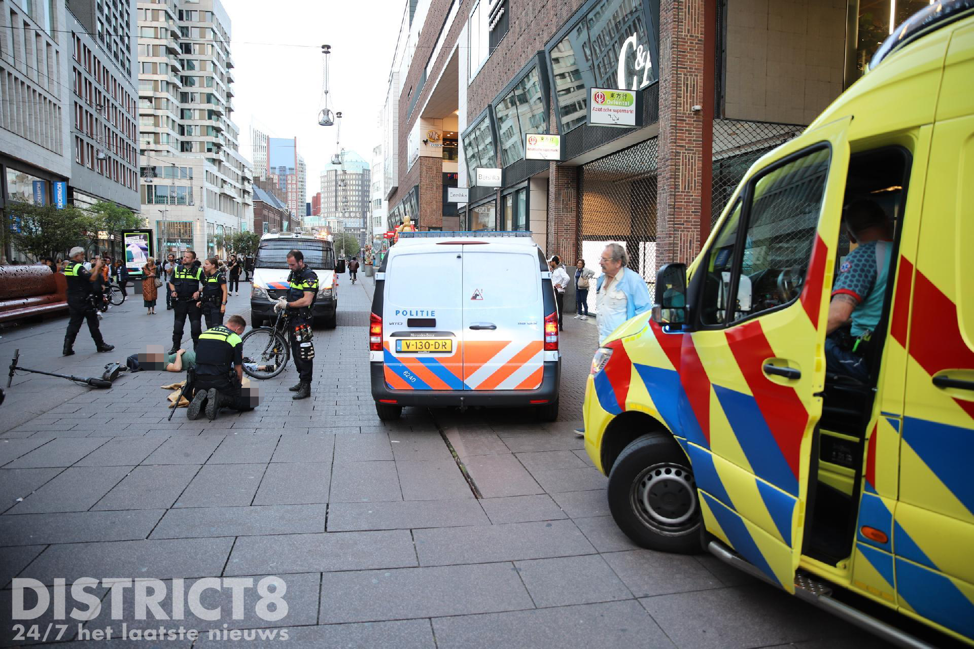 Den Haag – Op de Grote Marktstraat in Den Haag heeft vrijdagavond 25 augustus een aanrijding plaatsgevonden tussen een fietser en een man op een step.