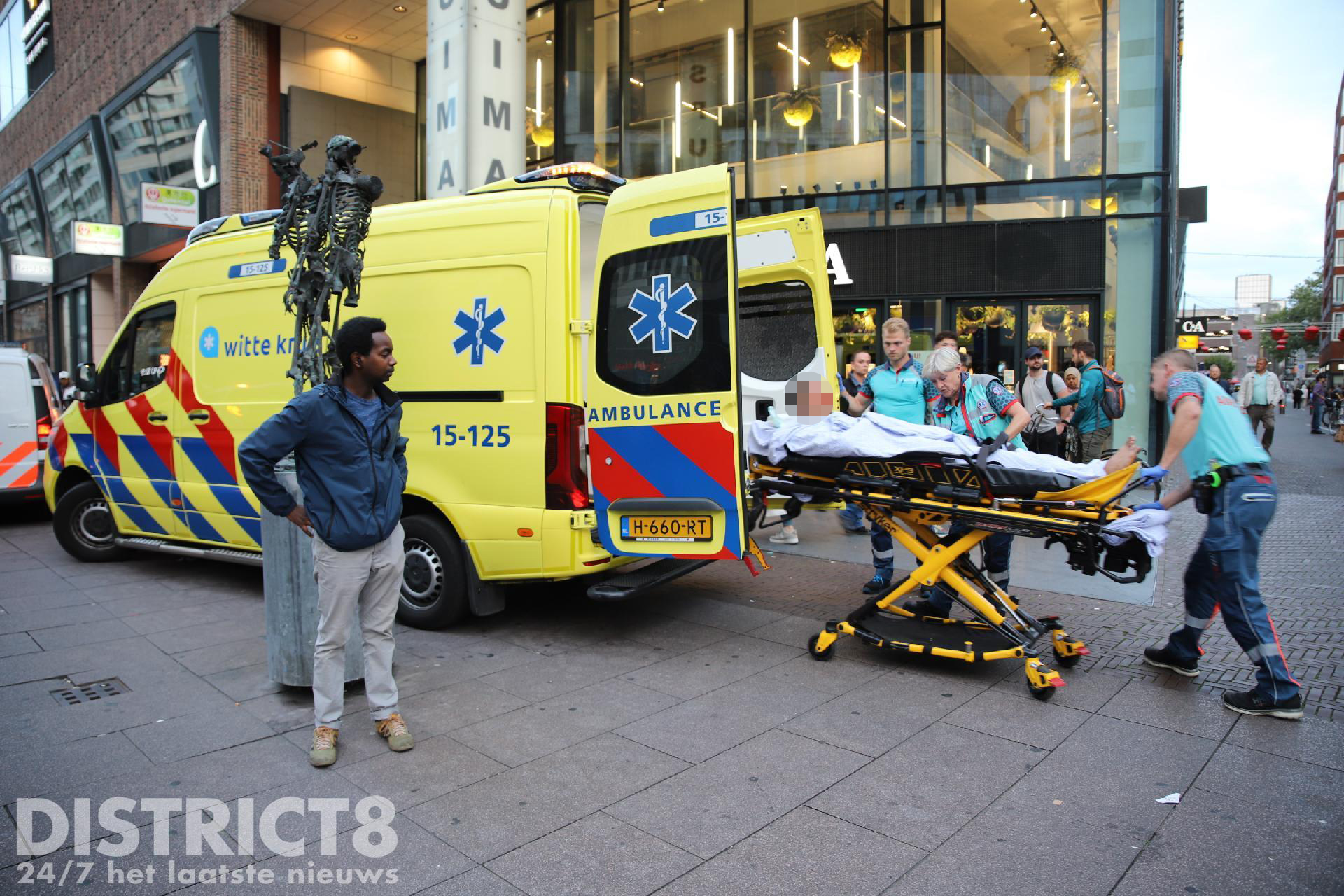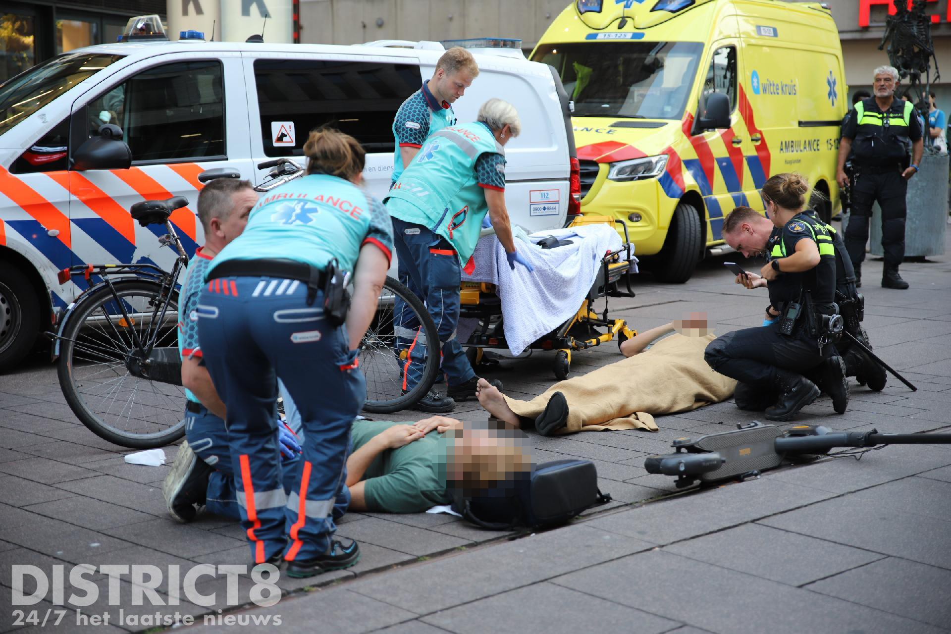 Een van de gewonden is direct op een brancard gelegd en in de ambulance verder gecontroleerd, uiteindelijk is dit slachtoffer zonder spoed (A2) vervoerd naar het ziekenhuis. Het andere slachtoffer is op een bankje neergezet in afwachting van een tweede ambulance. Deze is uiteindelijk ook naar het ziekenhuis vervoerd.