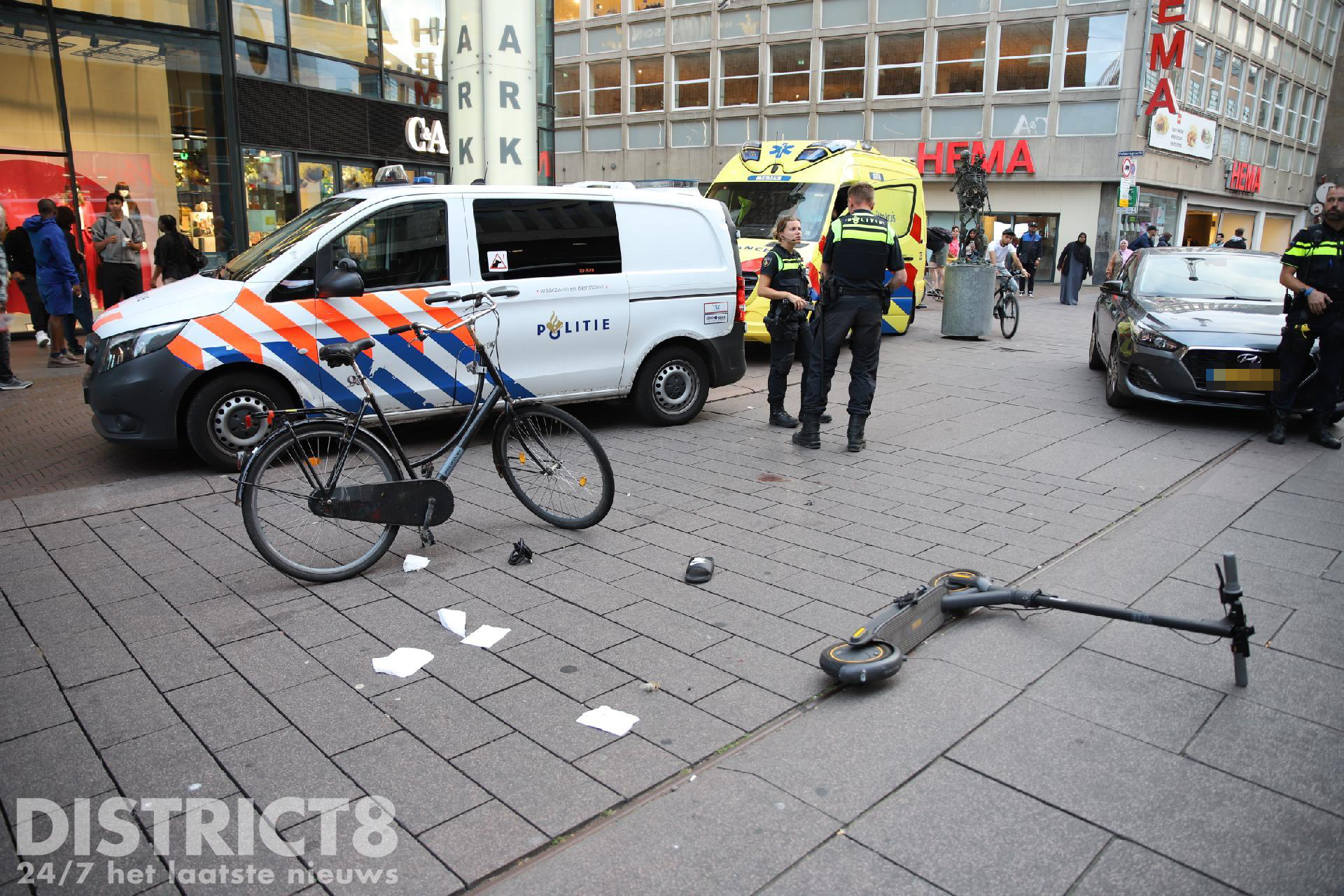 Twee gewonden na aanrijding tussen fiets en step Grote Marktstraat Den Haag