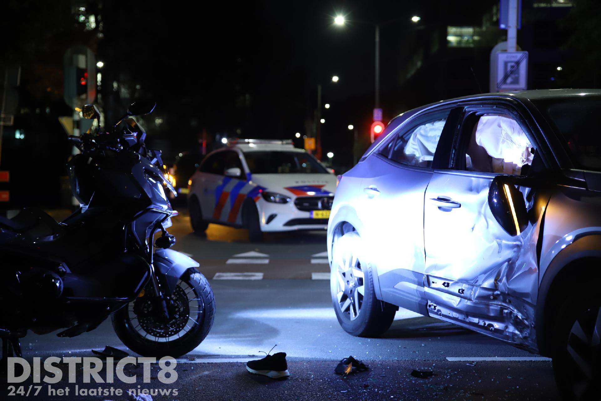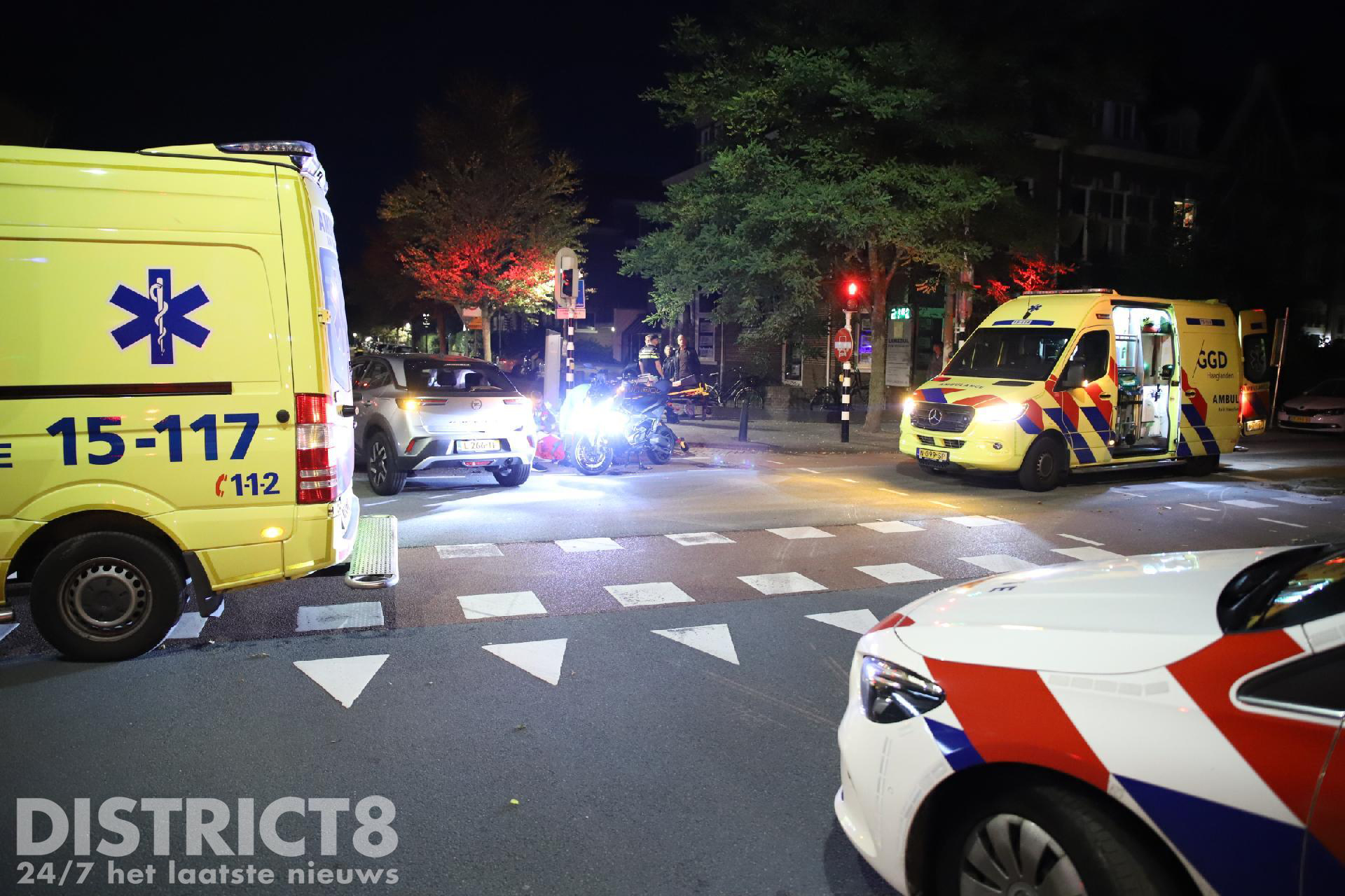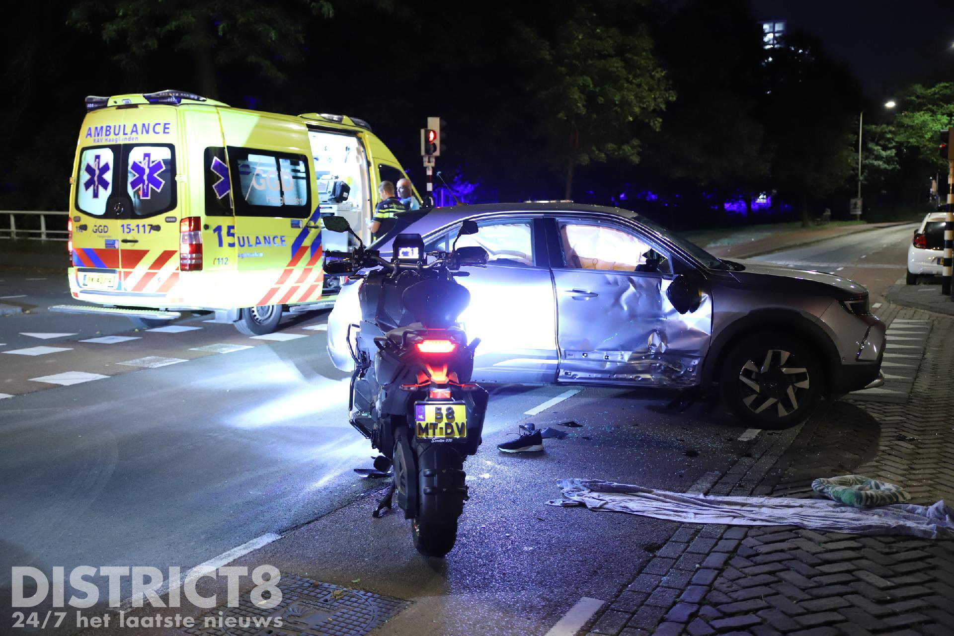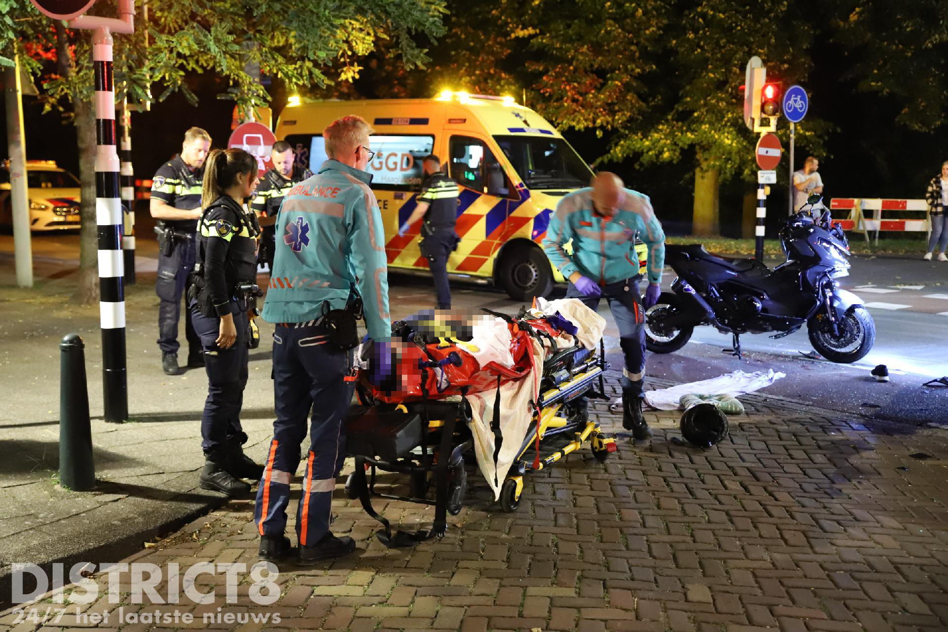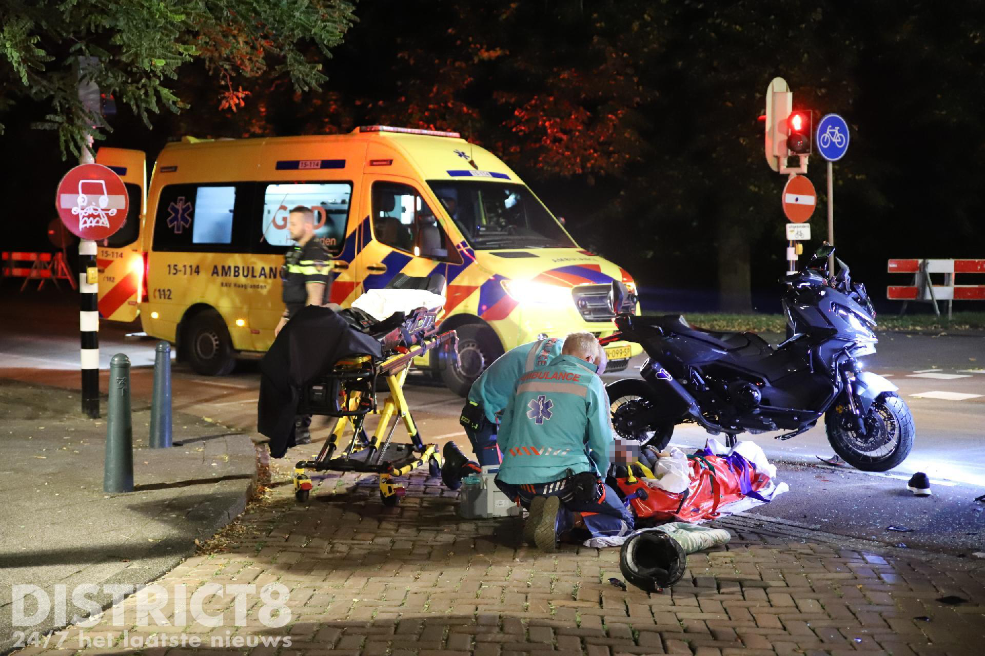 Den Haag – Op de Schenkkade in Den Haag zijn in de nacht van woensdag 27 op donderdag 28 september twee opzittenden van een motor gewond geraakt.