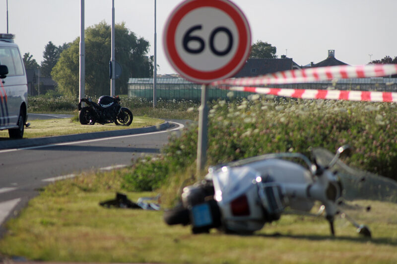 Pijnacker – Op de kruising van de Zijdeweg met de Hoogseweg in Pijnacker heeft een aanrijding plaatsgevonden tussen een motor en een scooter.