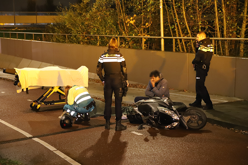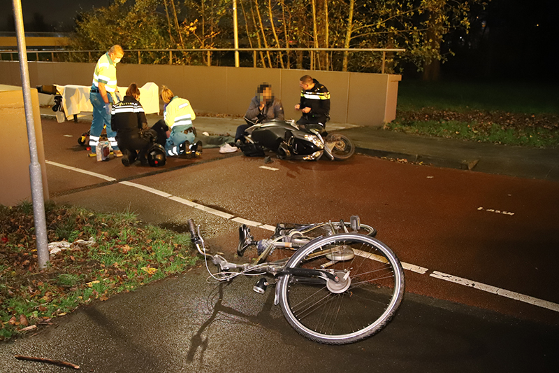 Zowel de scooterrijdster als de fietser kwamen na de aanrijding hard ten val op het fietspad en raakten beide gewond.