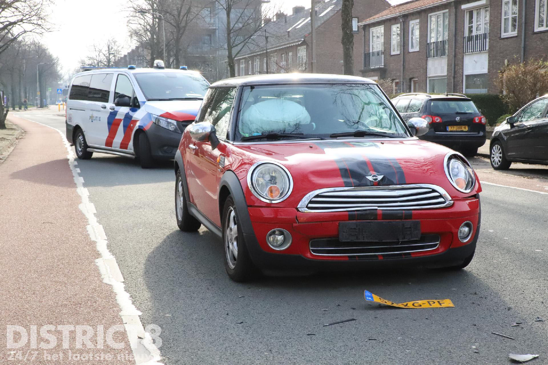 Rond half twaalf ging het mis toen twee voertuigen, op de kruising van de Van Miereveltlaan met de Vermeerstraat in Delft, tegen elkaar botste. Daarbij is van een voertuig de airbags geactiveerd.