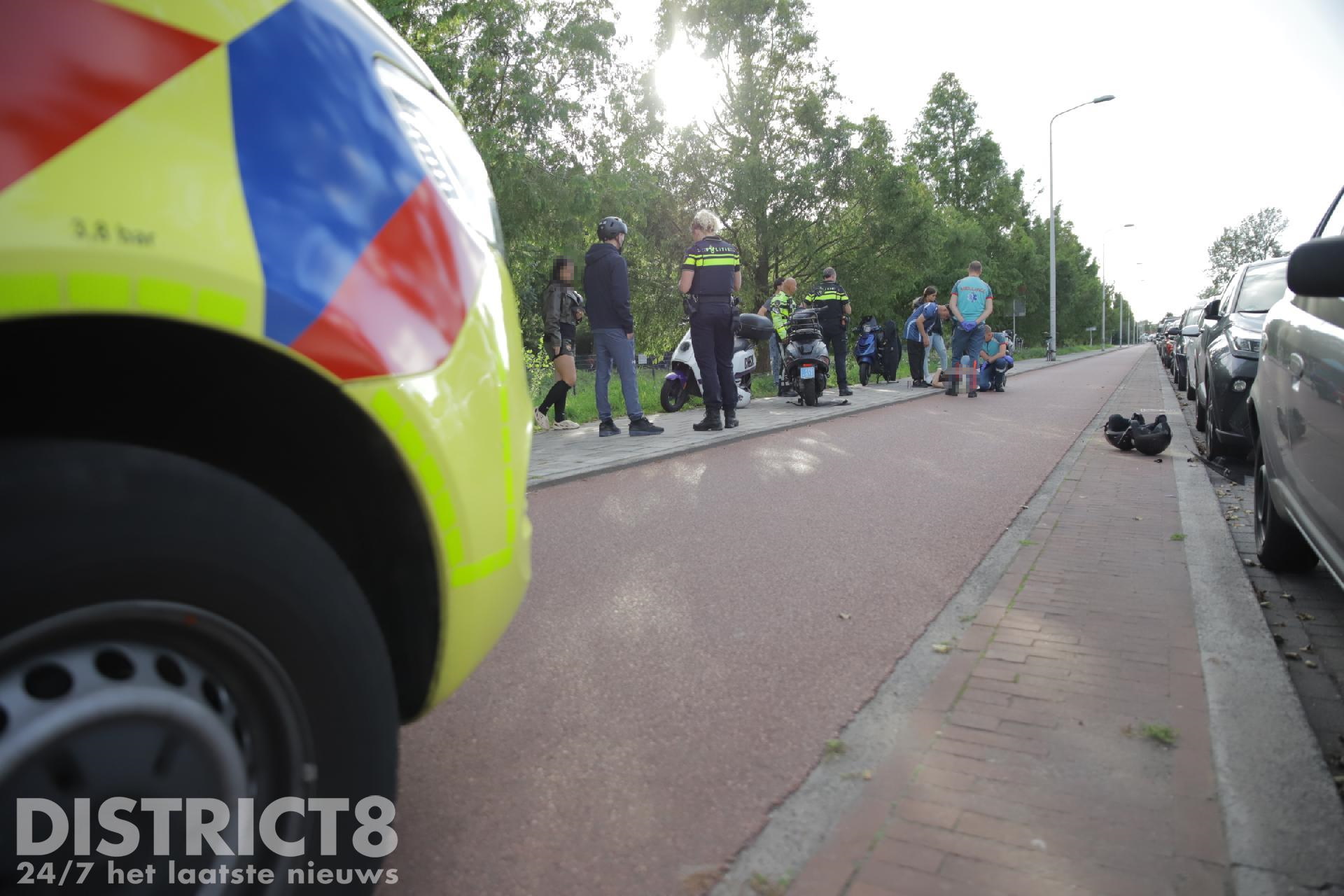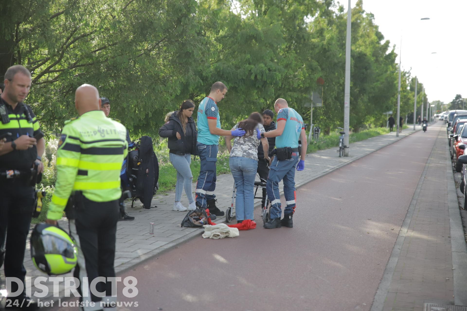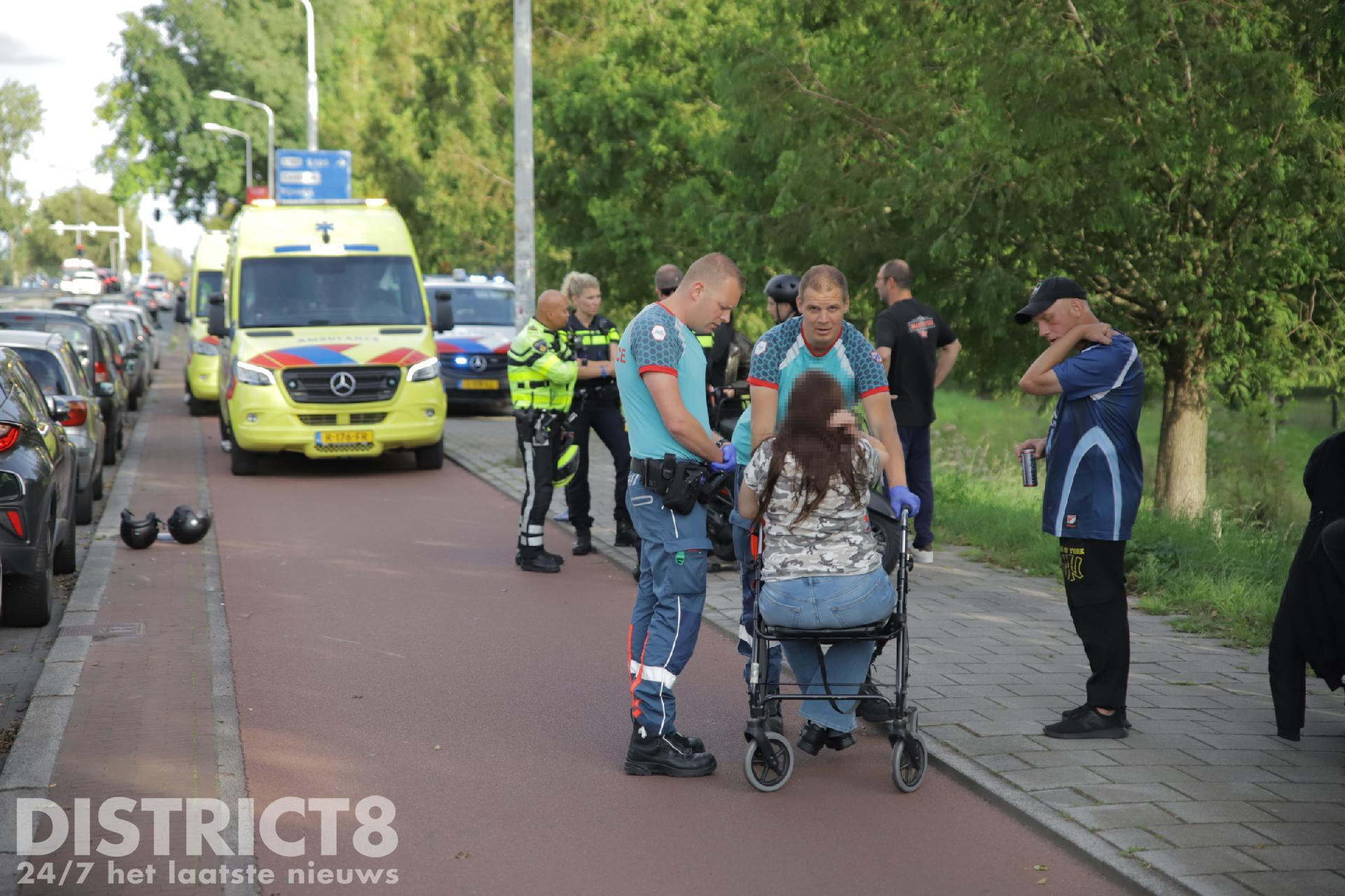 Een vrouw met een rollator kwam volgens omstanders door nog onbekende oorzaak op het fietspad. Op dat moment passeerde een scooter met twee opzittende haar. Zij konden de vrouw niet meer ontwijken, knalde tegen elkaar aan, waarna beide partijen hard op de grond terecht kwamen.