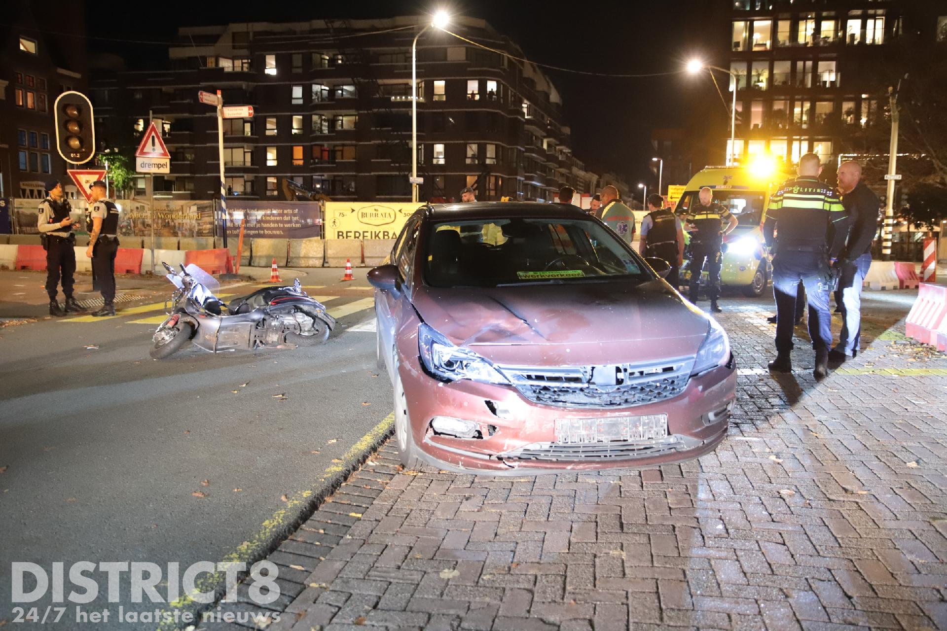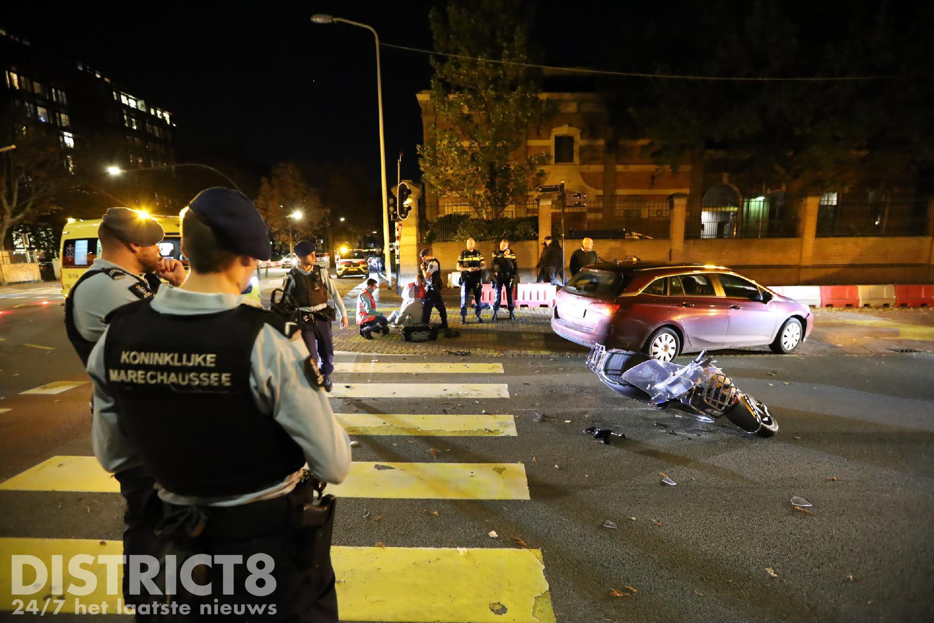 Den Haag – Op de Hogewal met de Prinsessewal in Den Haag heeft woensdagavond 19 oktober rond 20:40 uur een aanrijding plaatsgevonden tussen een scooter en een auto.