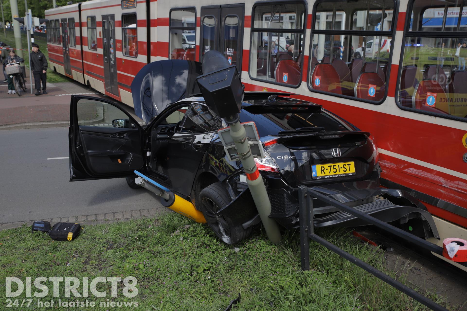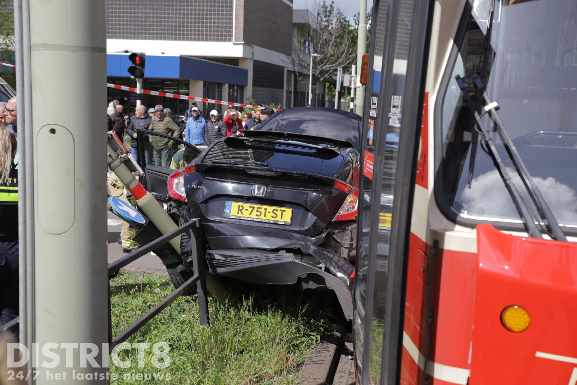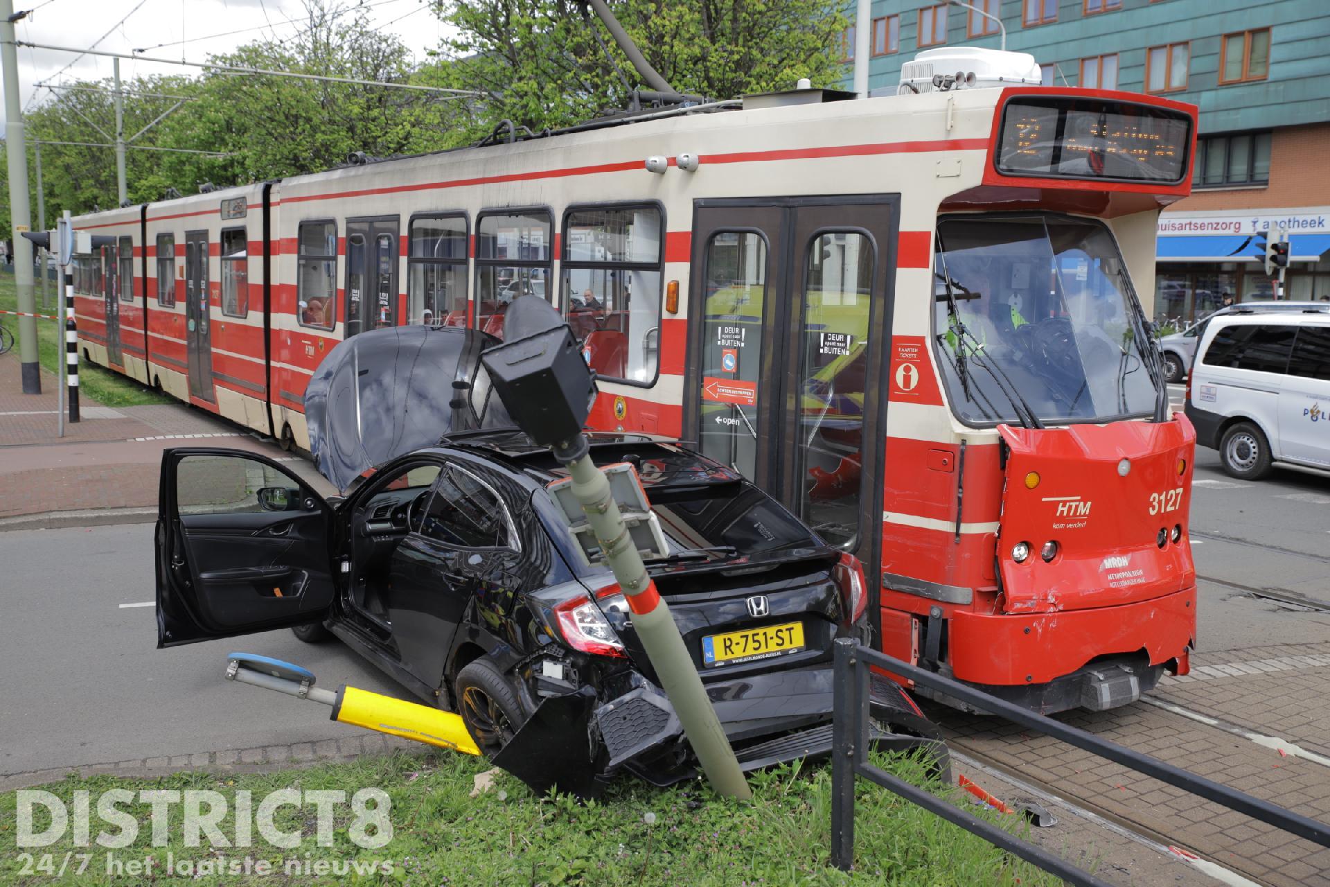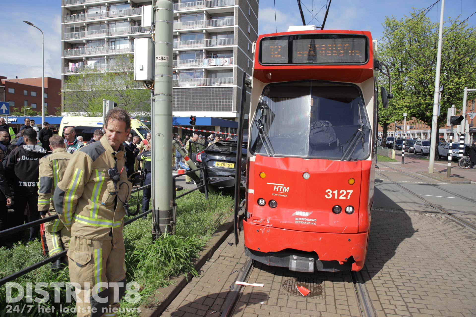 Den Haag – Donderdagmiddag 18 april heeft er op het Hobbemaplein in Den Haag een forse aanrijding plaatsgevonden tussen een personenauto en een tram van tramlijn 12.