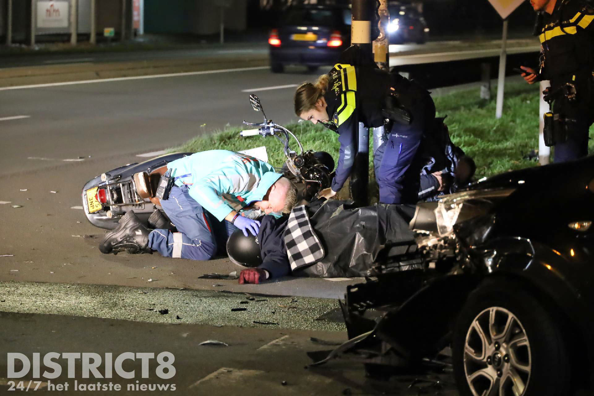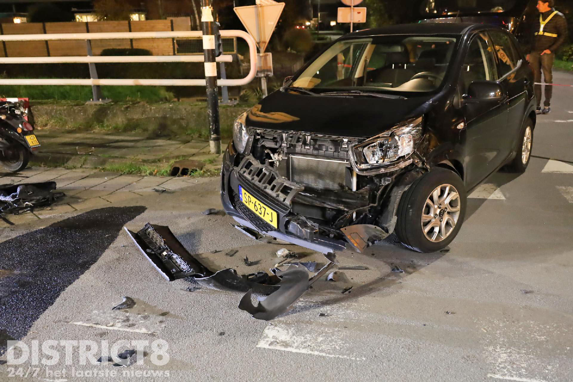 De auto en beide scooters hebben flinke schade opgelopen, de politie is ter plaatse en doet onderzoek.