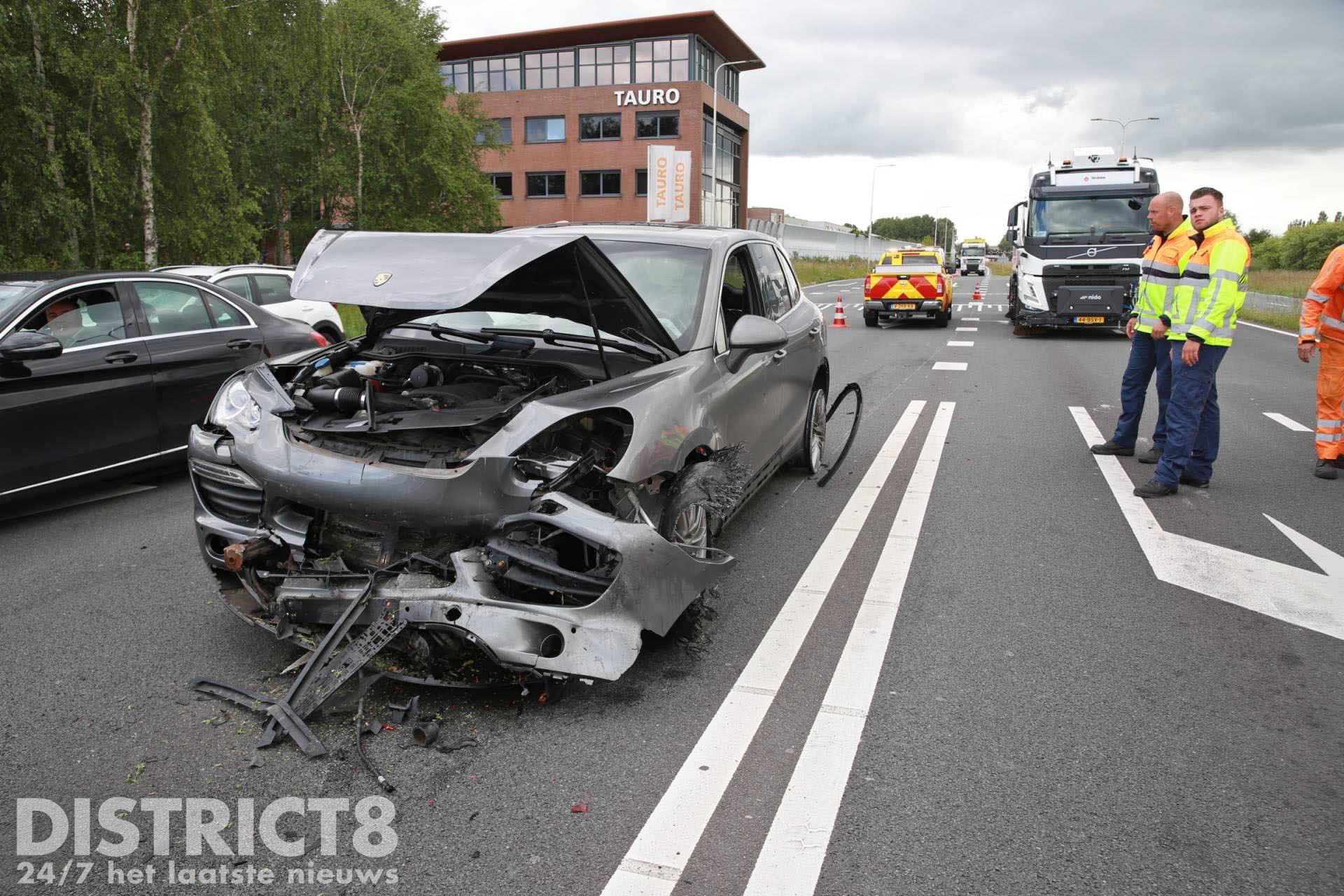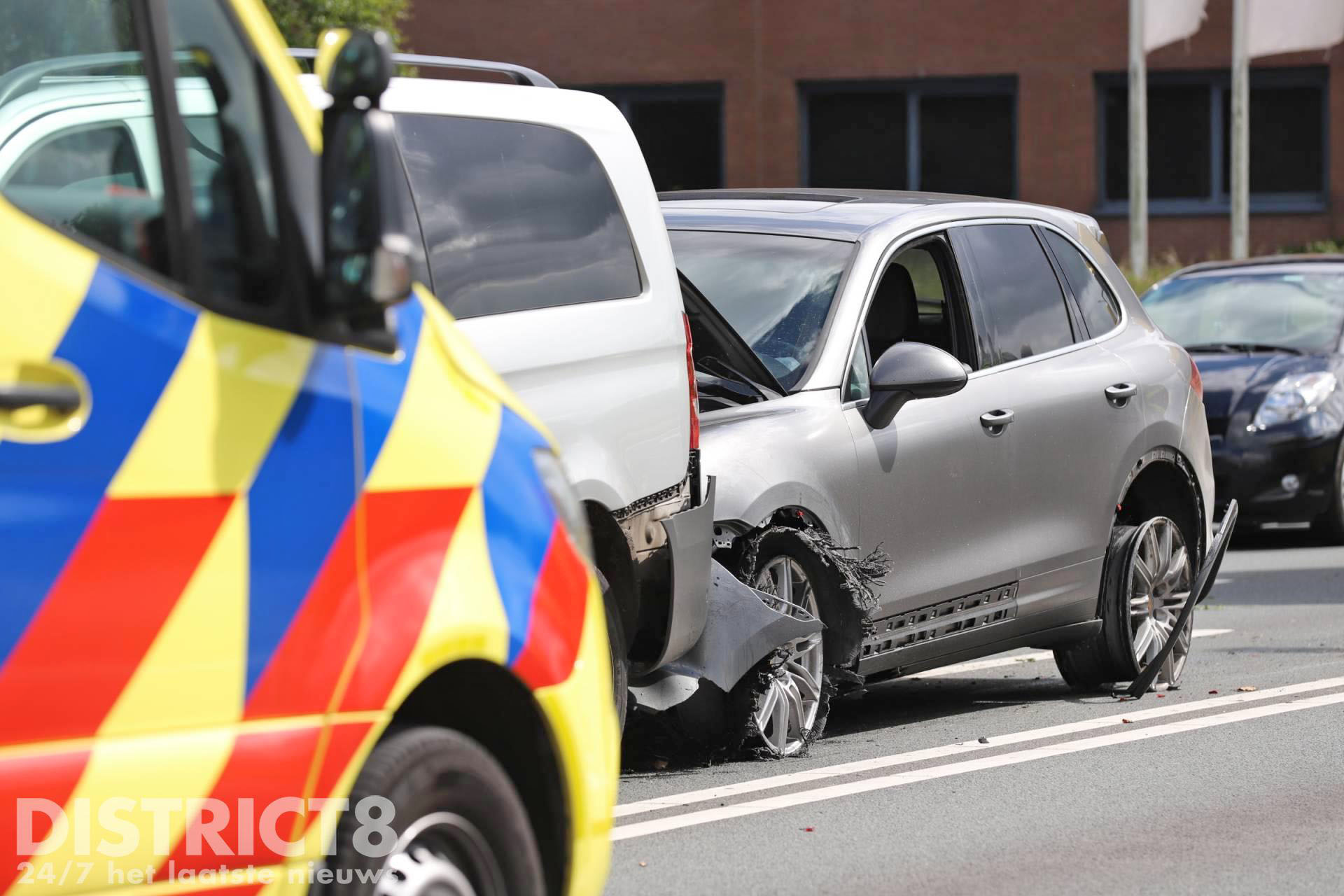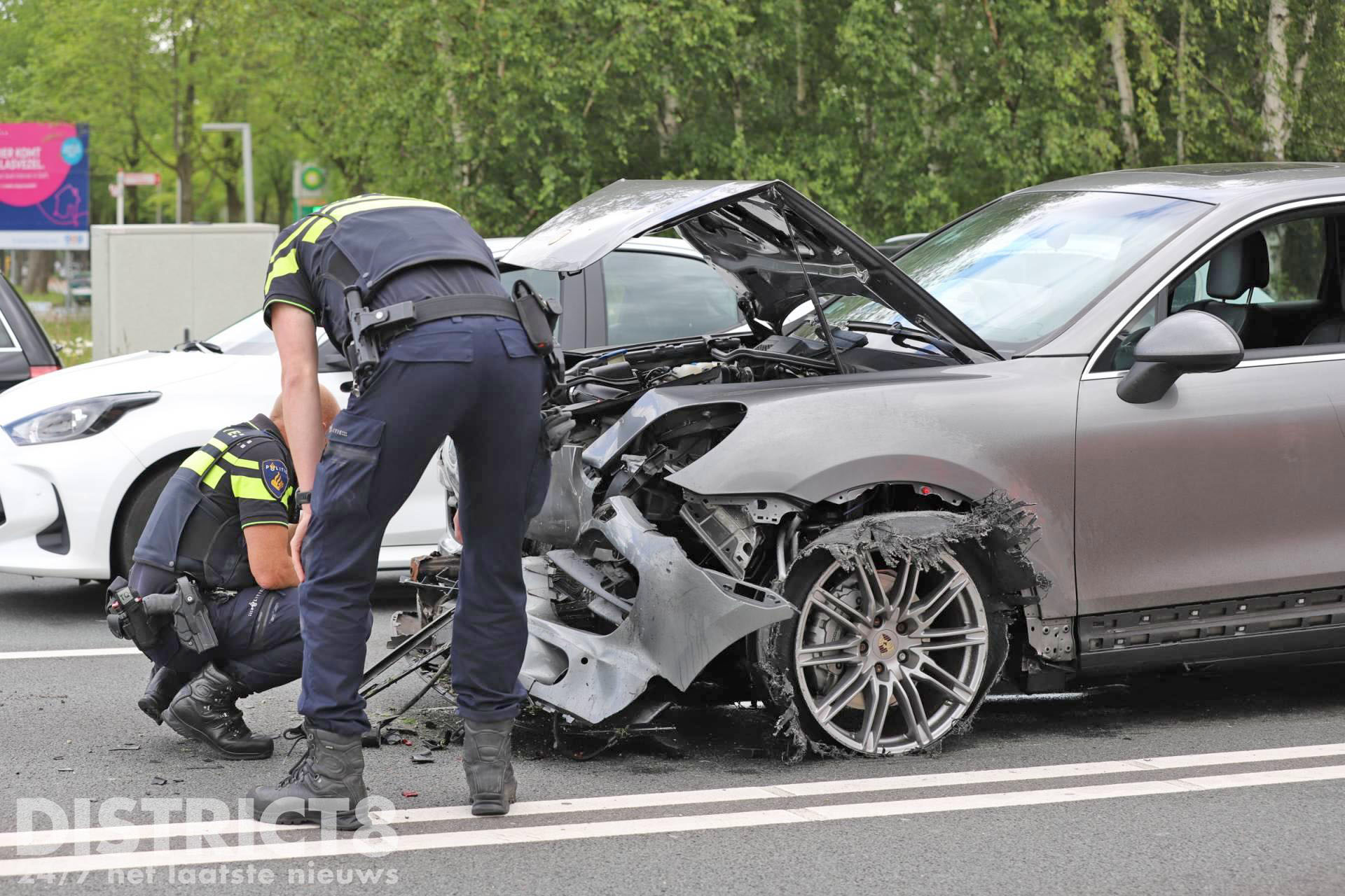 Voor de stoplichten van het kruispunt met de Buitenhofdreef ging het omstreeks 10:05 uur mis. De personenauto kwam volgens getuigen met hoge snelheid aan gereden.
