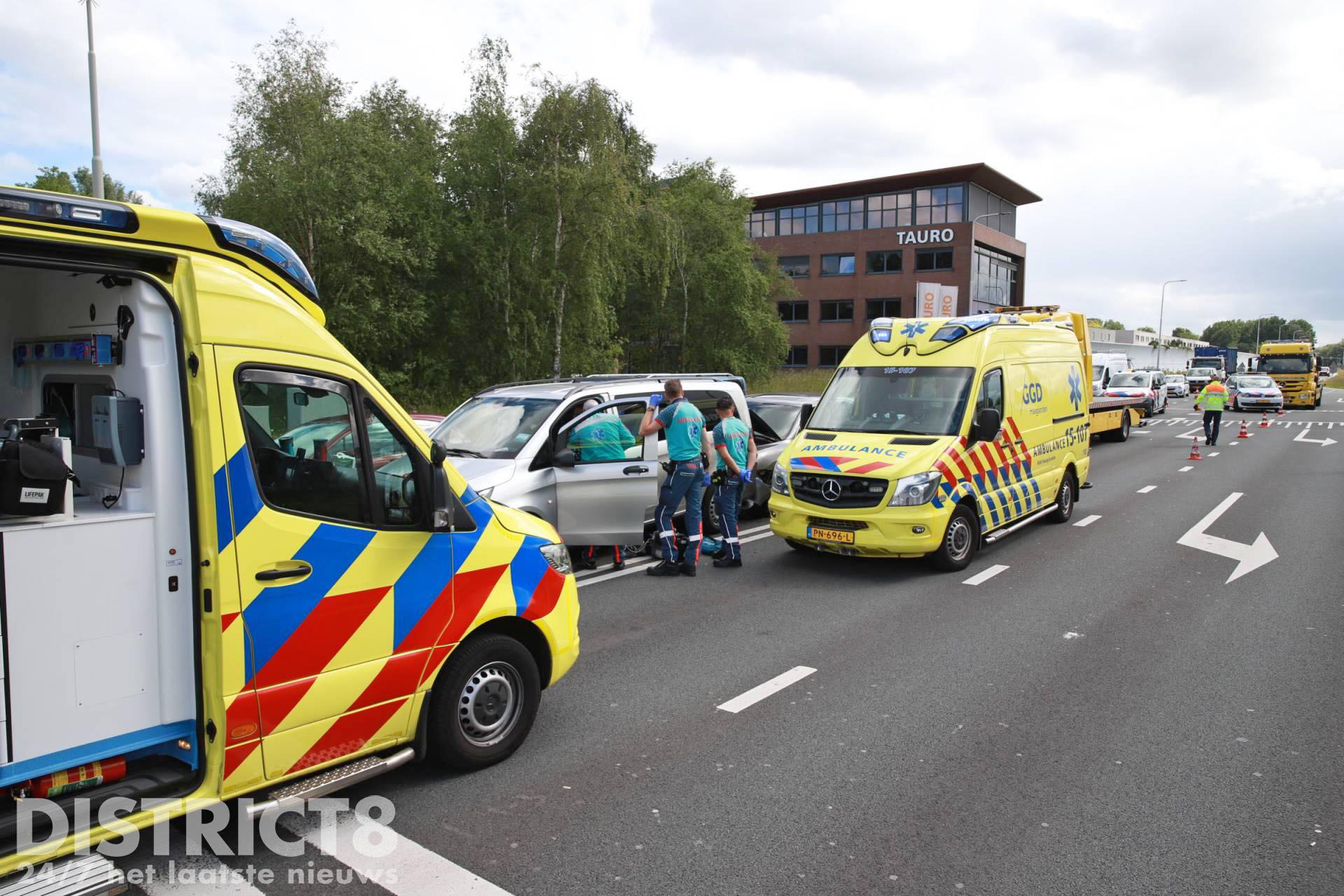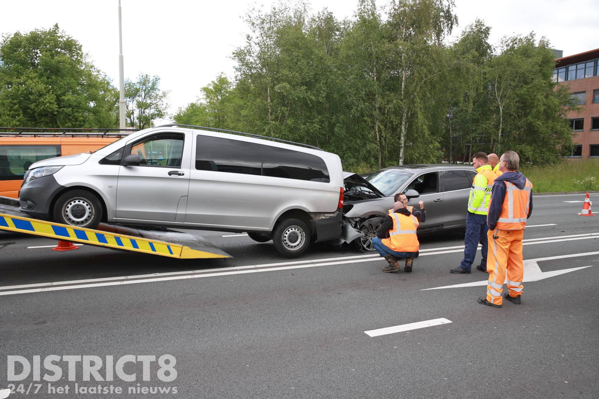 Twee gewonden nadat auto zonder banden achterop taxibusje klapt Kruithuisweg / N470 Delft