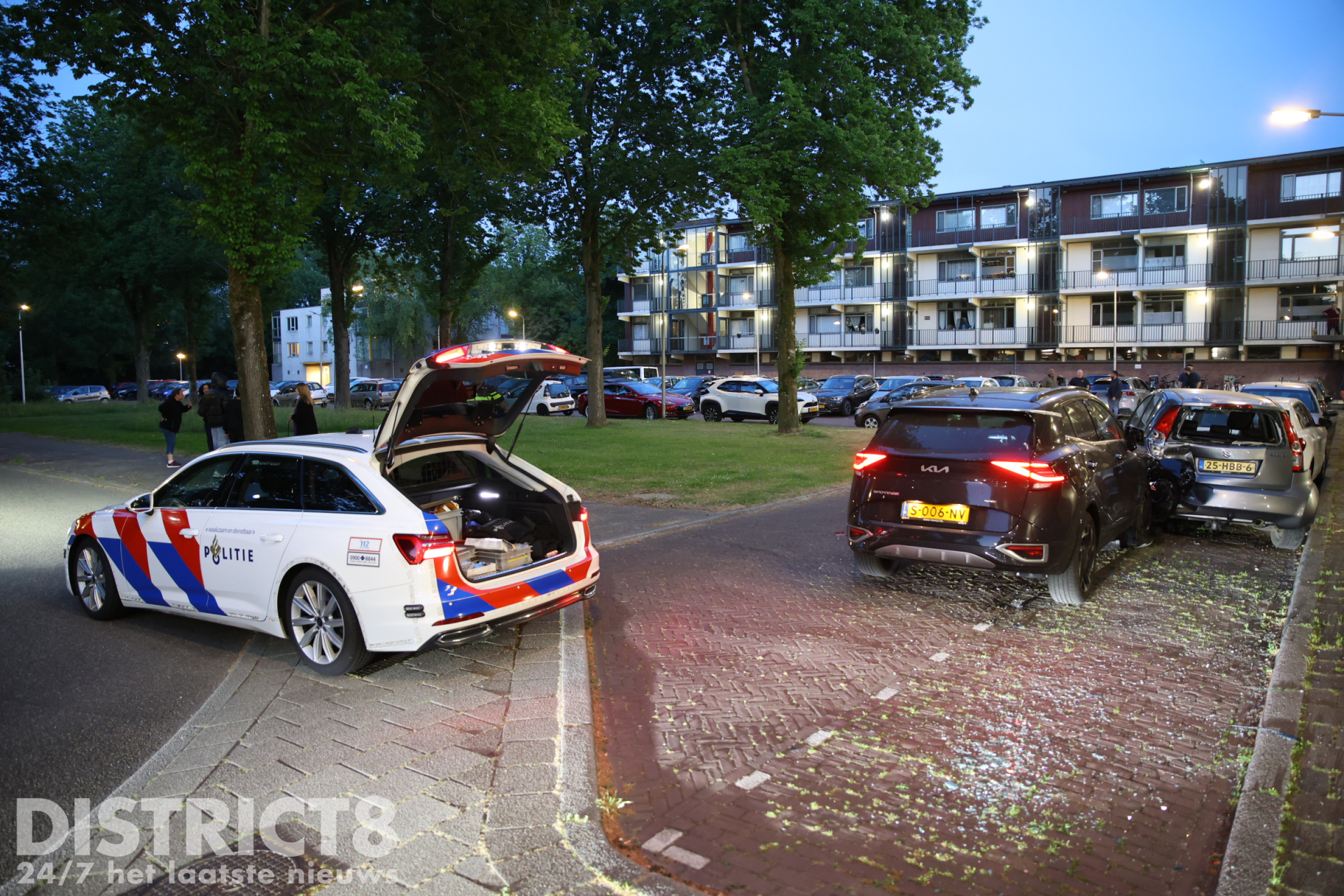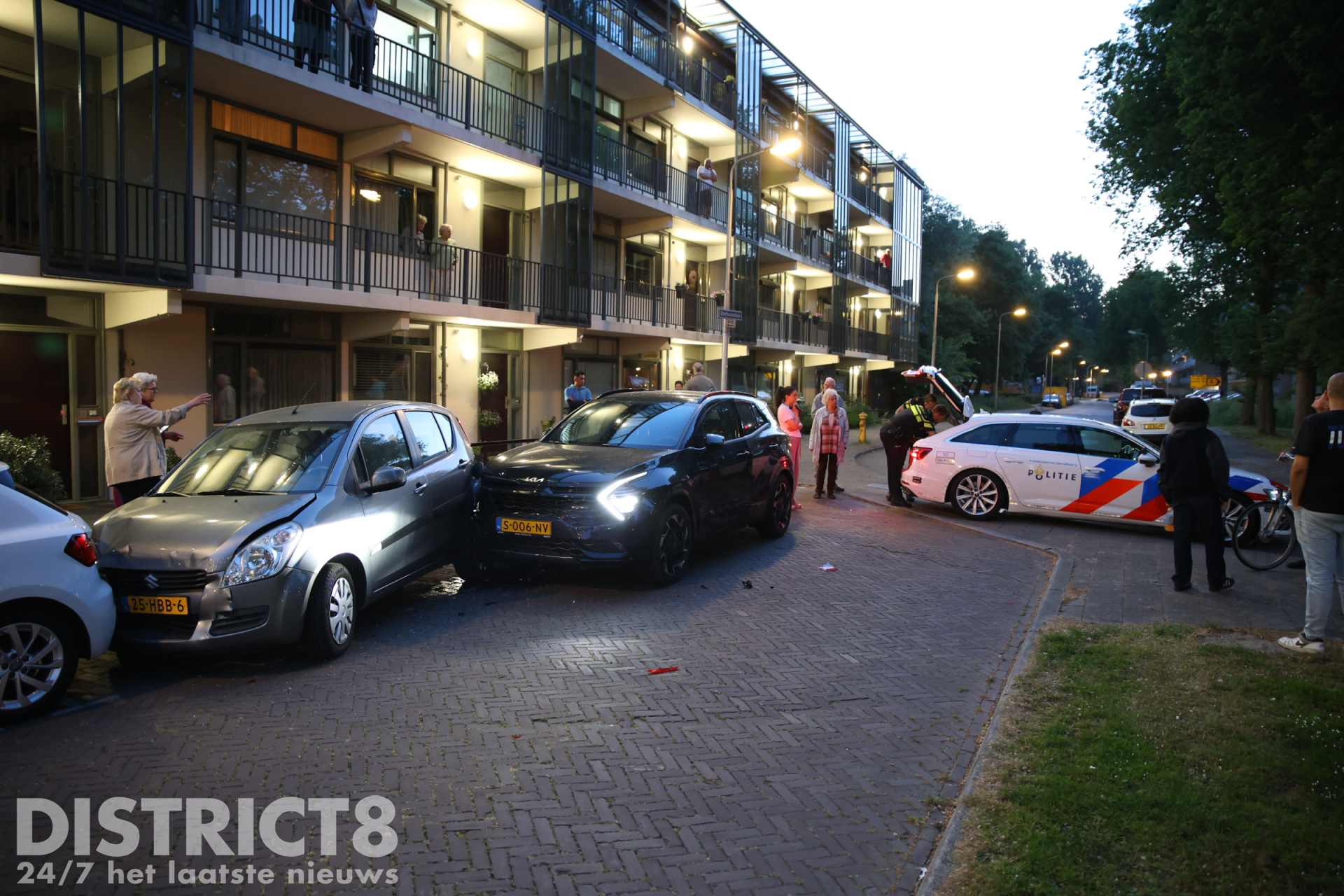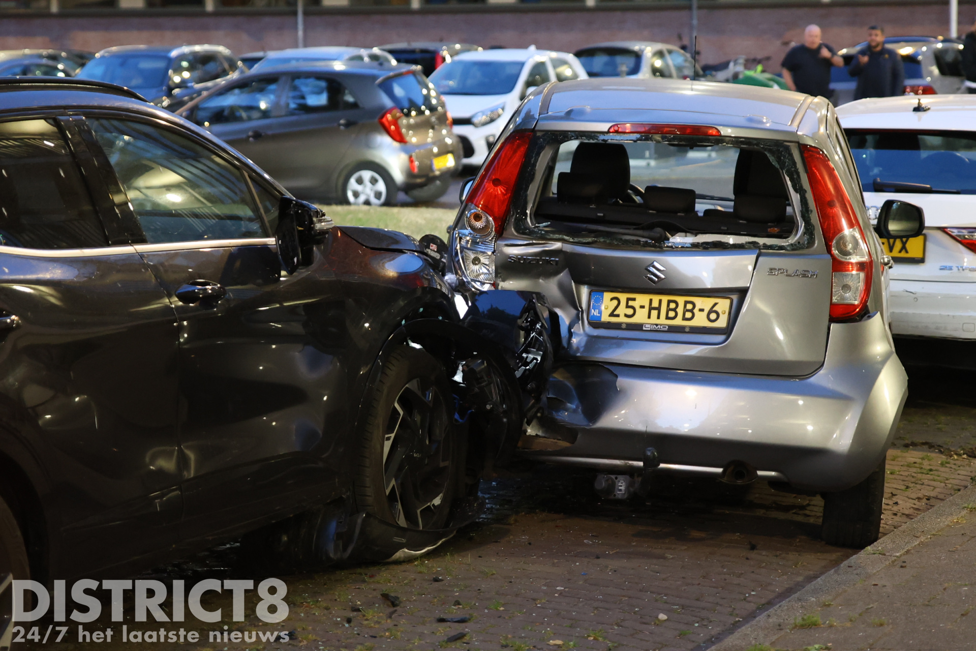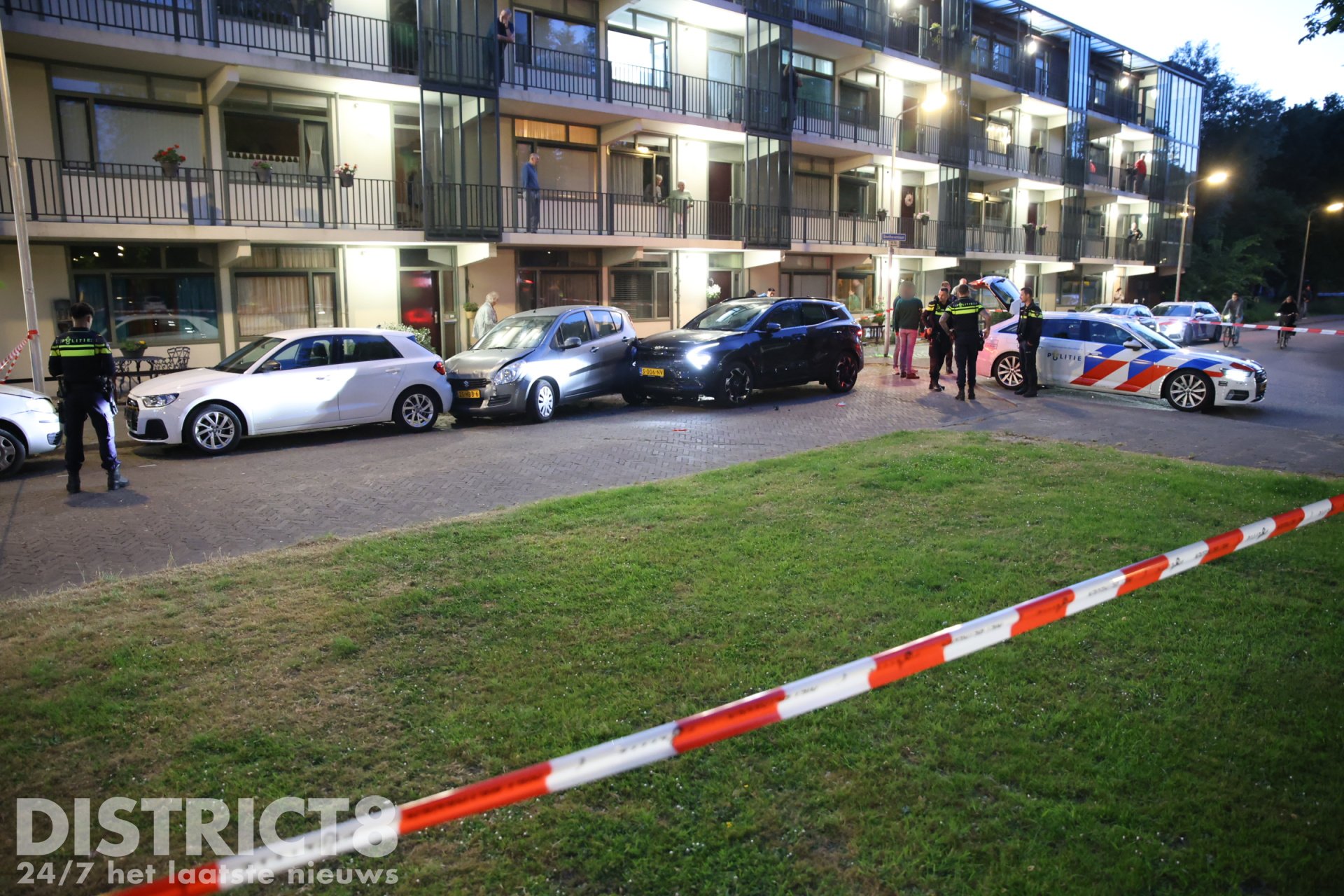 Door de crash zijn zeker vijf geparkeerde autos beschadigd geraakt.