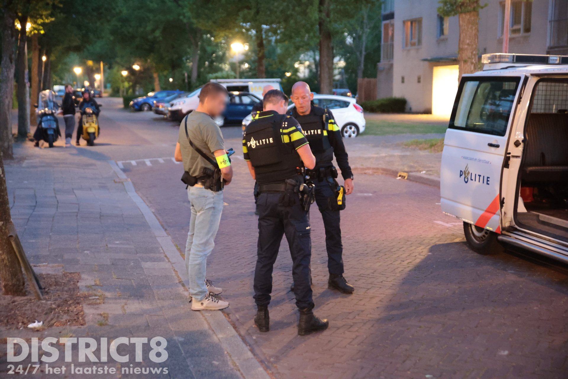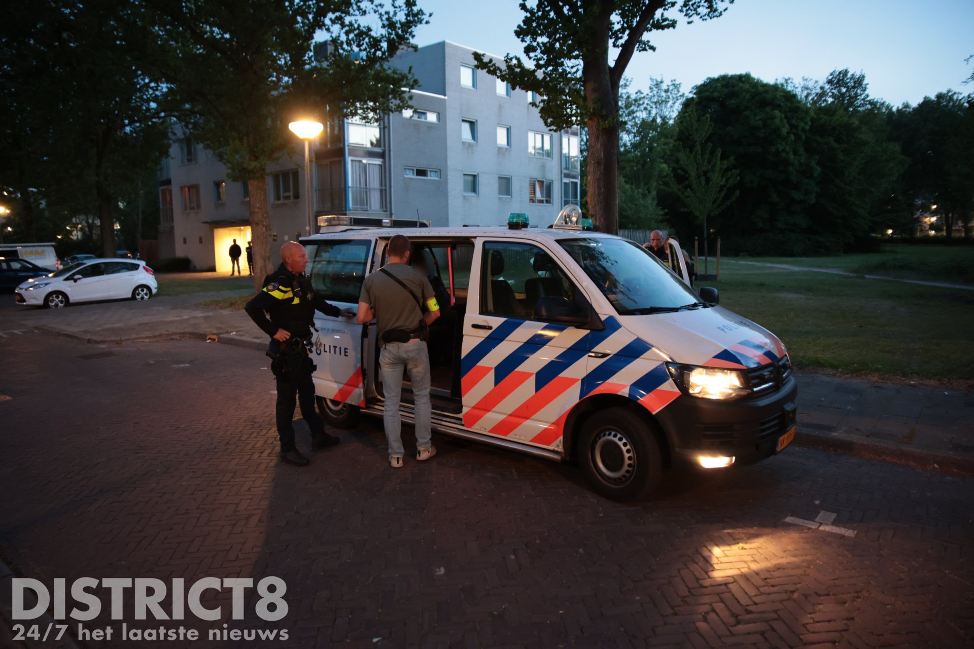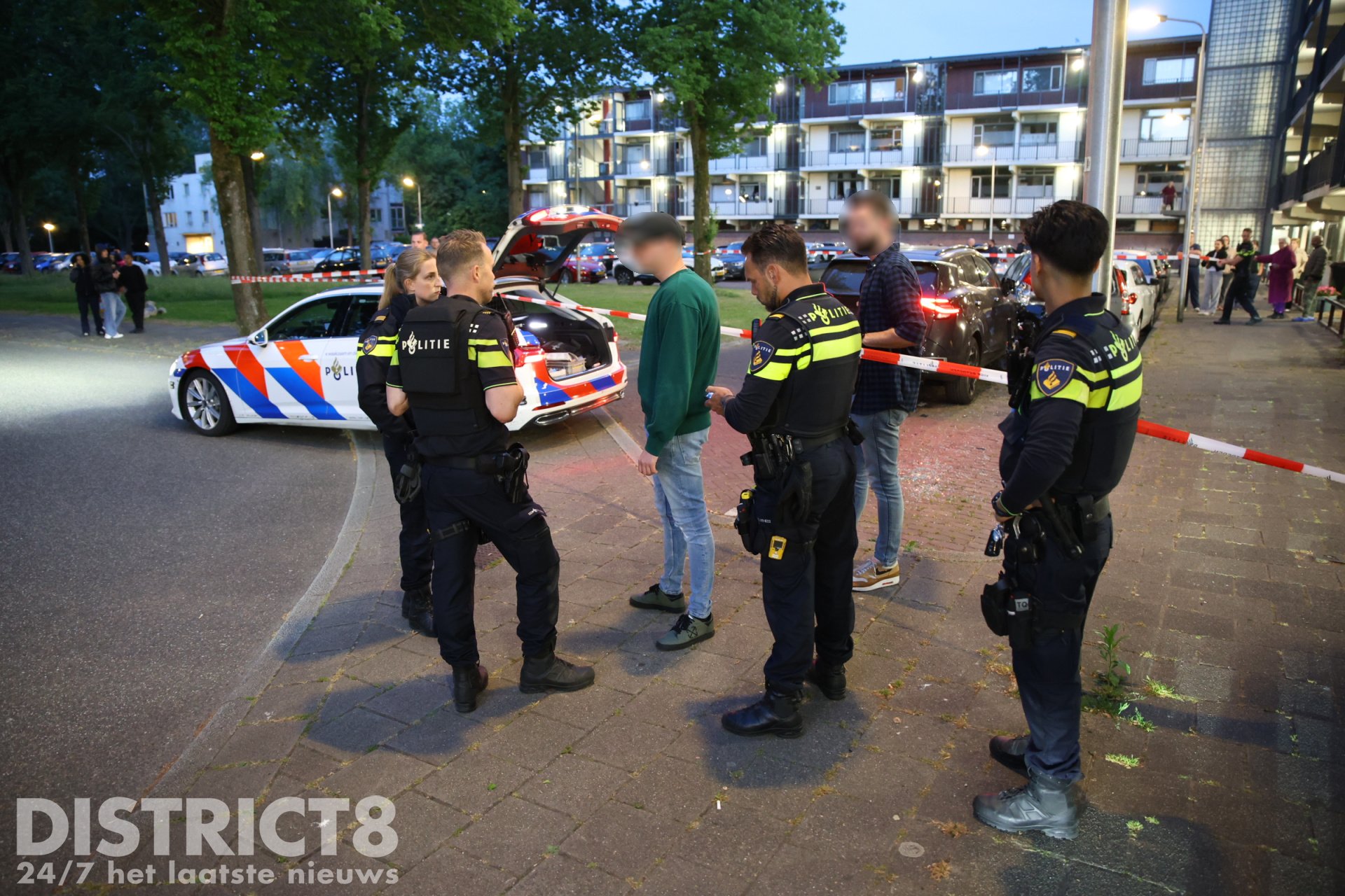 Op de Handellaan heeft de politie zeker één persoon aangehouden. Hierbij is door agenten een waarschuwingsschot gelost. Deze verdachte is overgebracht naar het politiebureau.