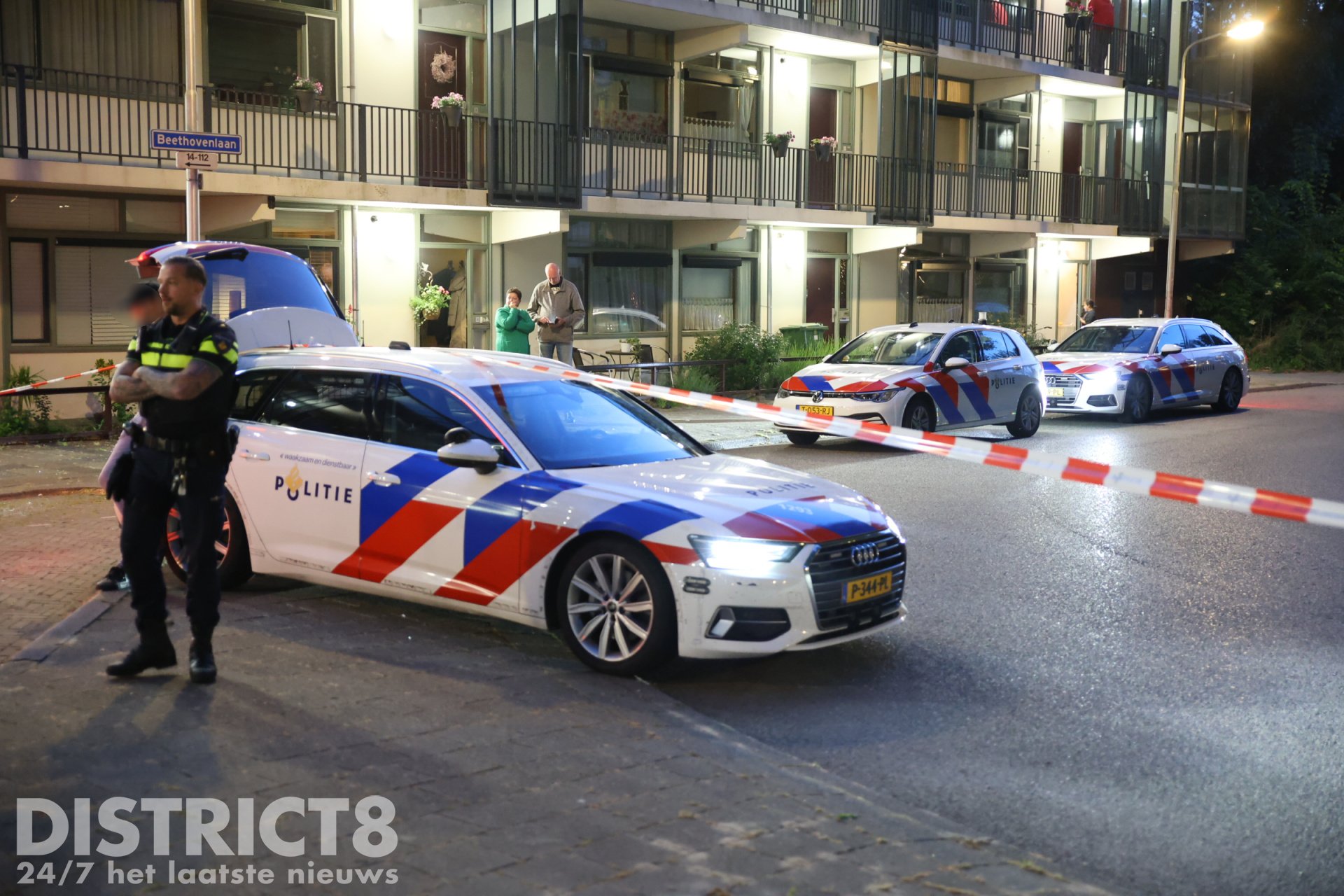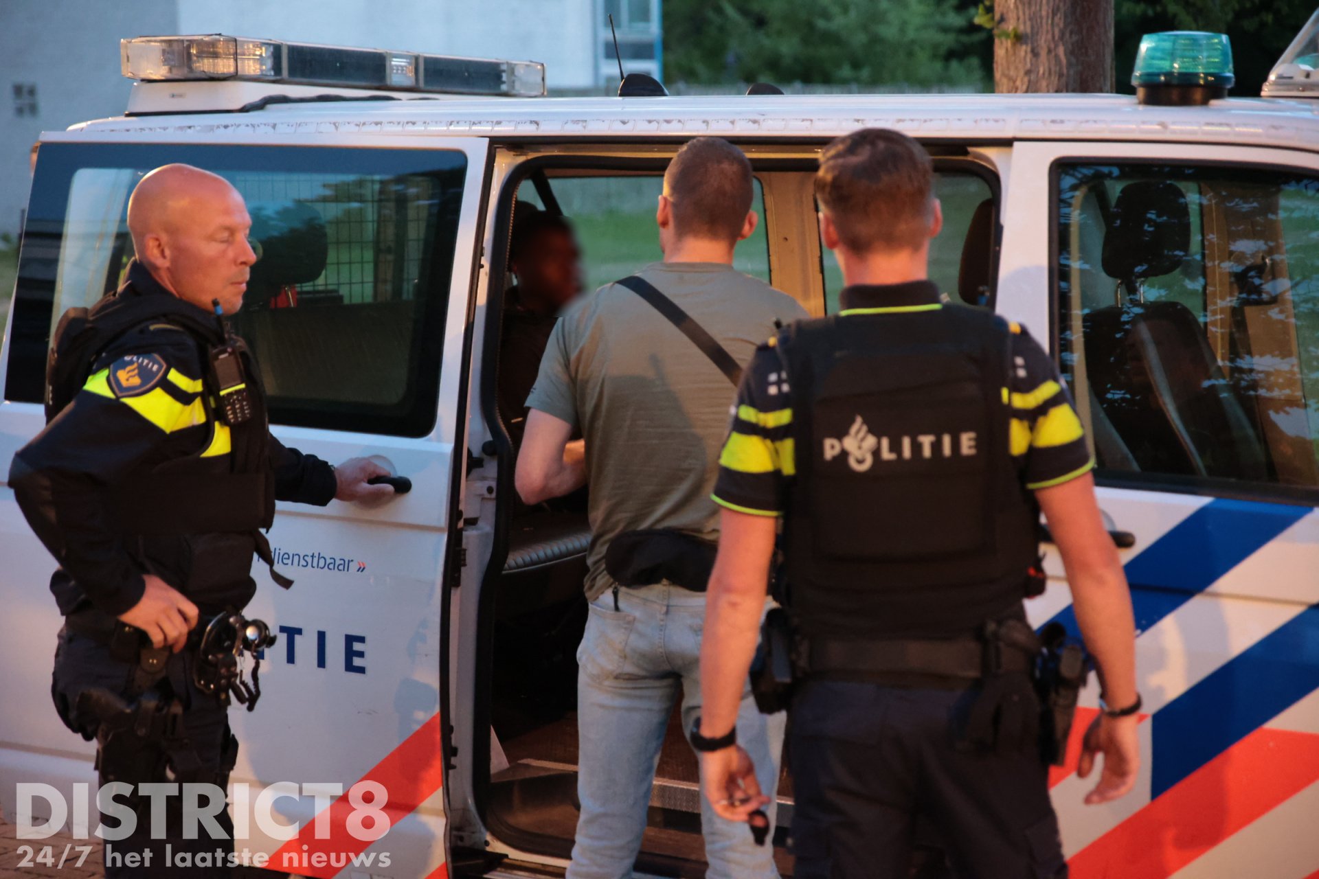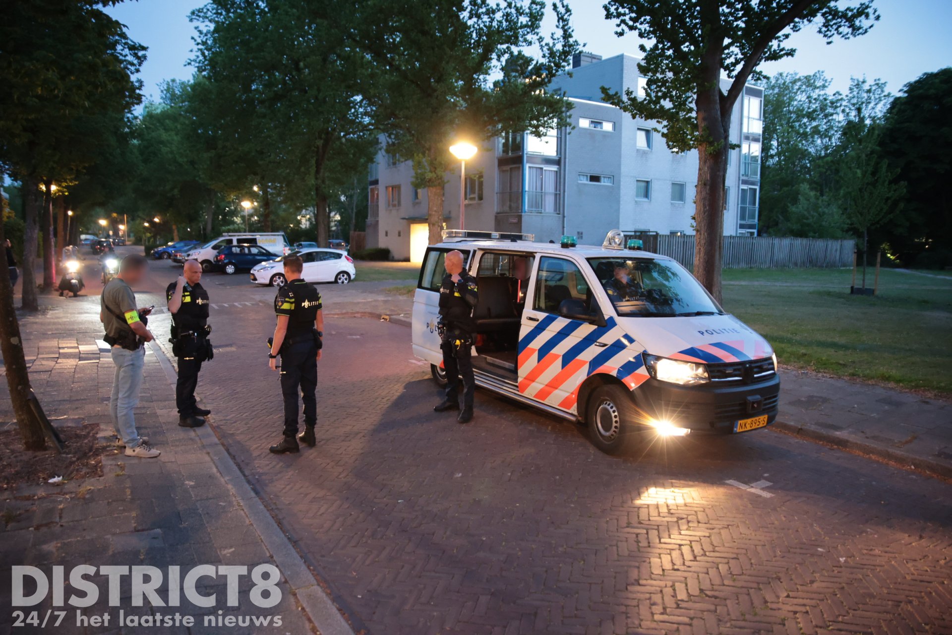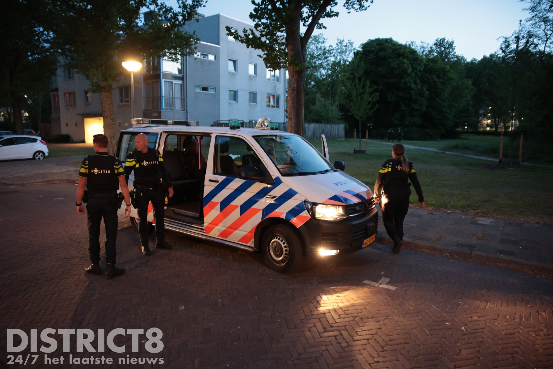 Op de Handellaan heeft de politie zeker één persoon aangehouden. Hierbij is door agenten een waarschuwingsschot gelost. Deze verdachte is overgebracht naar het politiebureau.