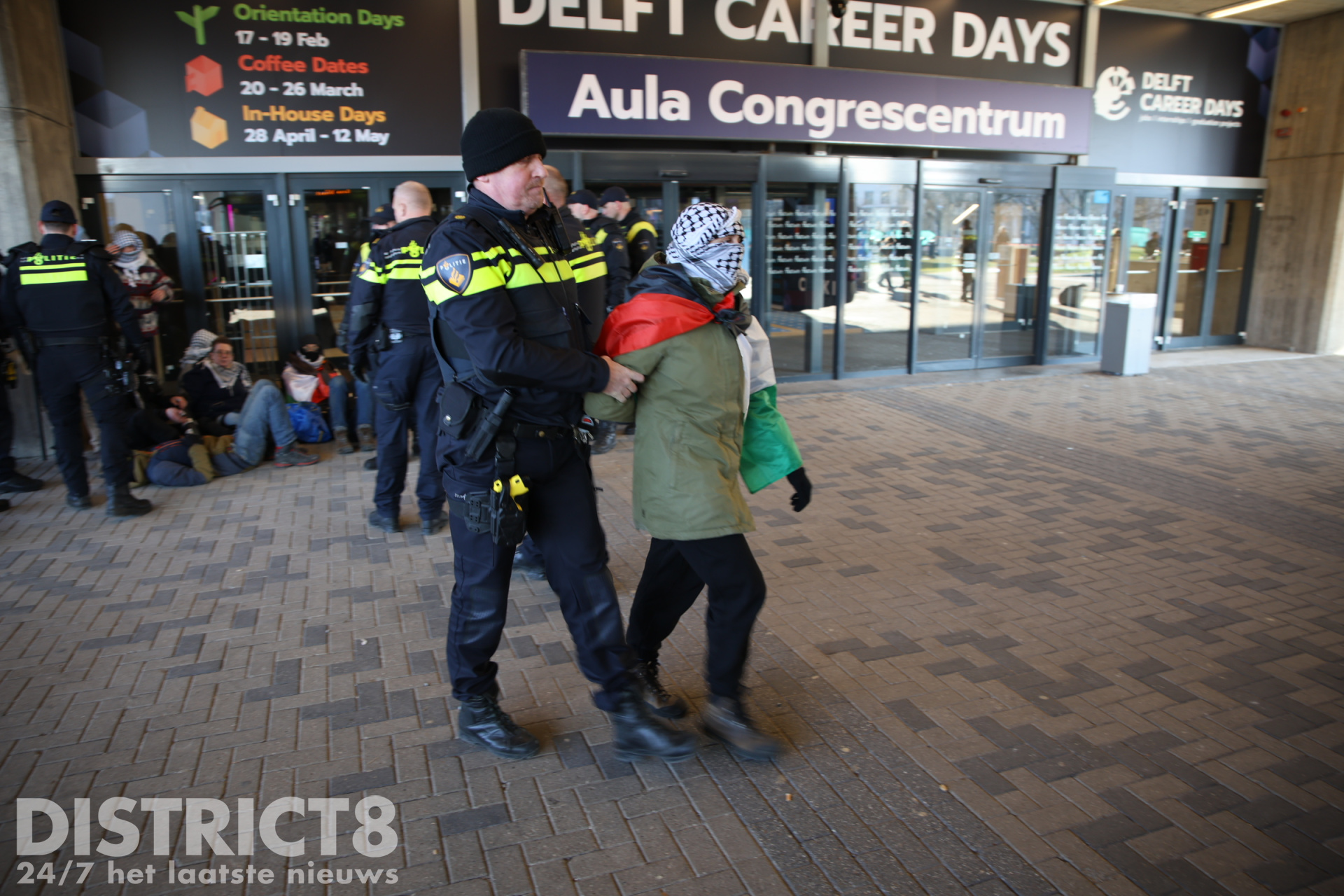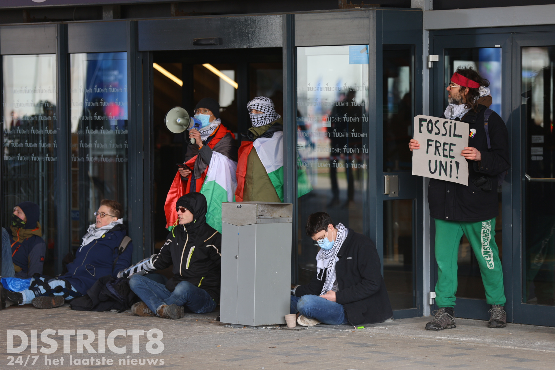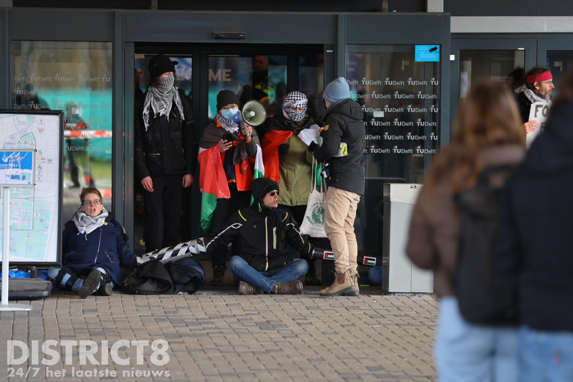 Delft – Meerdere studenten hebben zich dinsdagochtend 18 februari vastgeketend voor de ingang van het congrescentrum van de TU Delft aan de Mekelweg in Delft. Tijdens de demonstratie werden twee medewerkers van de onderwijsinstelling mishandeld.
