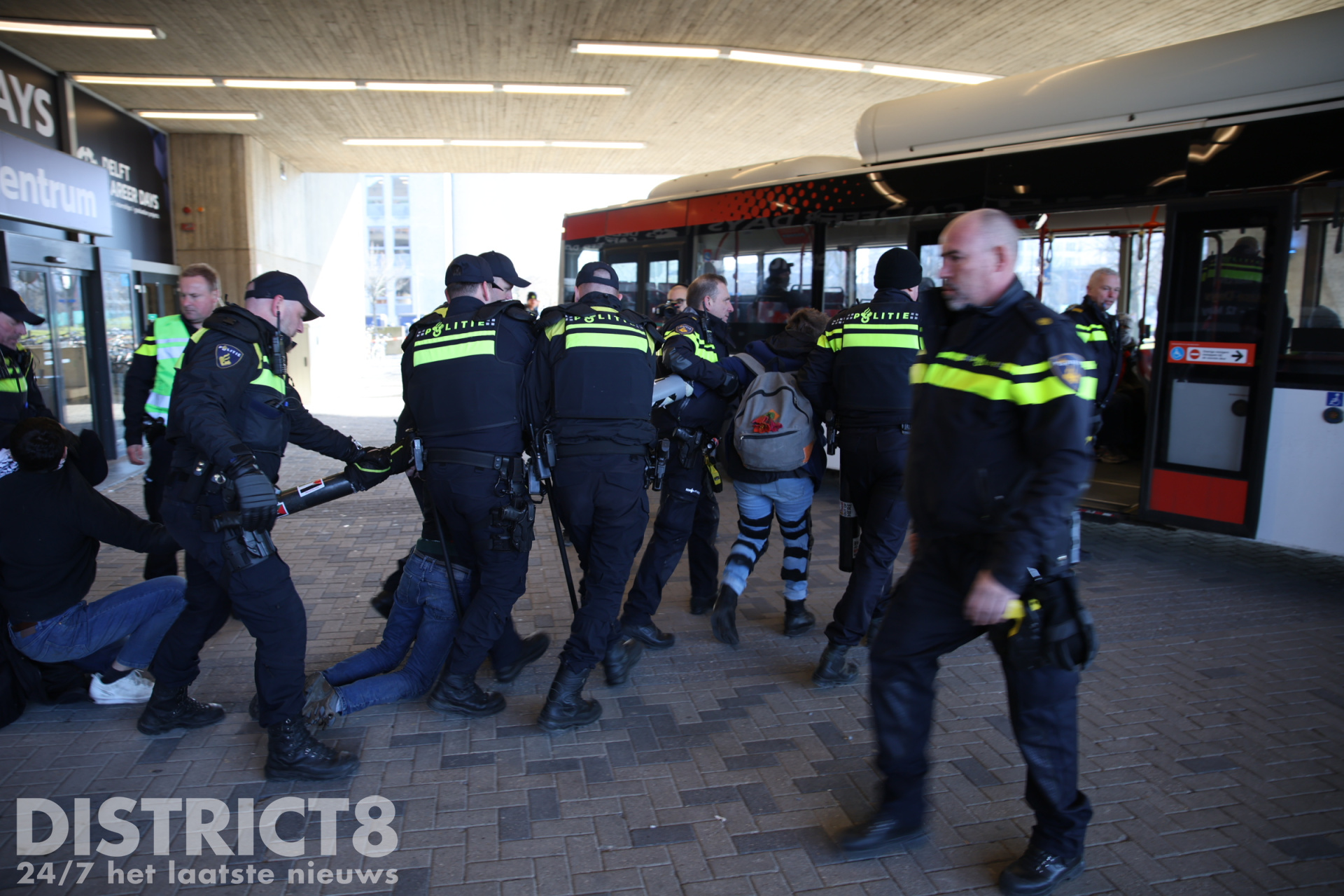 In totaal hield de politie elf personen aan voor lokaalvredebreuk. Eén van de verdachten wordt ook verdacht van het mishandelen van twee medewerkers van de onderwijsinstelling. Het is onbekend welke verwondingen zij hebben opgelopen. Alle aangehouden demonstranten zijn met een bus van de HTM overgebracht naar het politiebureau.