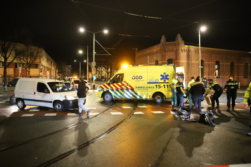Den Haag – Op de kruising van de Parallelweg met de Fruitweg in Den Haag zijn woensdag 23 december twee personen gewond geraakt bij een aanrijding. Op de kruising kwam een busje in botsing met een brommer.