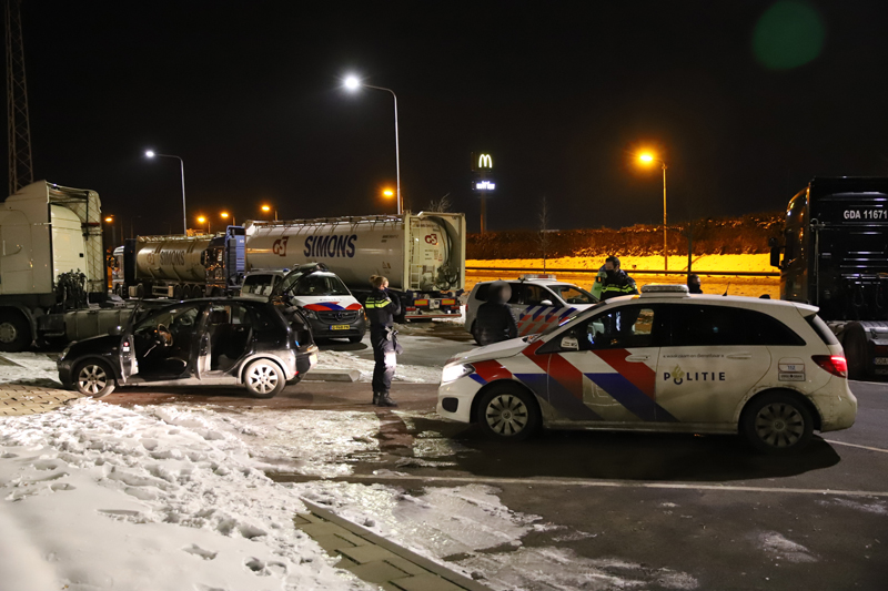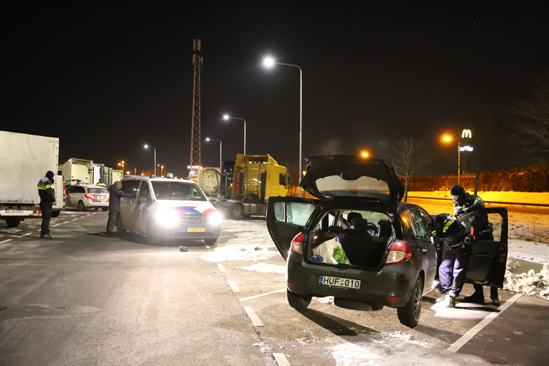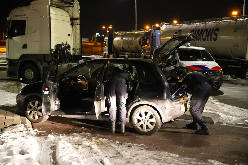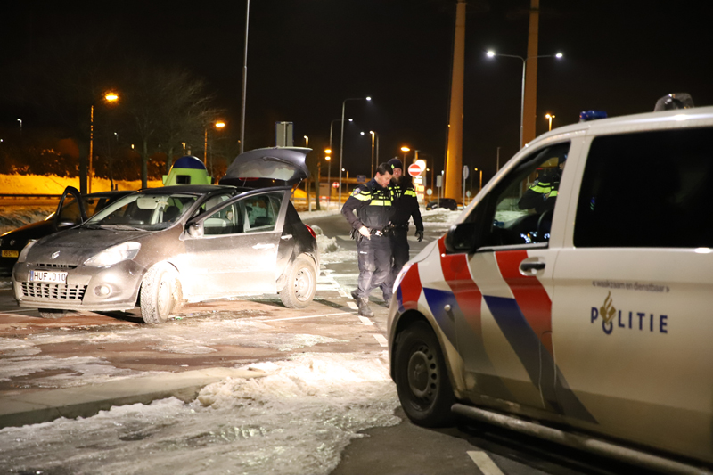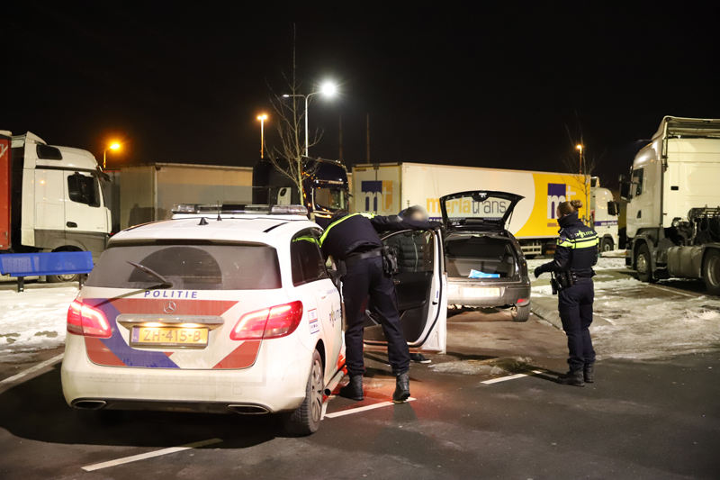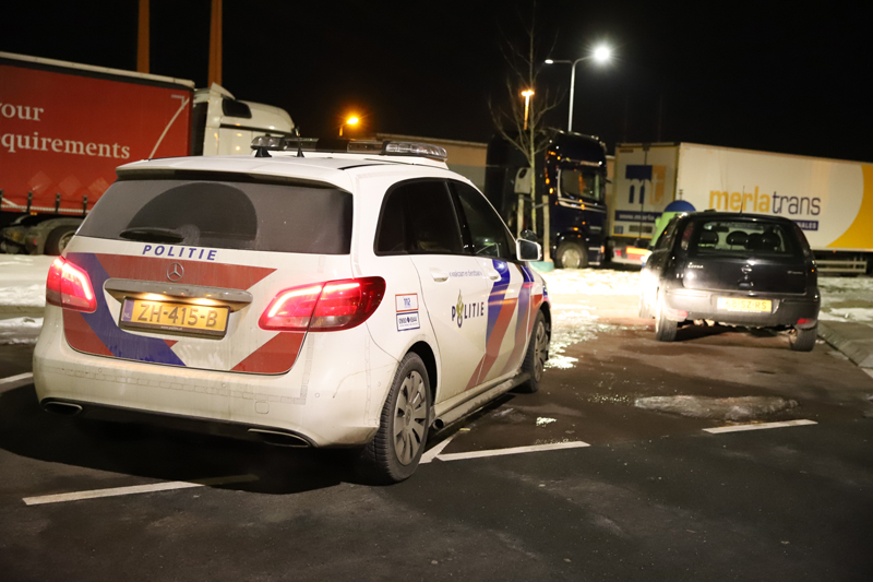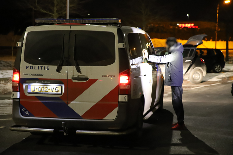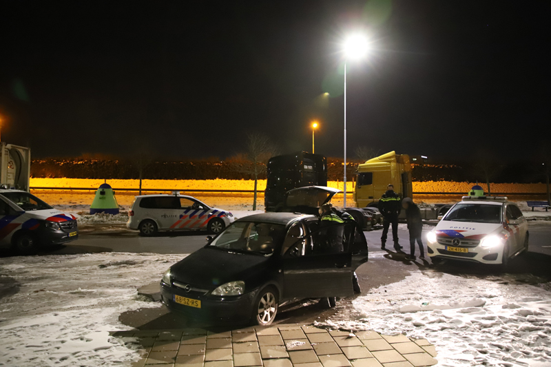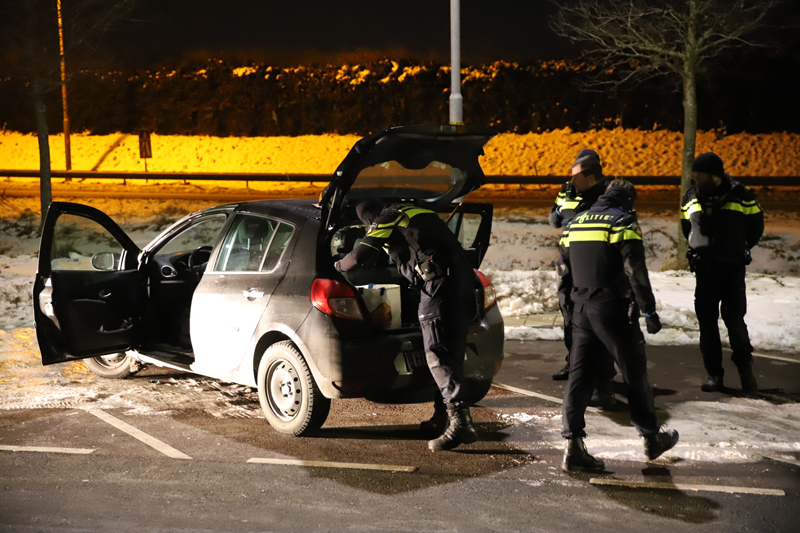 Op het parkeerterrein zette de politie beide voertuigen stil. De auto’s werden doorzocht. Daarbij werden spullen en beide auto’s in beslag genomen.