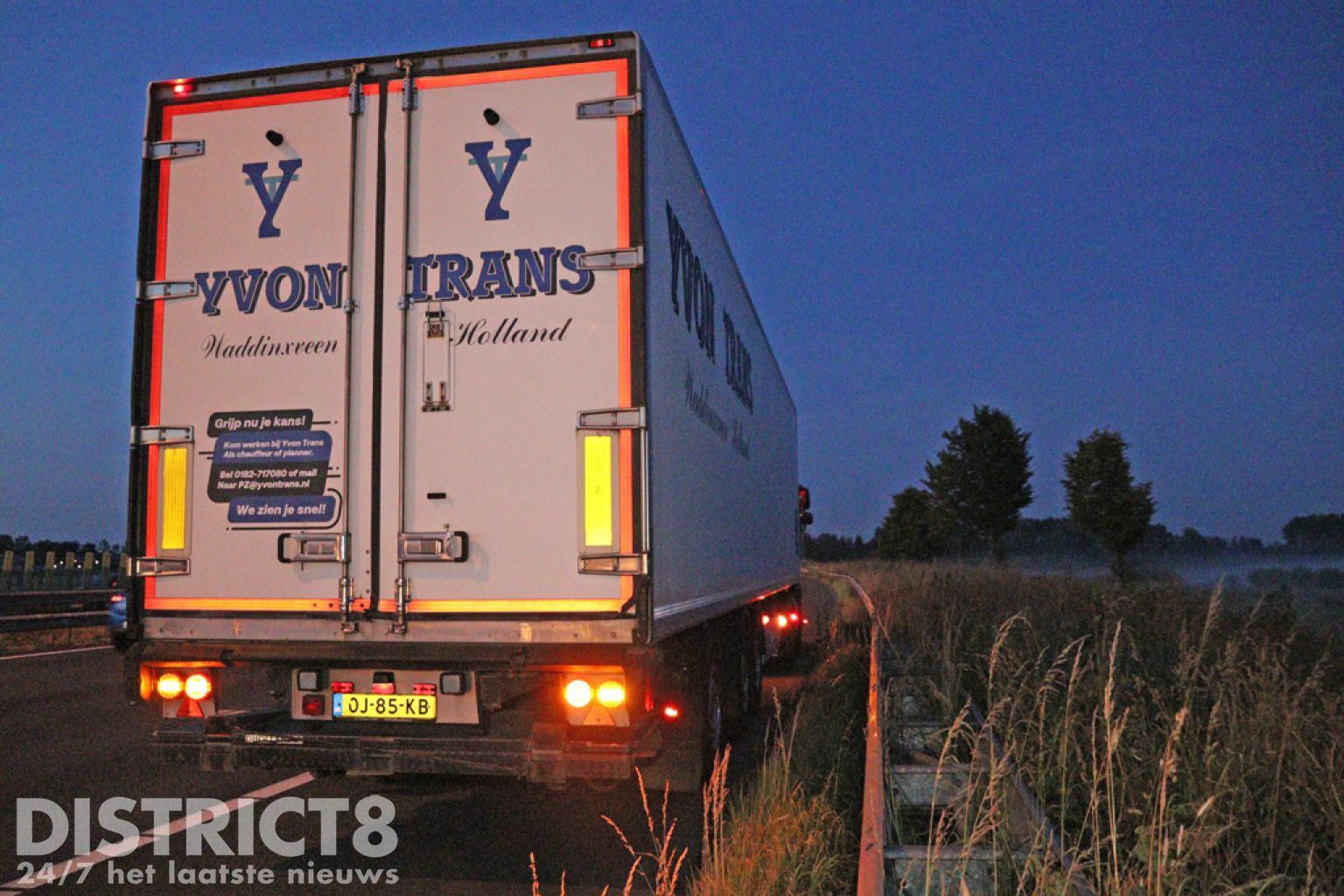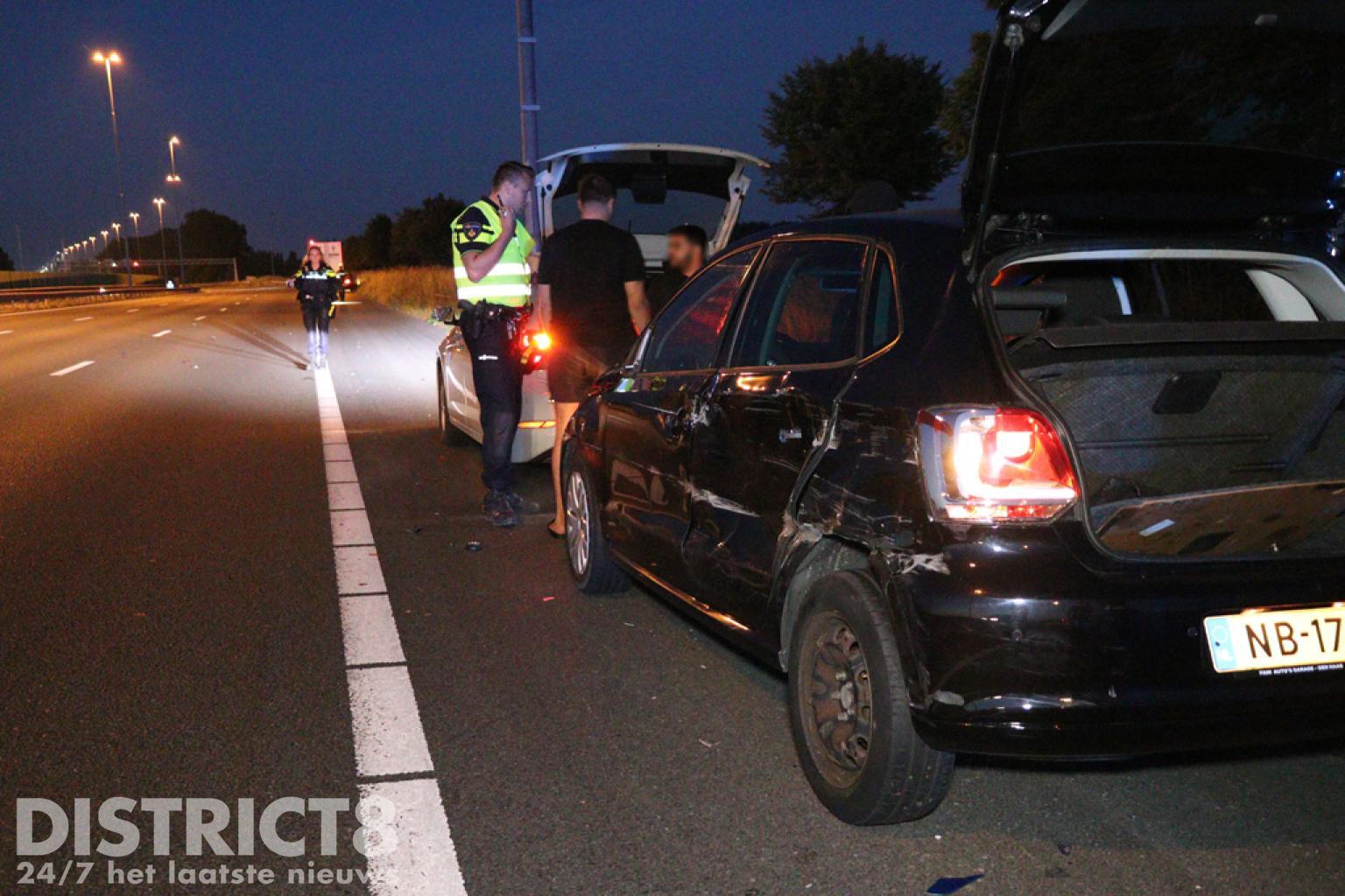 Een witte volkswagen stond met pech op de vluchtstrook, een vriend kwam ter plaatse om te helpen het gestrande voertuig weer op weg te krijgen. Een vrachtwagenchauffeur kreeg een black-out en heeft de ‘hulpwagen’ flink beschadigd. Ook de pech auto liep schade op.
