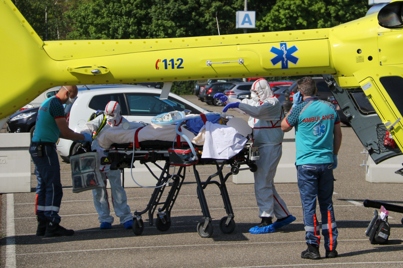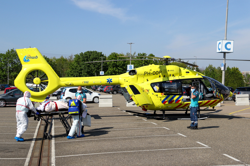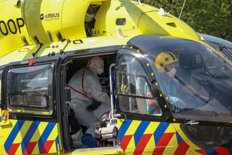 De lifeliner 6 lande naast de lifeliner 5 waarna de teams de patiënten op gingen halen in het ziekenhuis. De Corona patiënten werden overgevlogen naar Leeuwarden en Groningen.