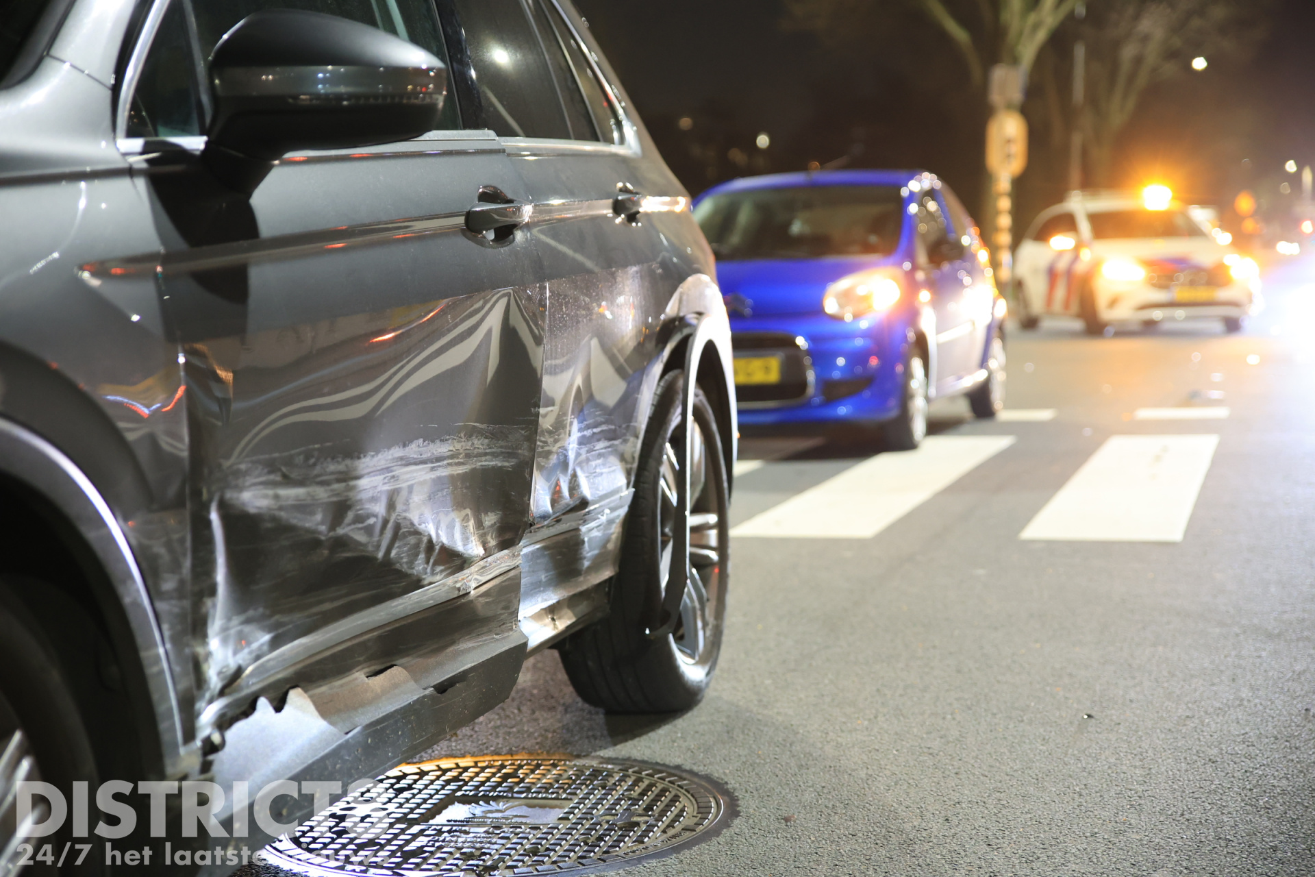 Den Haag – Zaterdagavond 21 maart heeft op de kruising van de Erasmusweg met de Medlerstraat in Den Haag een ongeval plaatsgevonden tussen twee personenauto’s. Na de aanrijding kwam een van de voertuigen op de stoep van de Medlerstraat tot stilstand.