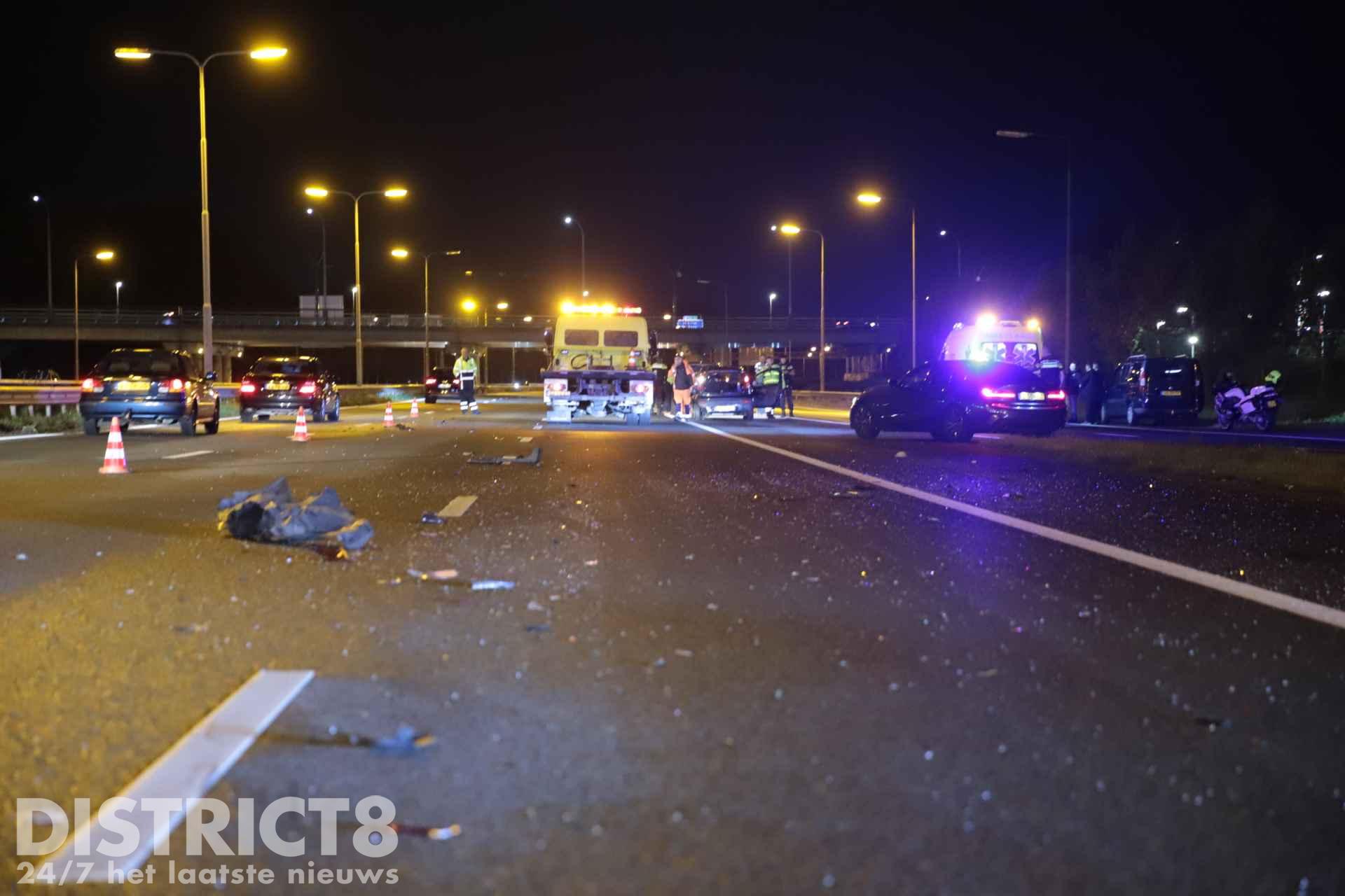 Den Haag – Op de A13 bij Den Haag ter hoogte van afrit Delft Noord heeft zaterdagavond 15 oktober een flinke aanrijding plaatsgevonden.