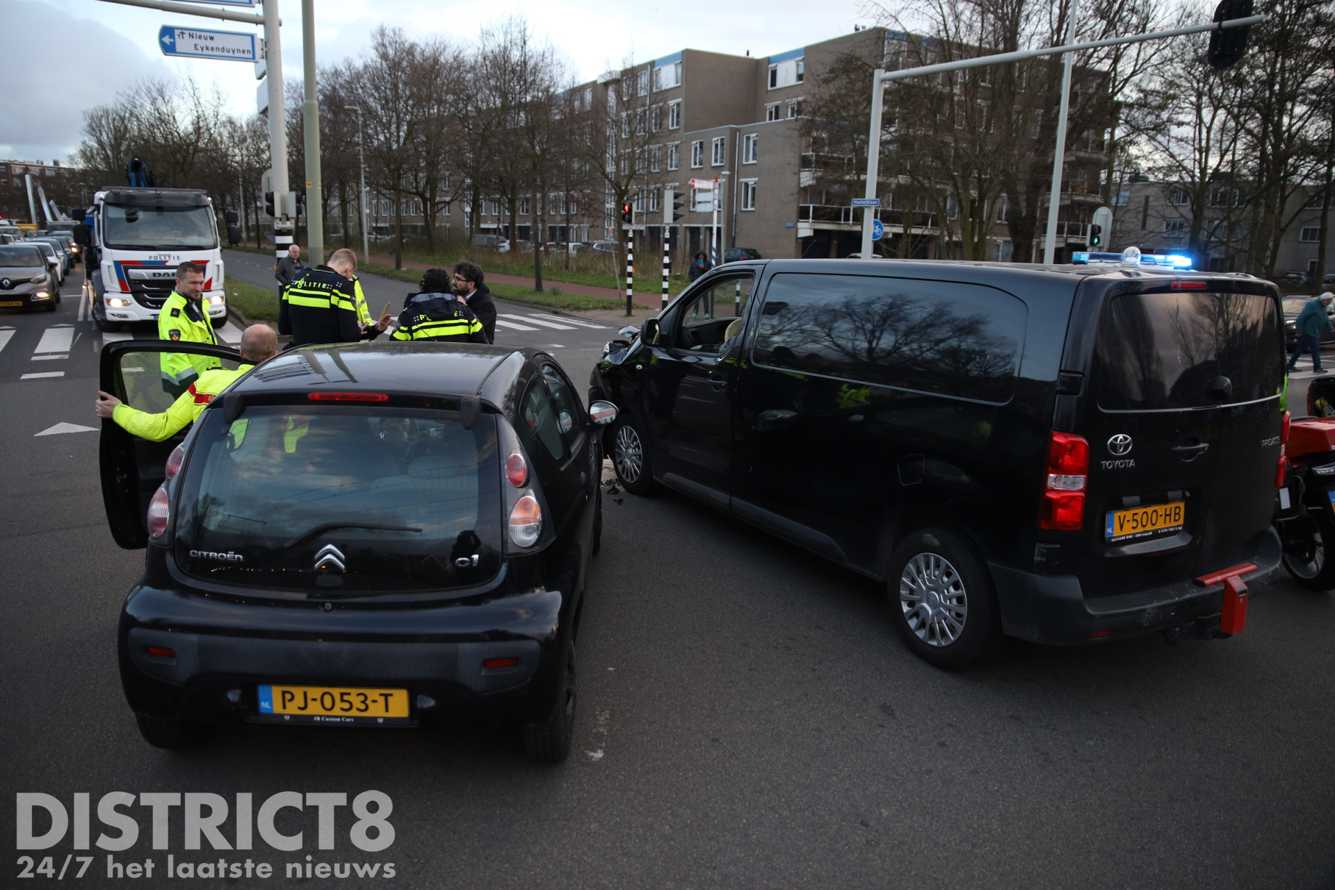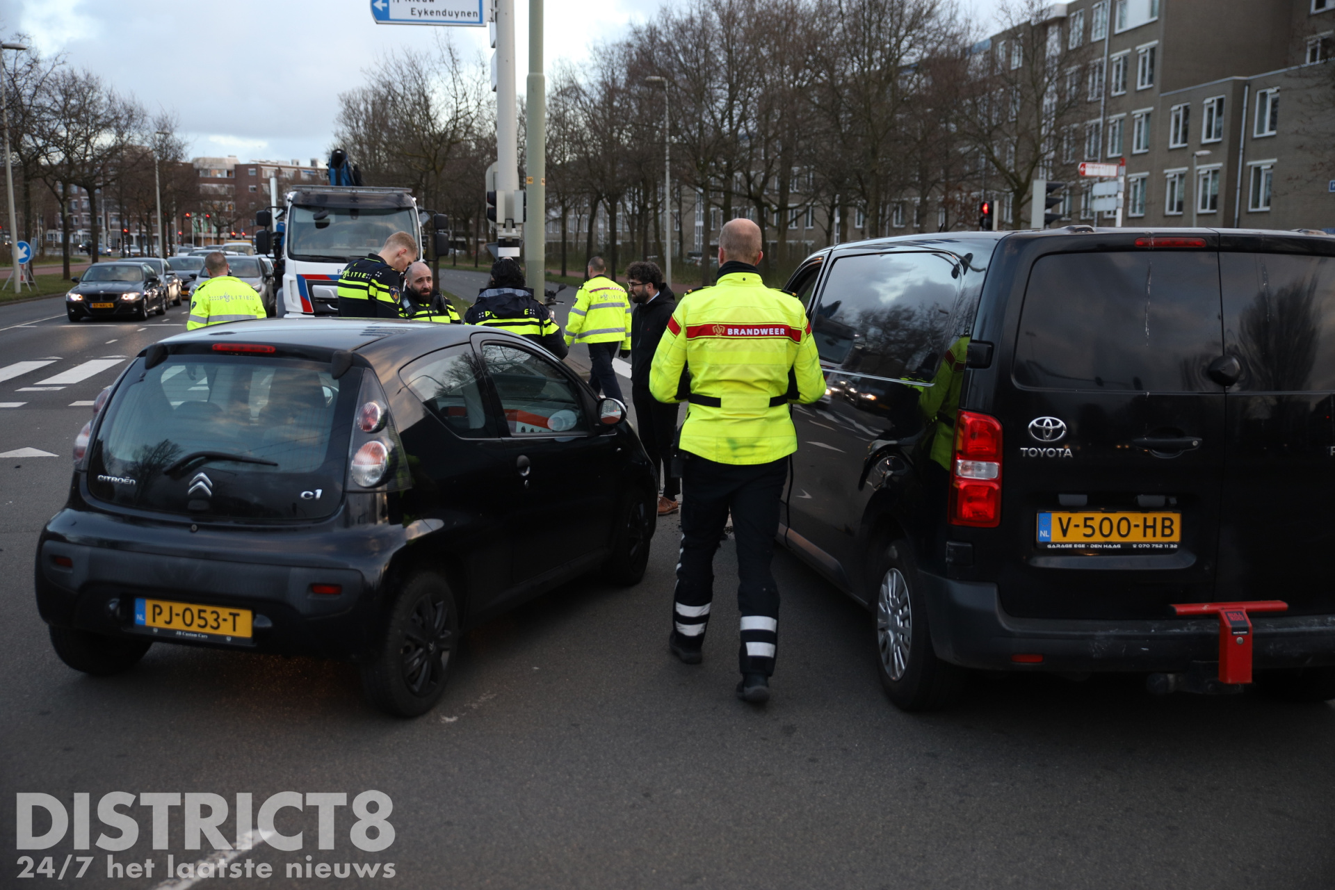 Den Haag – Op het kruispunt van de Groen van Prinstererlaan met de Houtwijklaan heeft dinsdagmiddag 11 maart een ongeval plaatsgevonden tussen twee voertuigen.