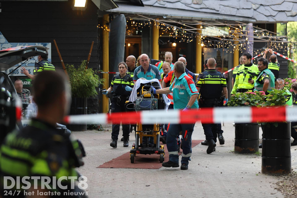 Op het terras lag een gewonde man en een gewonde vrouw. Beiden hadden ernstige steekwonden. Meerdere hulpdiensten waaronder een traumahelikopter kwamen ter plaatse.